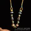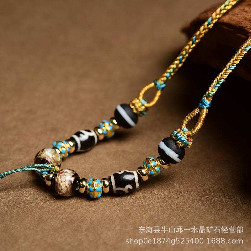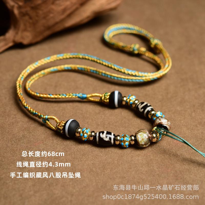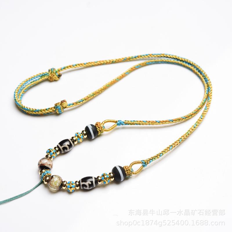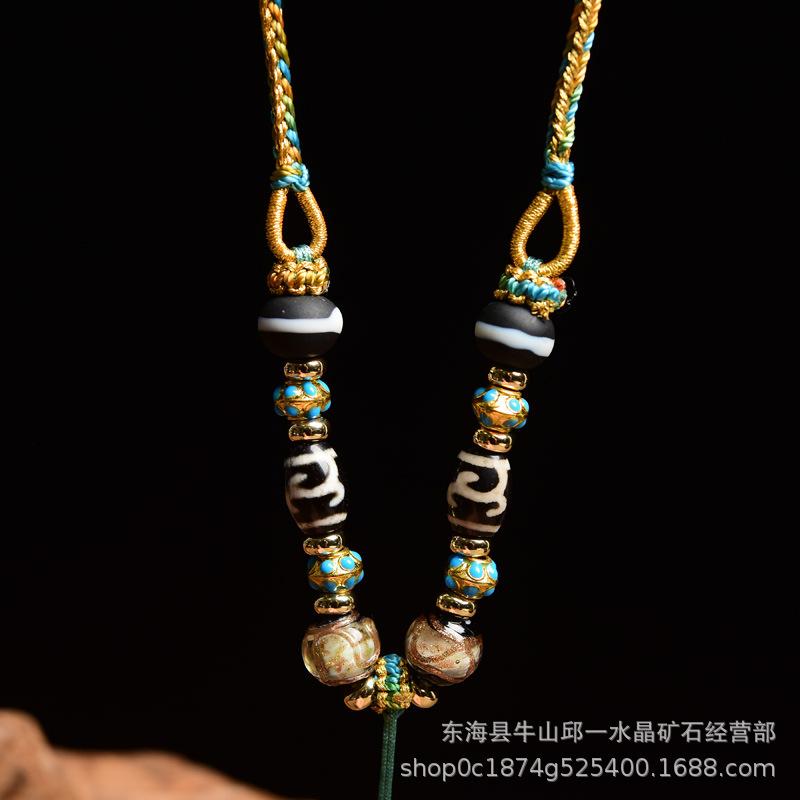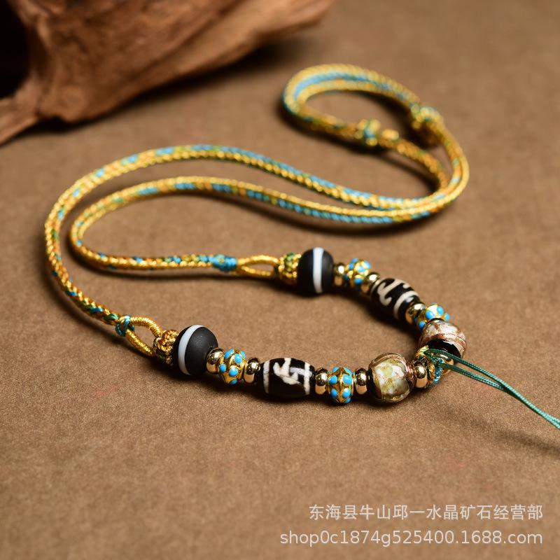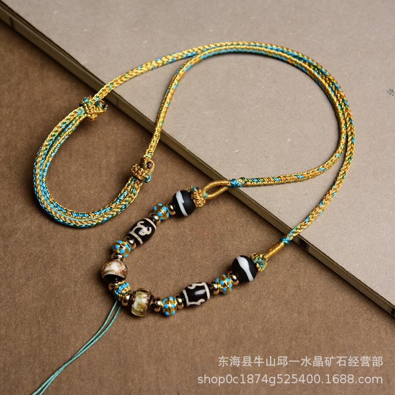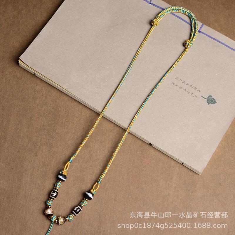 Cuerda de collar tejida a mano estilo Xizang que cuerda colgante femenina Thangka Tianzhu Zakilam cadena de suéter de cuentas vidriadas color gris incienso