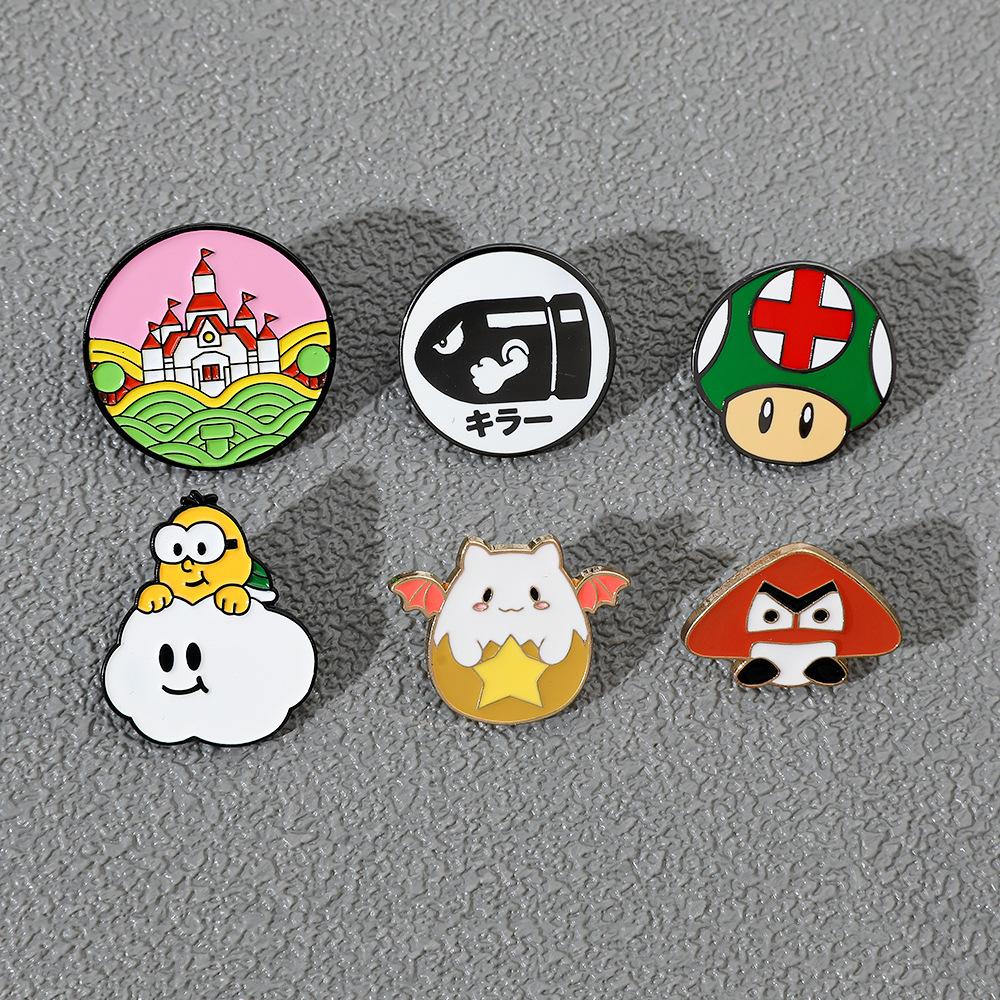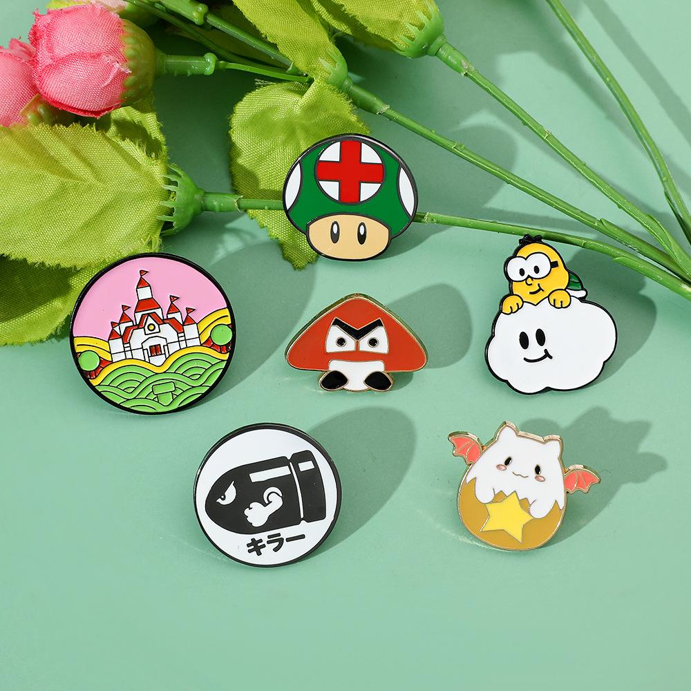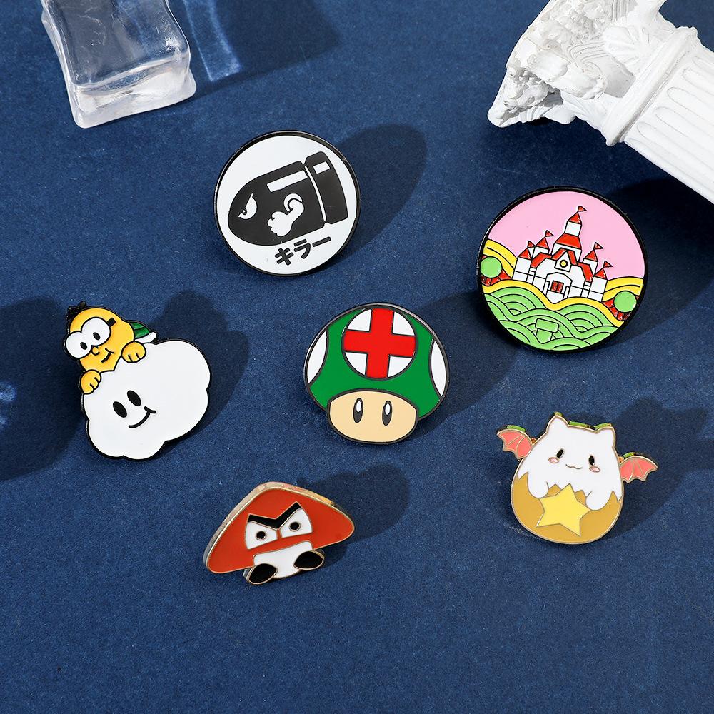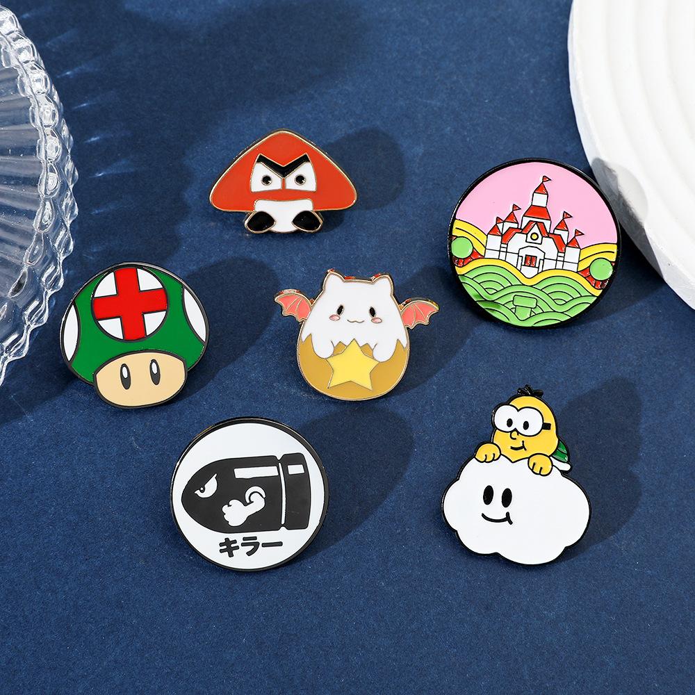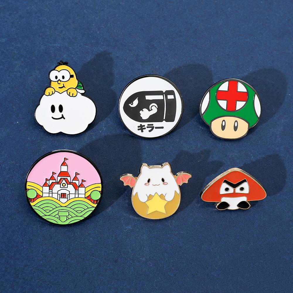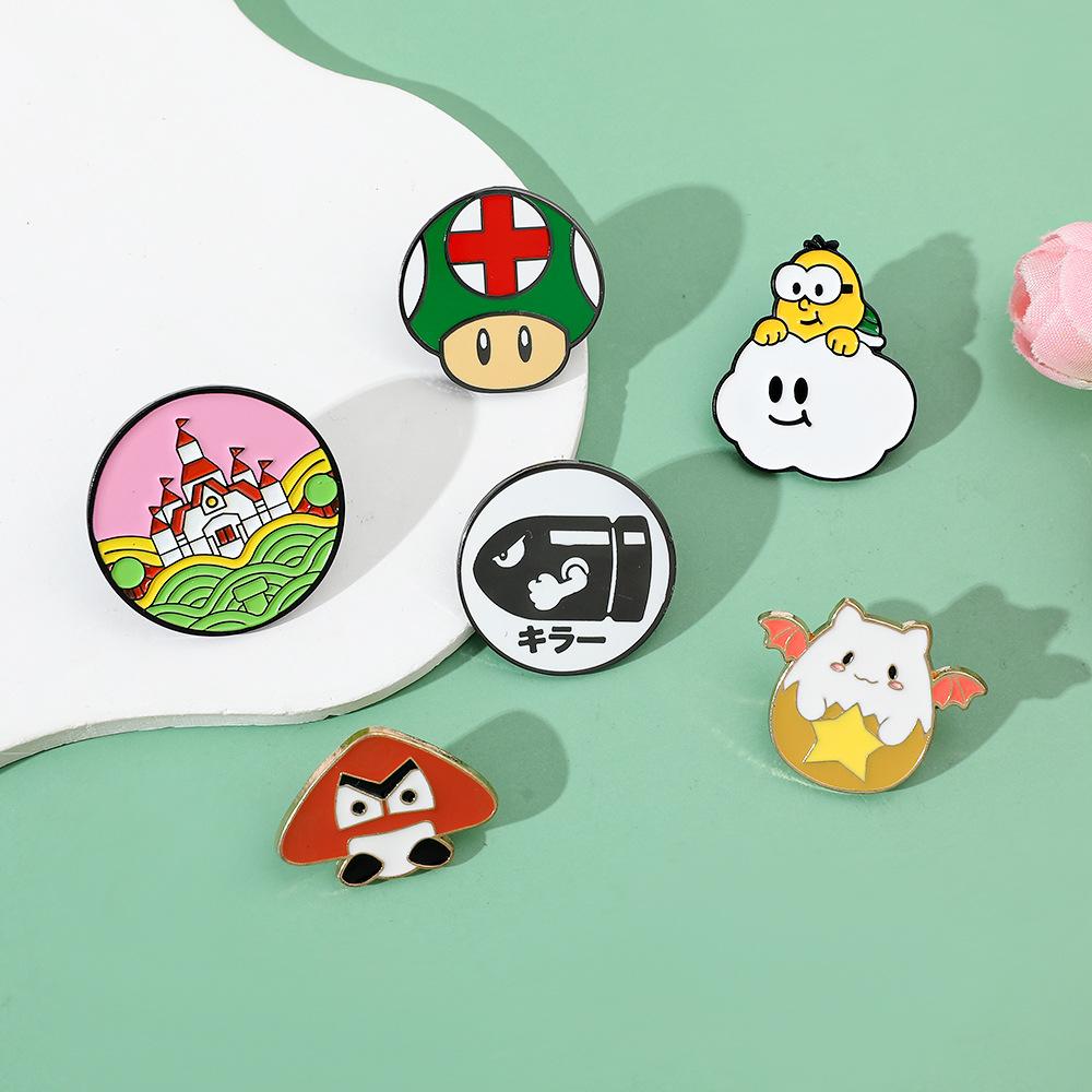 Broche de aleación con forma de hongo periférico de personaje de juego de dibujos animados japonés Super Mario Super Mary Rocket Pin