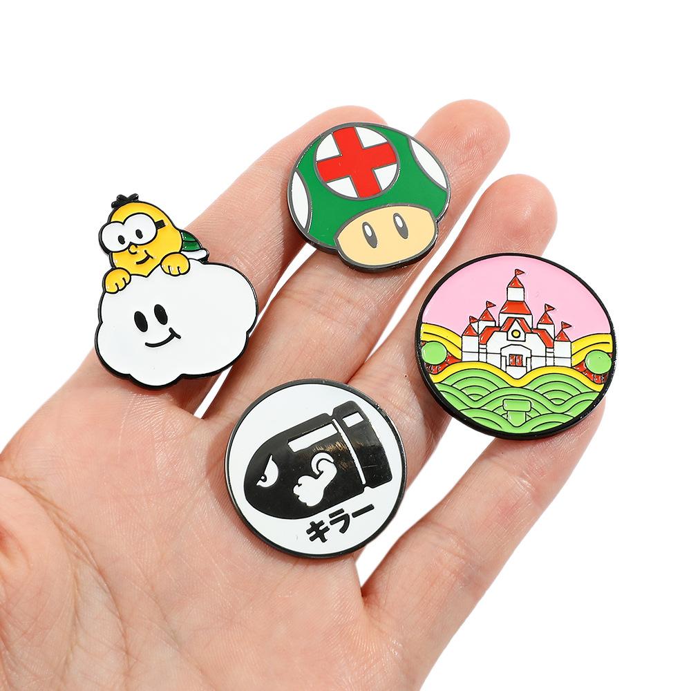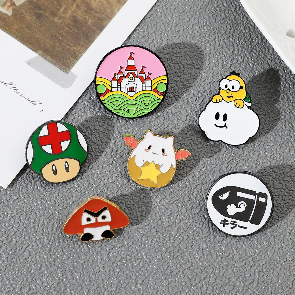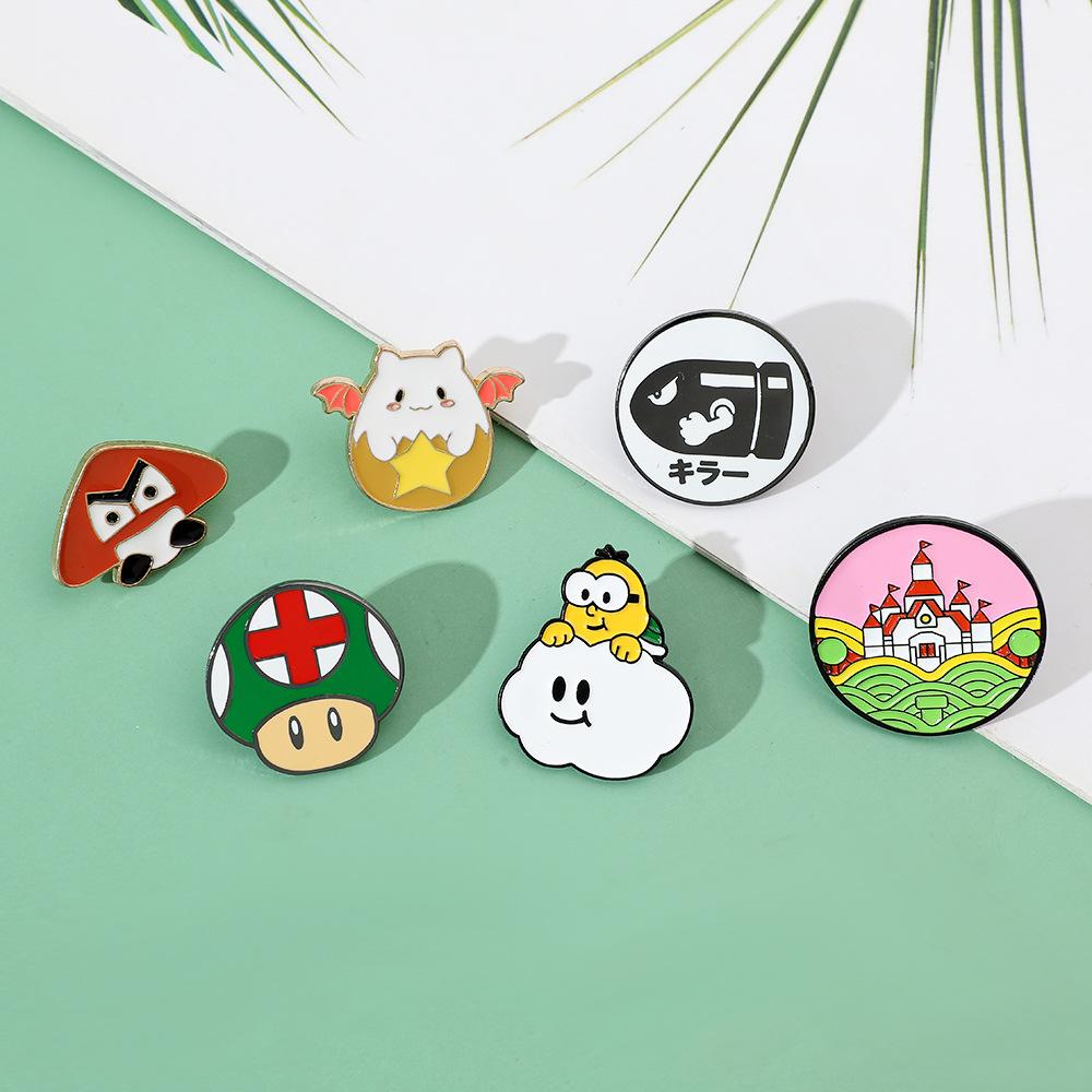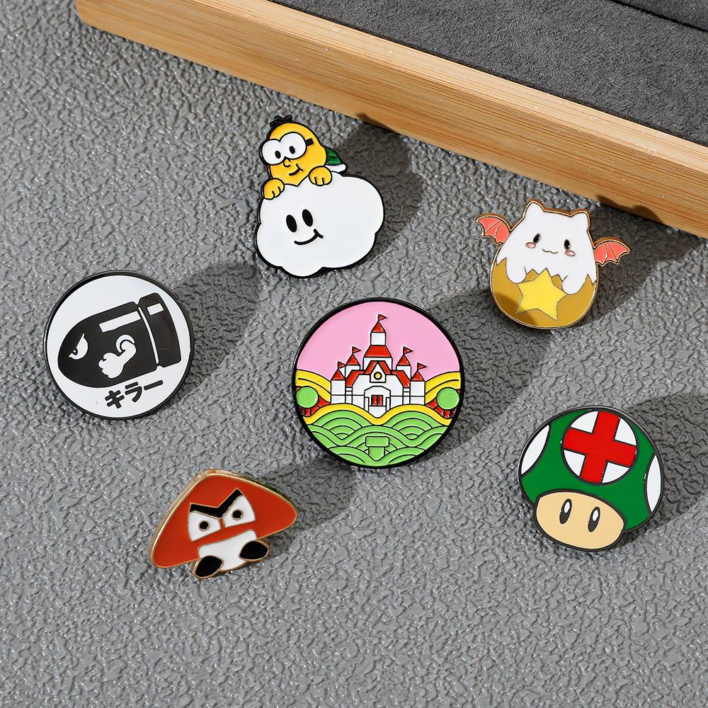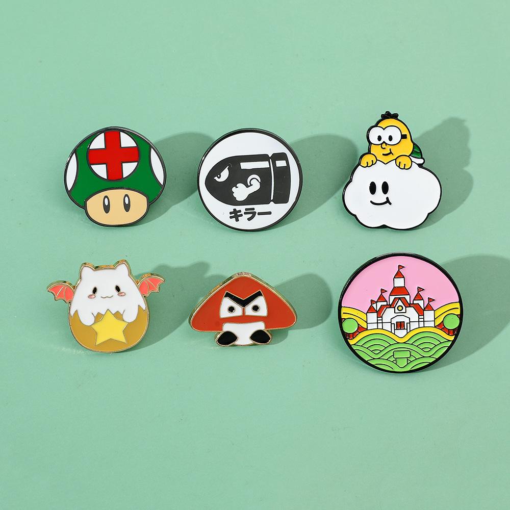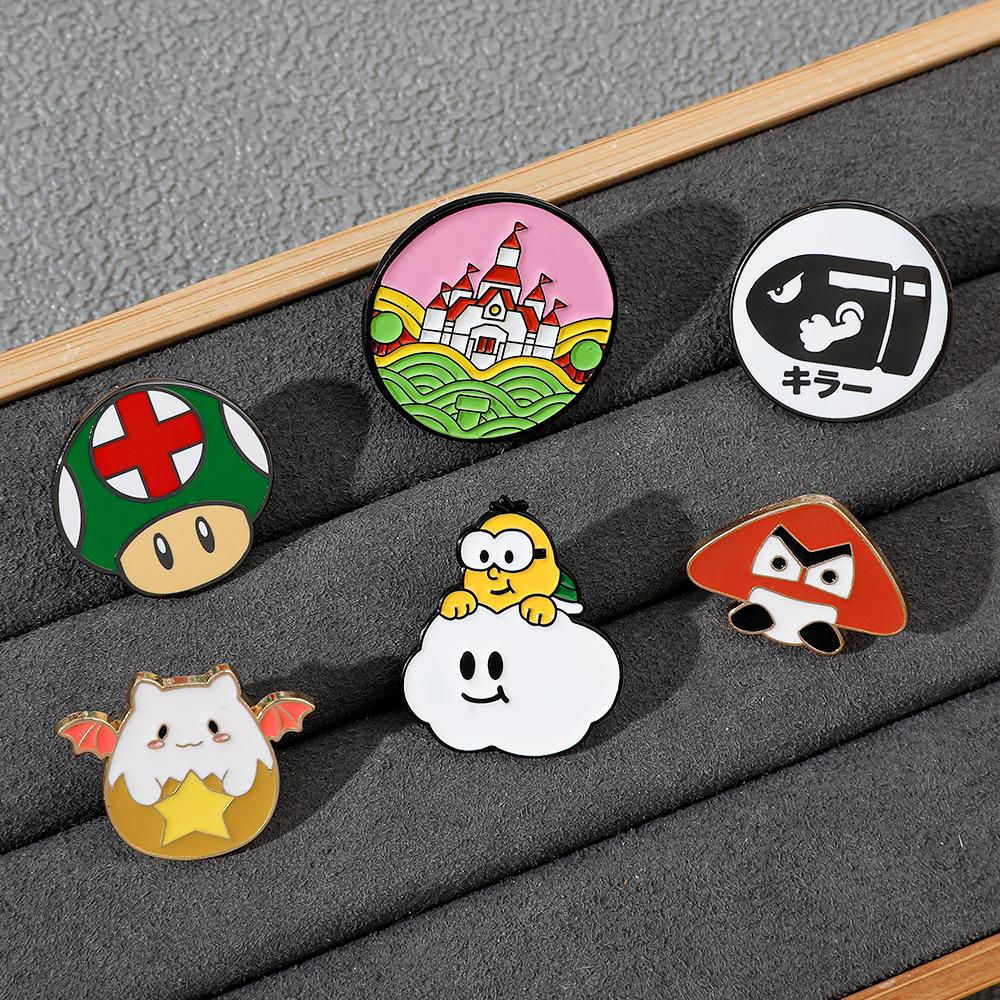 Broche de aleación con forma de hongo periférico de personaje de juego de dibujos animados japonés Super Mario Super Mary Rocket Pin