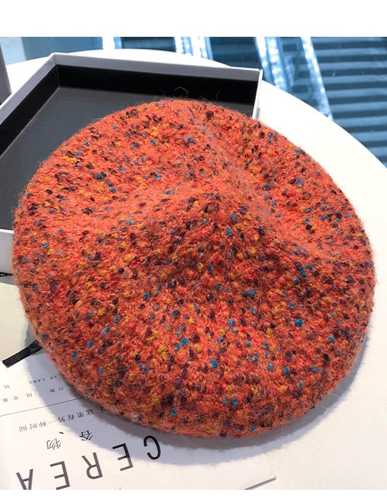 Boina de punto de colores de felpa de estilo coreano para mujer, boina de pintor retro versátil japonesa con forma de calabaza.