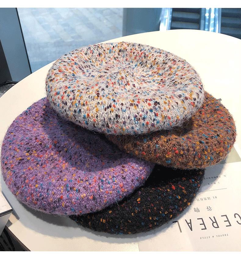 Nuevo gorro de lana para mujer otoño e invierno 2020 estilo coreano combinable boina de lunares coloridos sombrero de pintor retro japonés