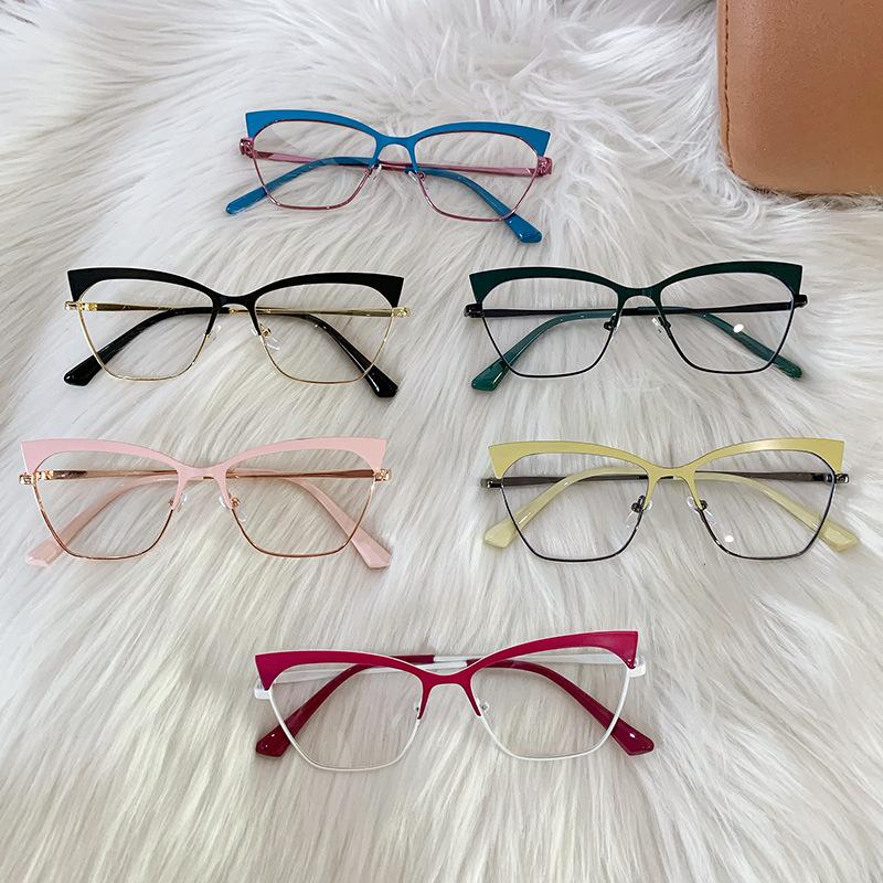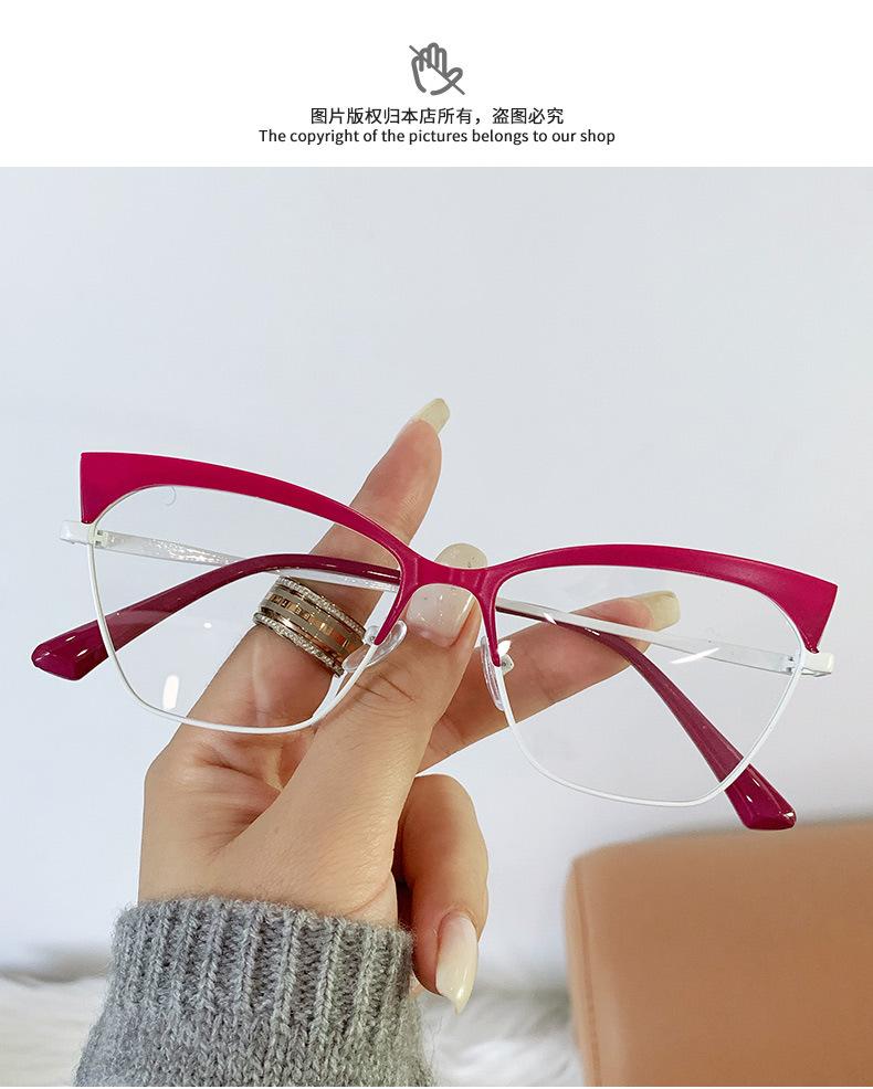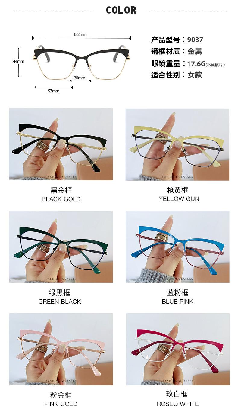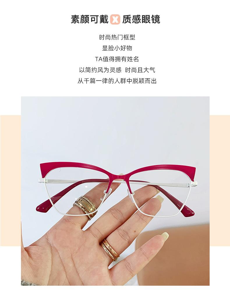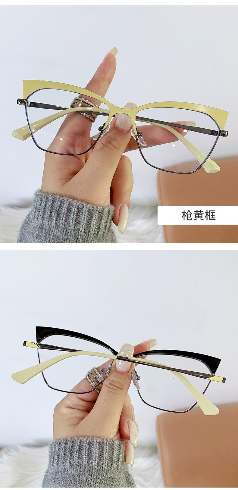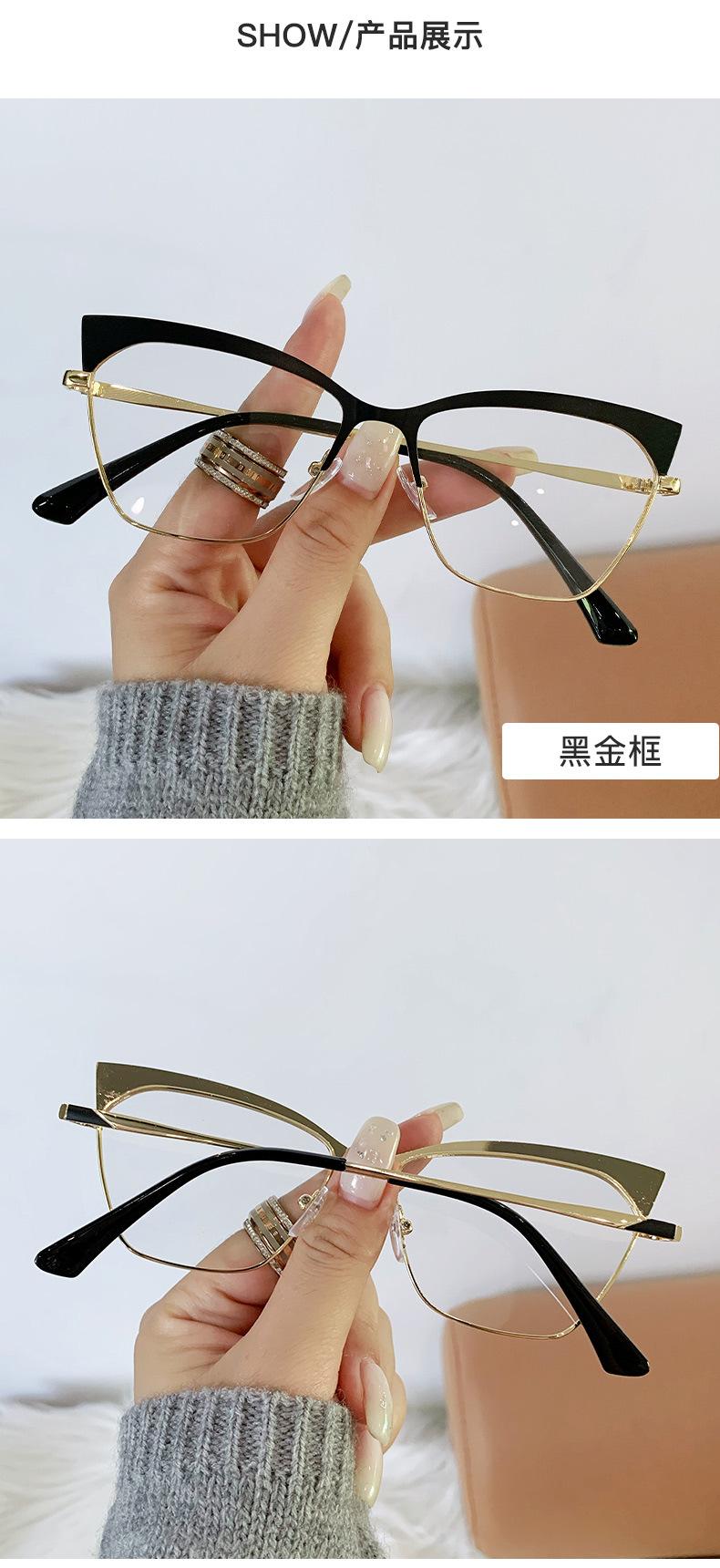 Armazón de gafas ojo de gato estilo europeo y americano moderno metal ceja gafas planas comercio exterior moda网红 transfronterizo gafas anti-luz azul