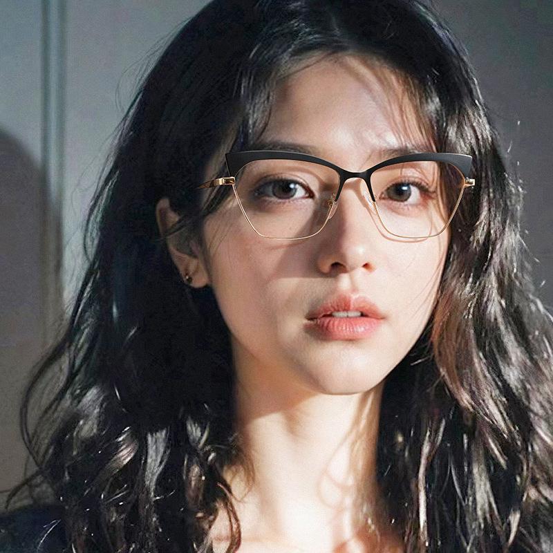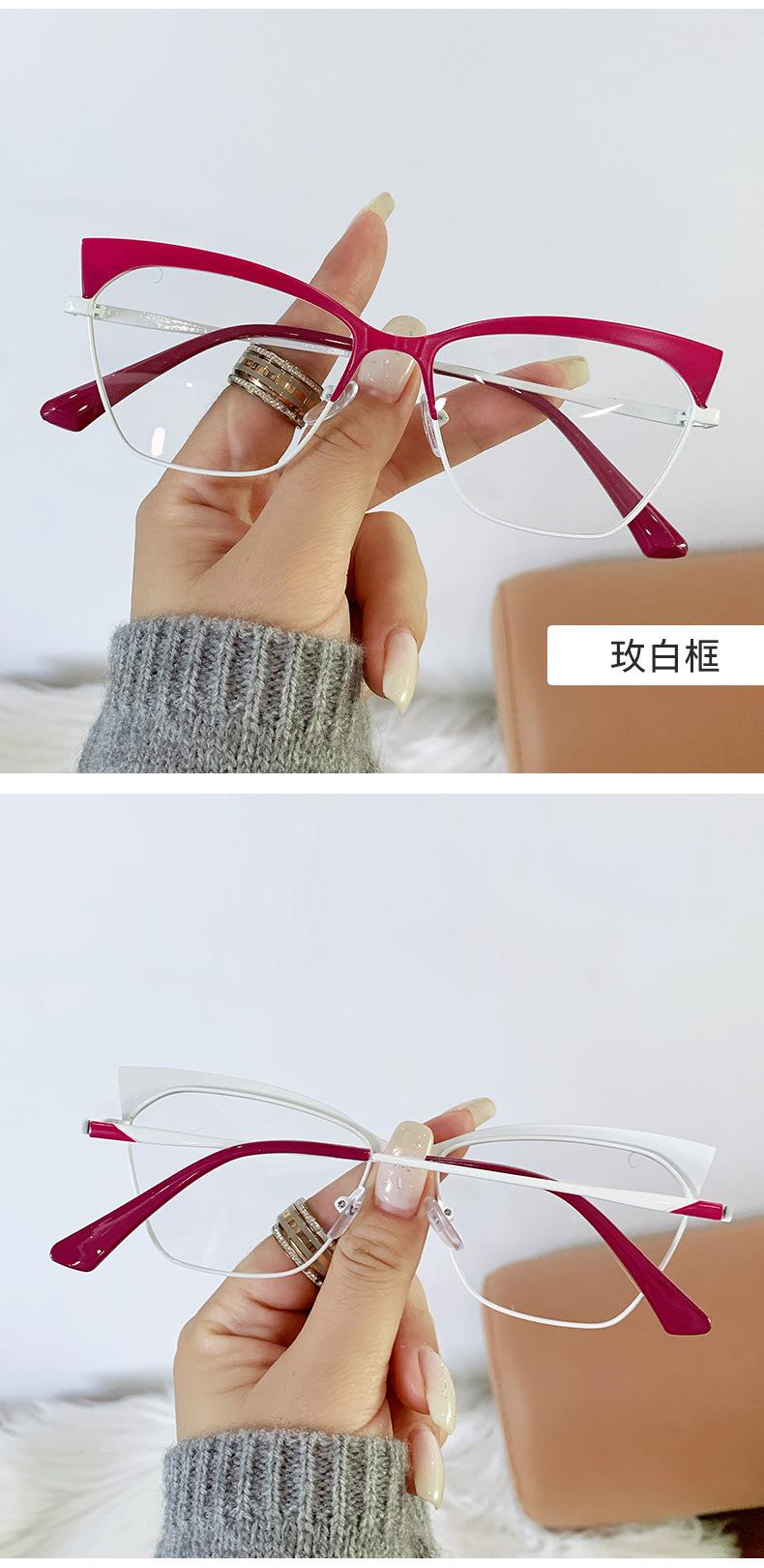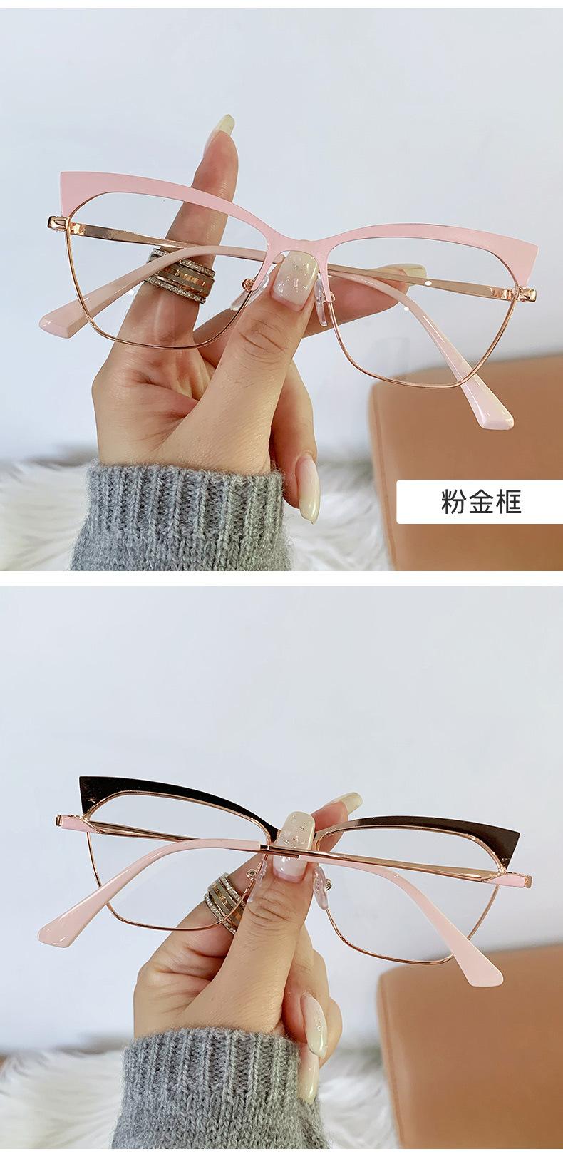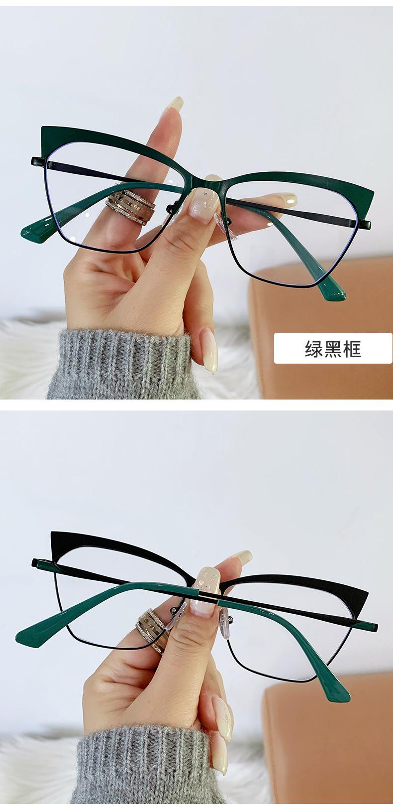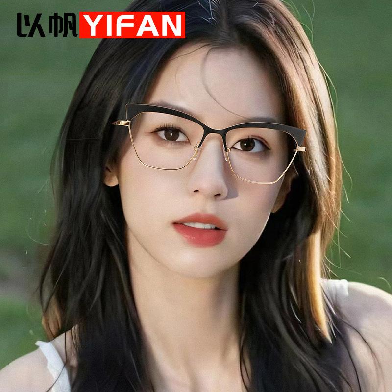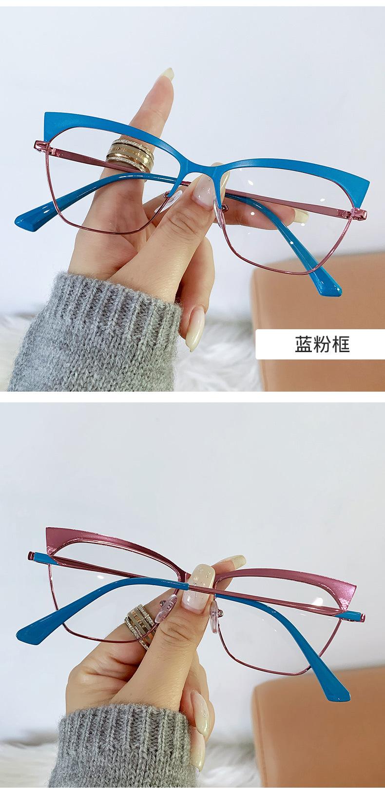 Armazón de gafas ojo de gato estilo europeo y americano moderno metal ceja gafas planas comercio exterior moda网红 transfronterizo gafas anti-luz azul
