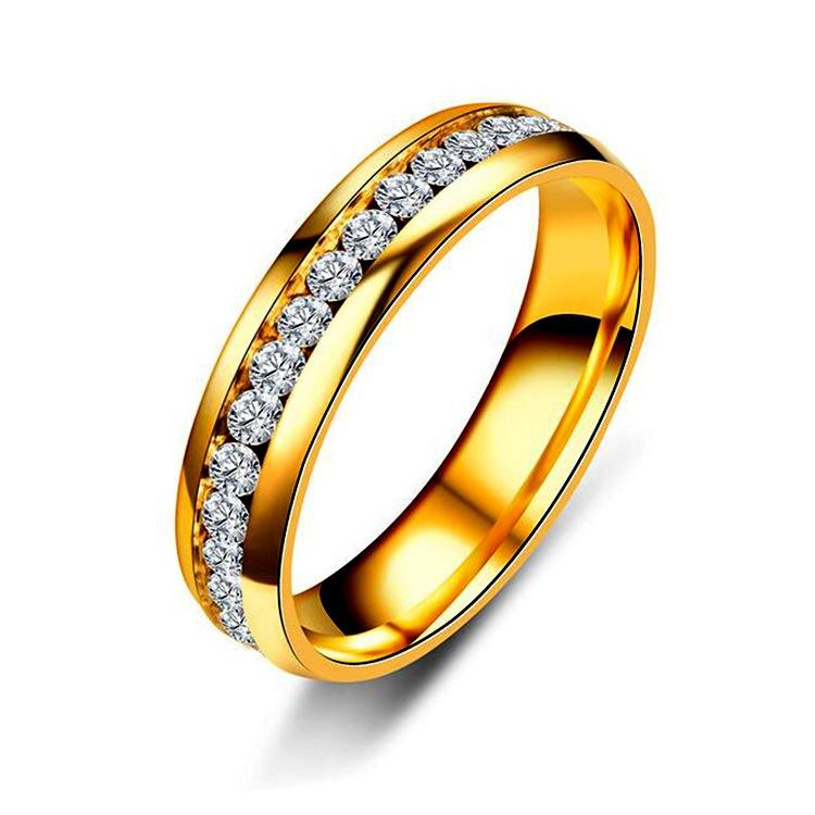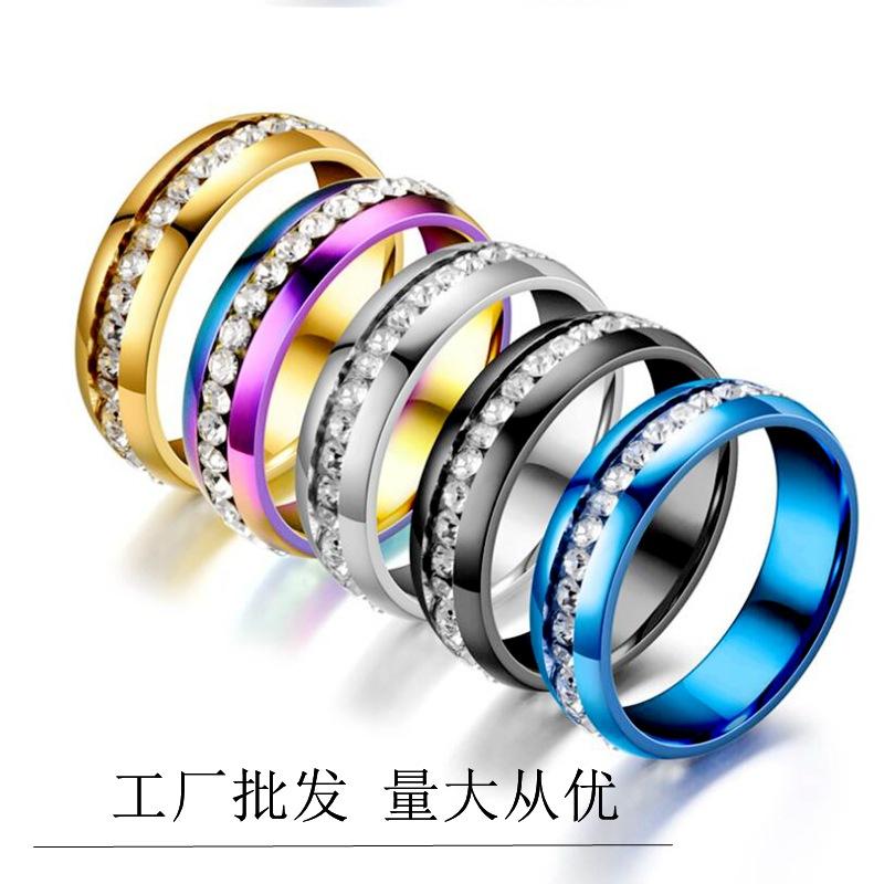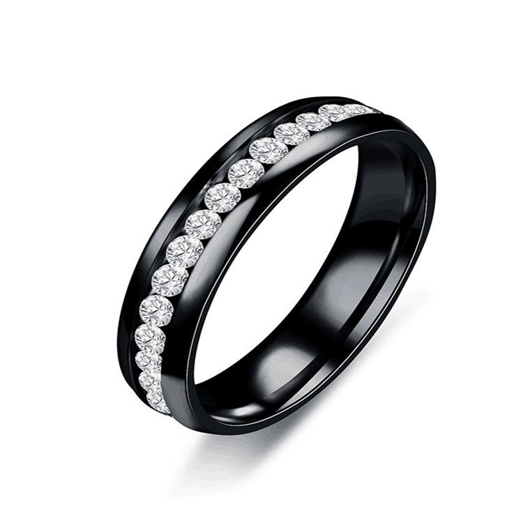 Anillo Europeo y Americano Popular Transfronterizo de una Sola Fila de Diamantes de Acero de Titanio para Mujer, Moderno, Simple y Popular Anillo de Diamantes para Pareja, Joyería de Mano