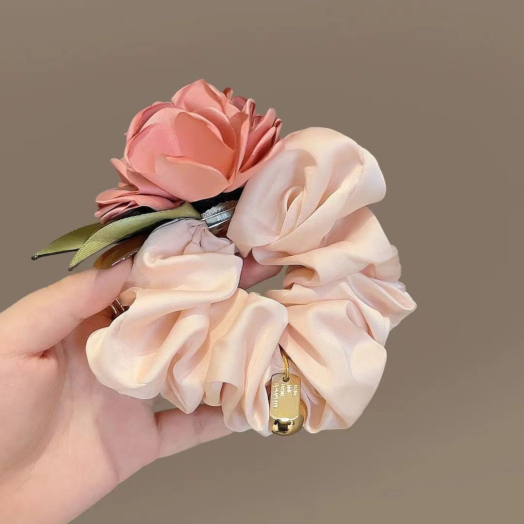 Nuevo estilo Mori Girl Style Camellia Hair Ring High End Sense Niche Cuerda para el cabello de intestino grueso Elegante tocado Accesorios para el cabello Tendones de goma para mujeres