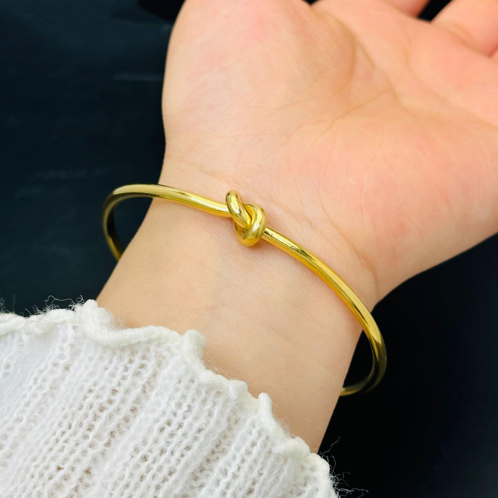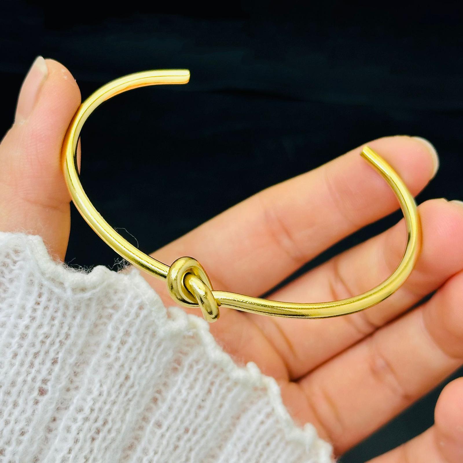 Pulsera de acero de titanio ajustable con apertura de nudo de corazón, moda personalidad no se desvanece, pulsera simple para mujer, joyería para hombre, Europa y Estados Unidos