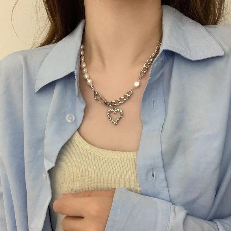 Collar de Amor de Perlas Nicho de Lujo Ligero 2022 Nuevo para Mujer ins Hip-hop Spice Girls Cadena de Clavícula de Alta Gama Accesorios