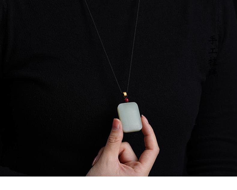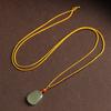 Colgante azul Qiemo de jade hetiano natural con accesorios de cinabrio. Collar No Matter. Cadena de lana para mujer. Accesorios.