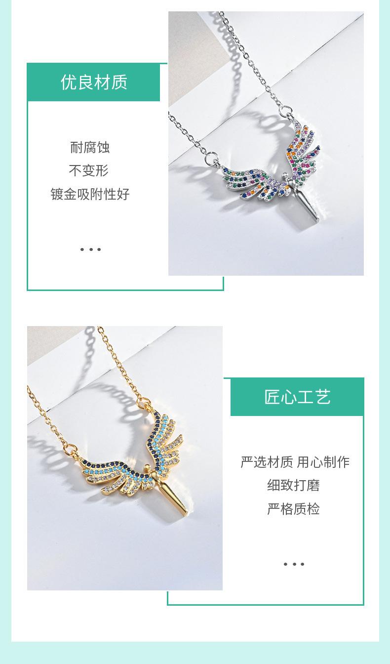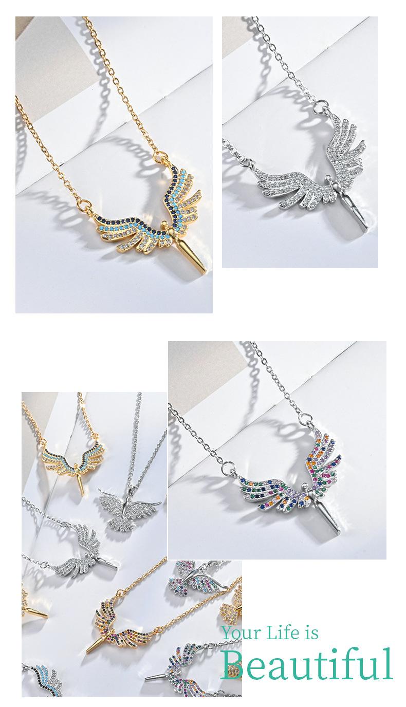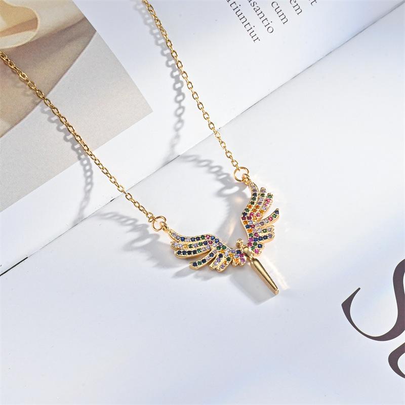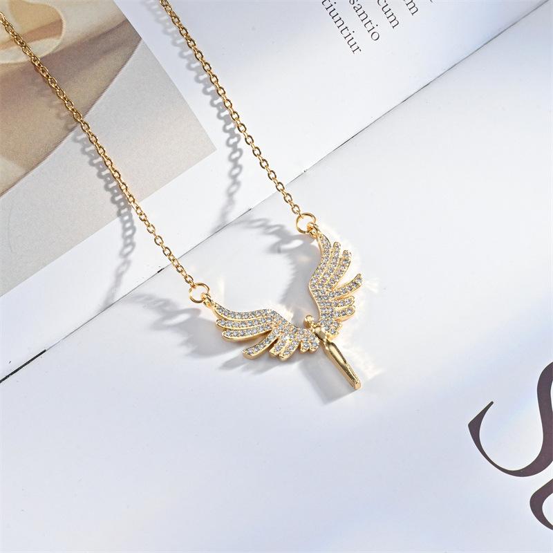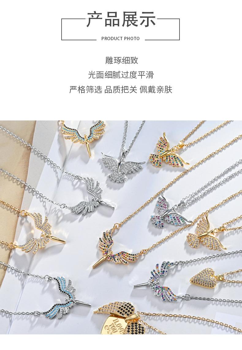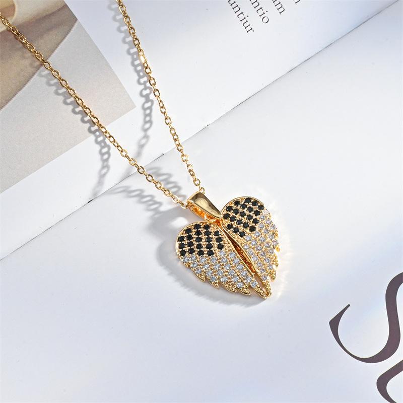 Moda Transfronteriza Nuevo Collar Alas de Ángel Corazón de Ángel Colgante de Cobre Chapado Micro Incrustado Luz Lujo Nicho Collar
