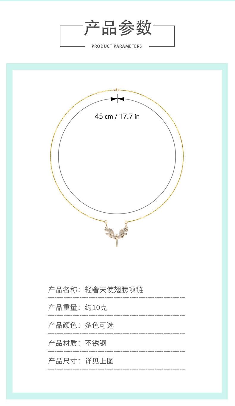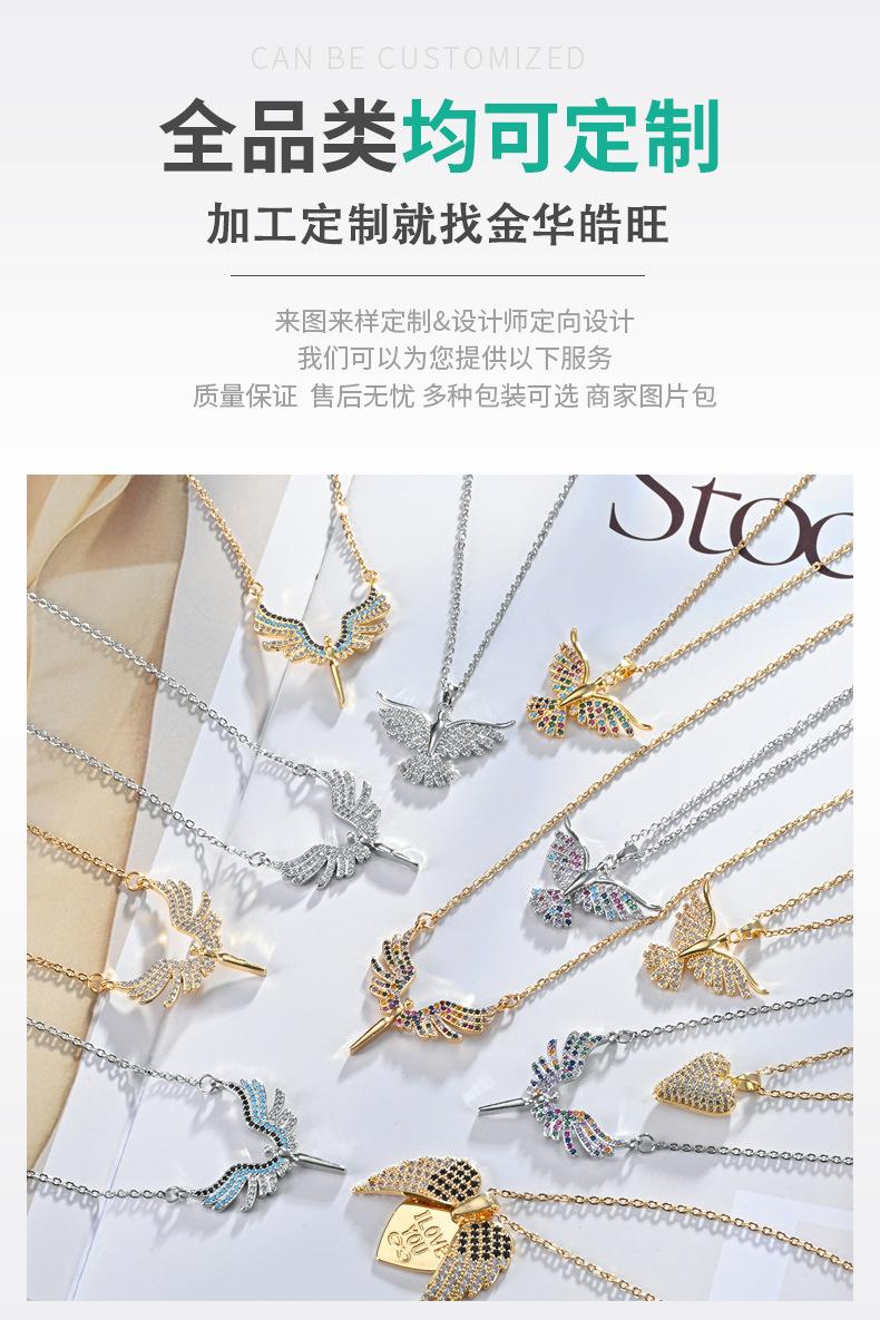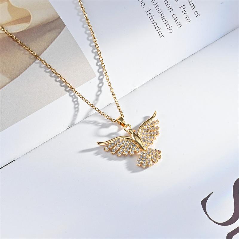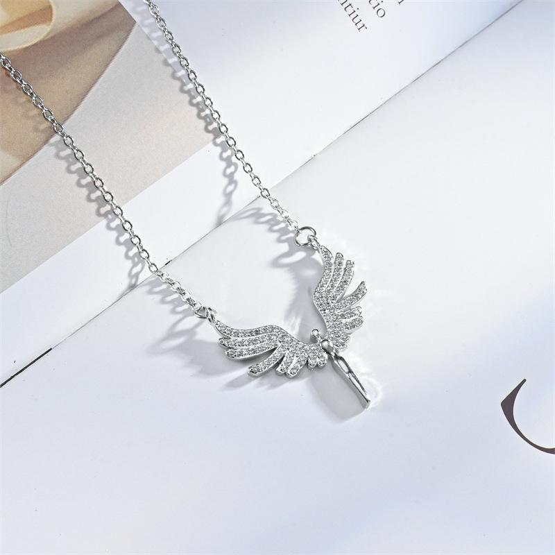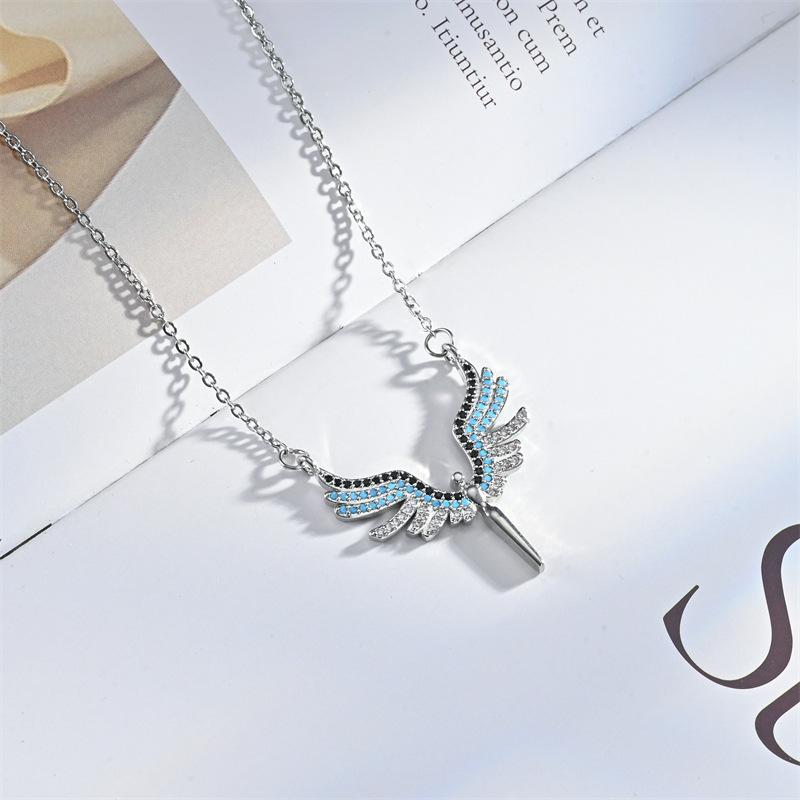 Moda Transfronteriza Nuevo Collar Alas de Ángel Corazón de Ángel Colgante de Cobre Chapado Micro Incrustado Luz Lujo Nicho Collar