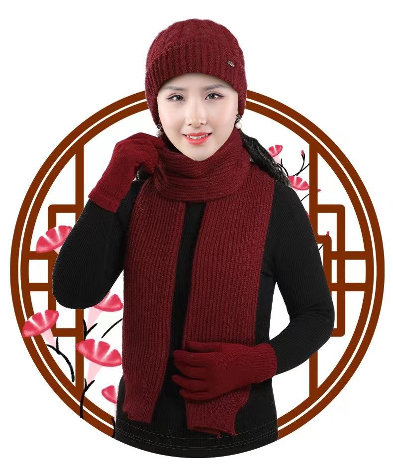 Conjunto de bufanda y gorro de punto para mujeres de mediana edad y ancianas, otoño e invierno, gorro de lana para madre cálido, gorro de algodón para abuela, artículos al por mayor