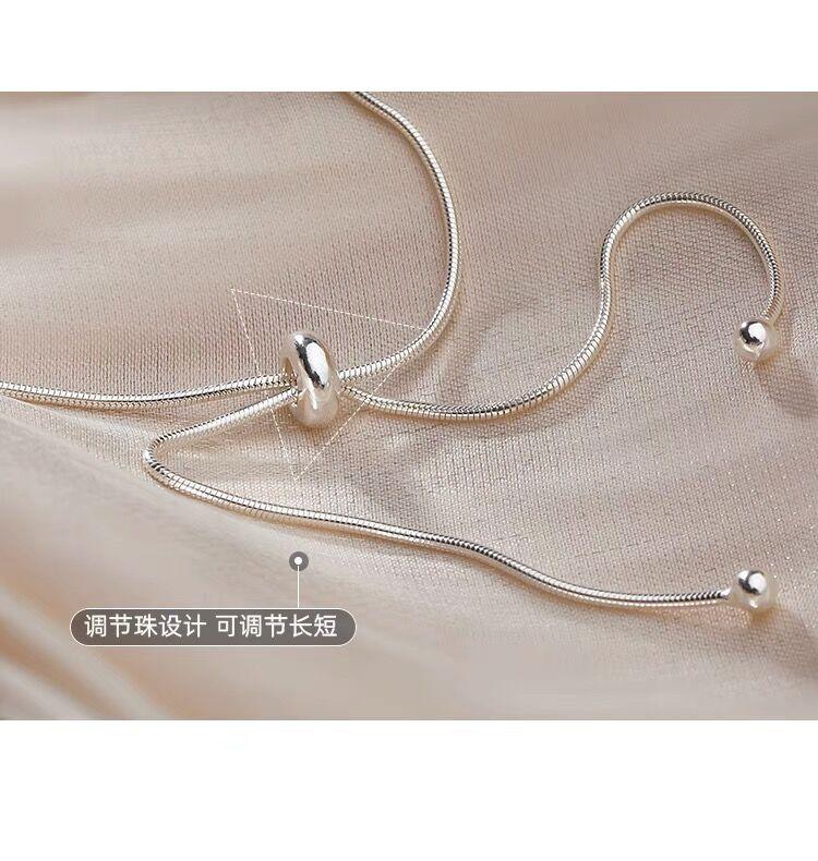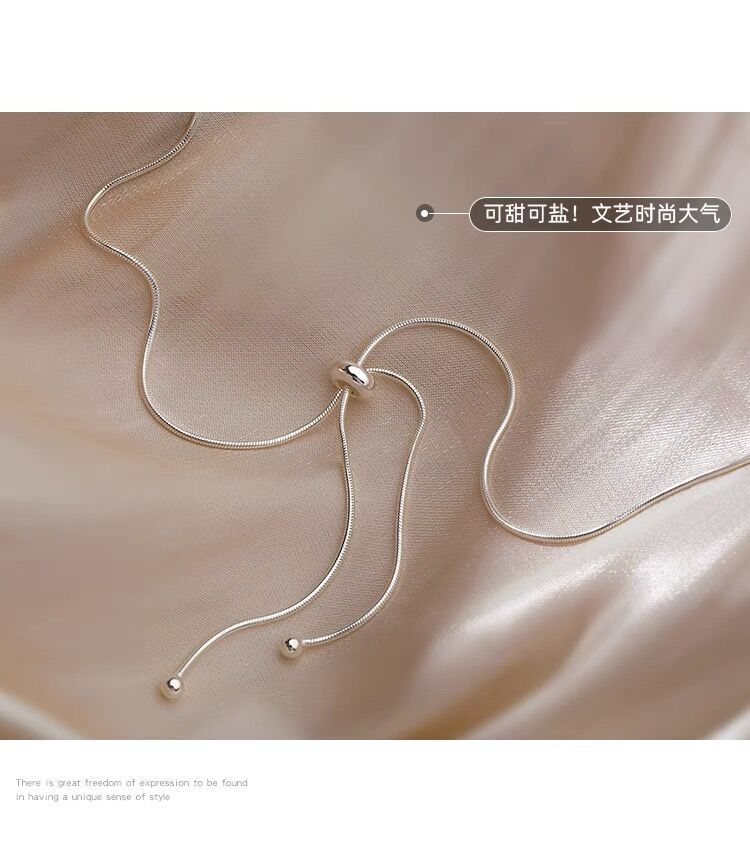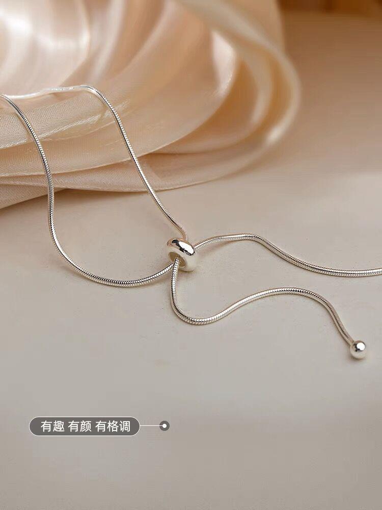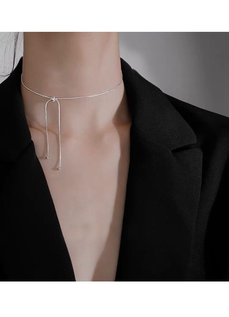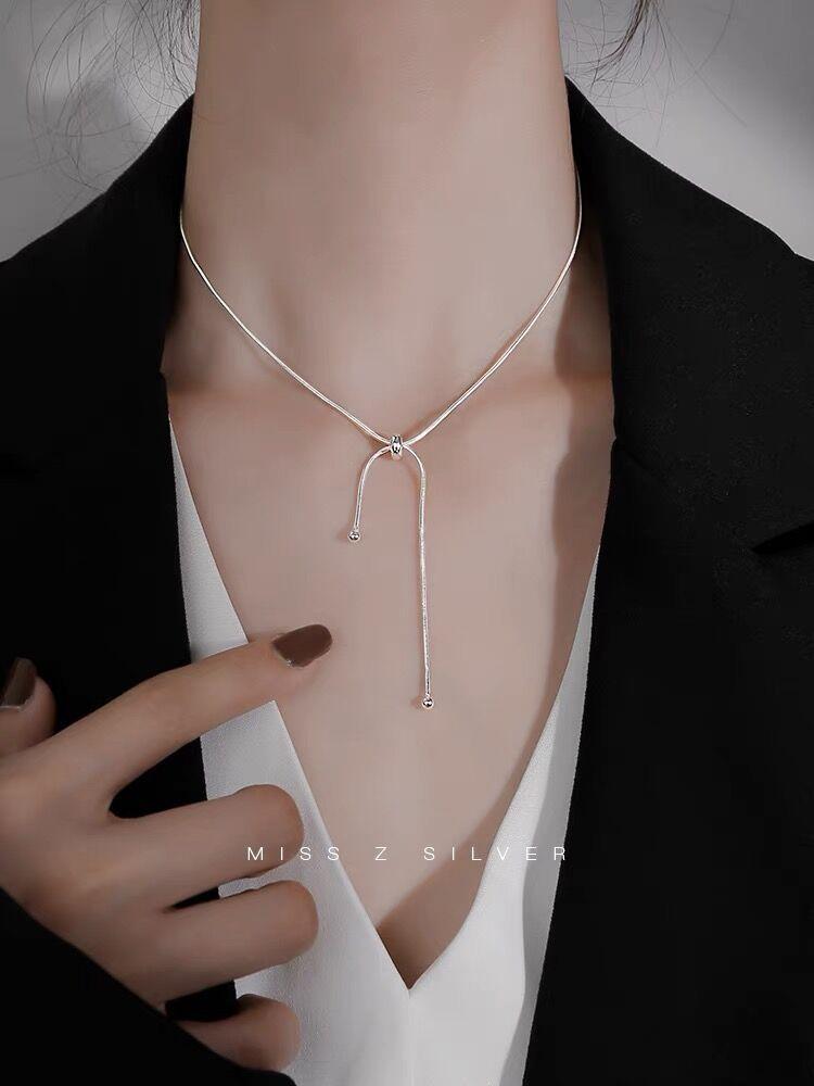 Collar de cadena de hueso de serpiente con diseño de nicho simple de plata esterlina S925, collar de temperamento con cadena de clavícula con borla ajustable para mujer