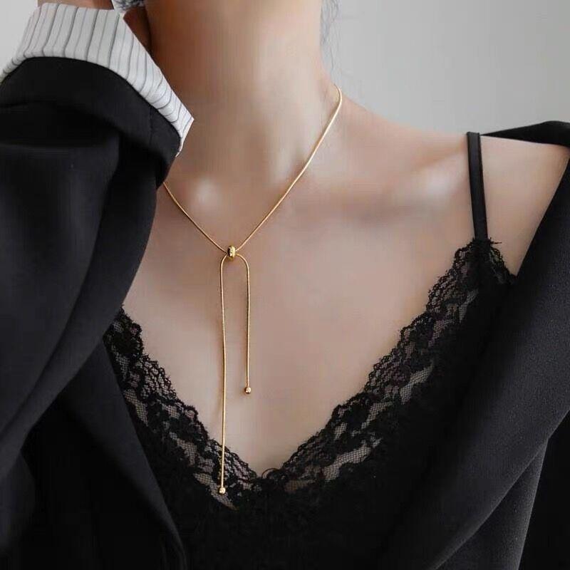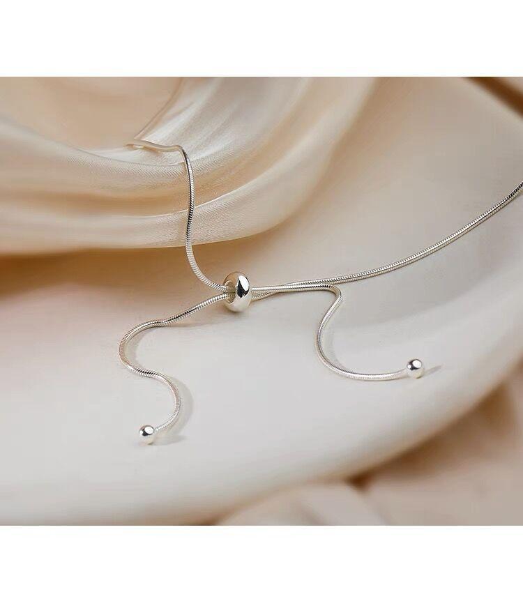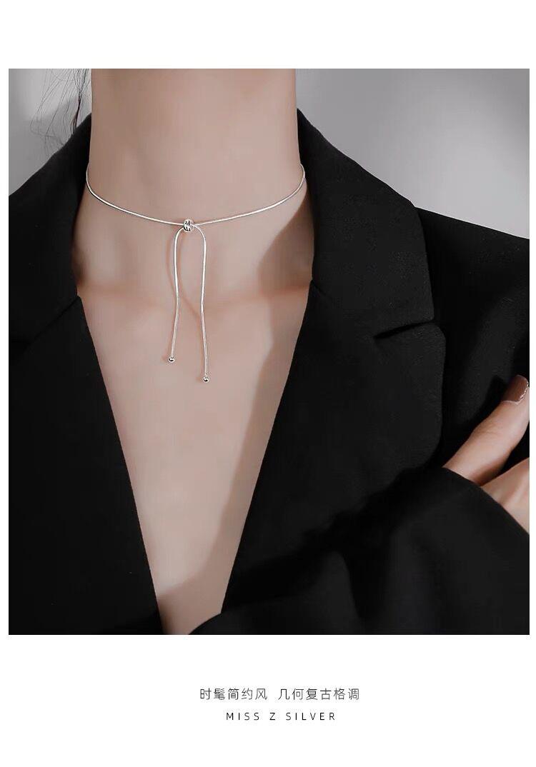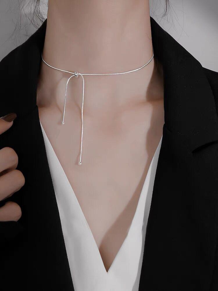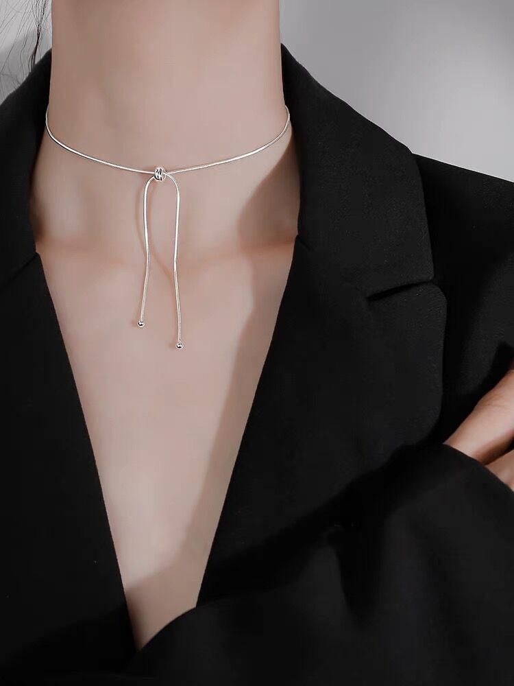 Collar de cadena de hueso de serpiente con diseño de nicho simple de plata esterlina S925, collar de temperamento con cadena de clavícula con borla ajustable para mujer