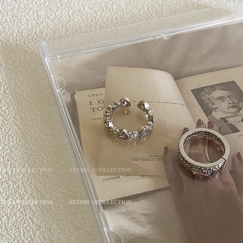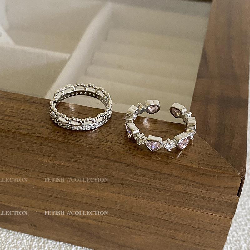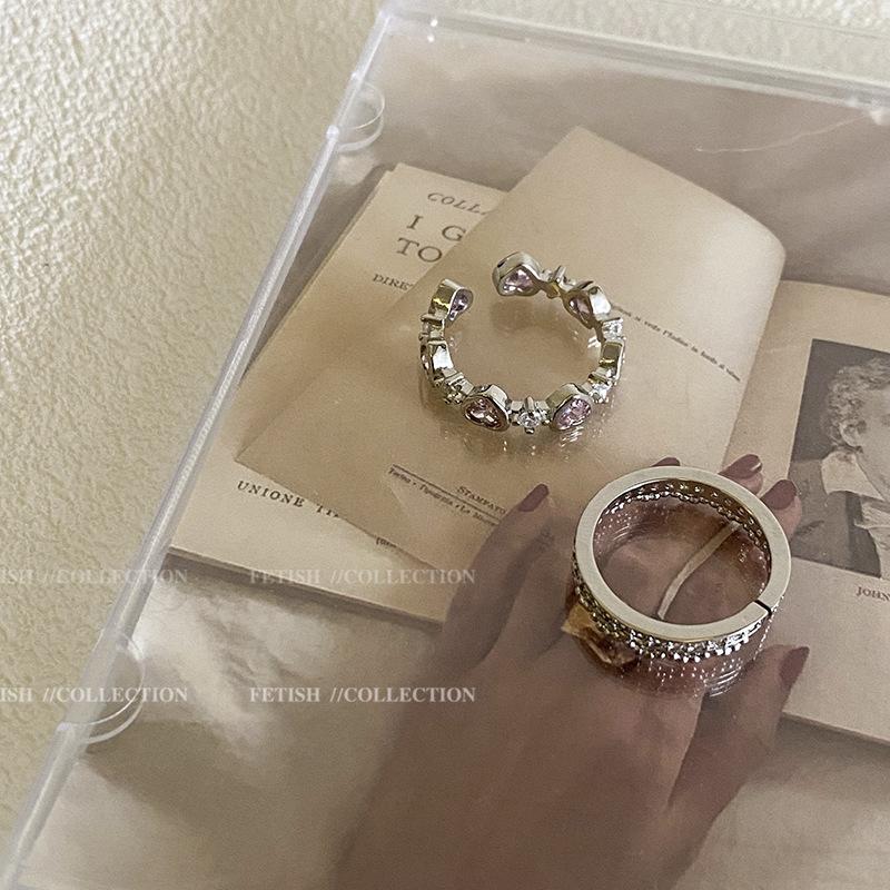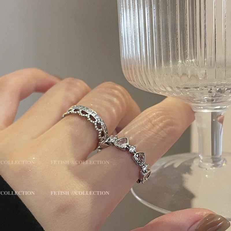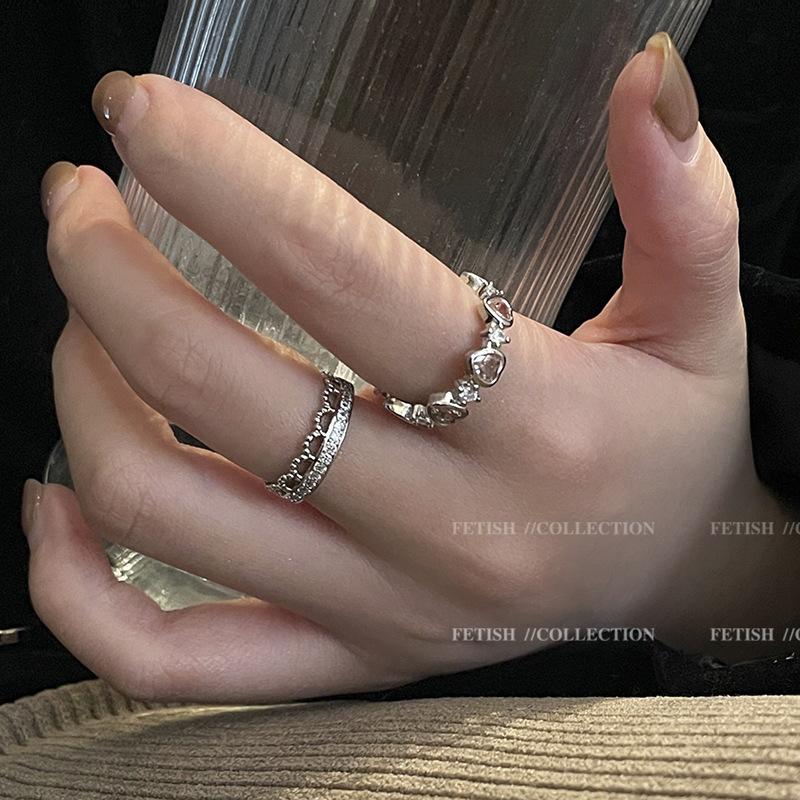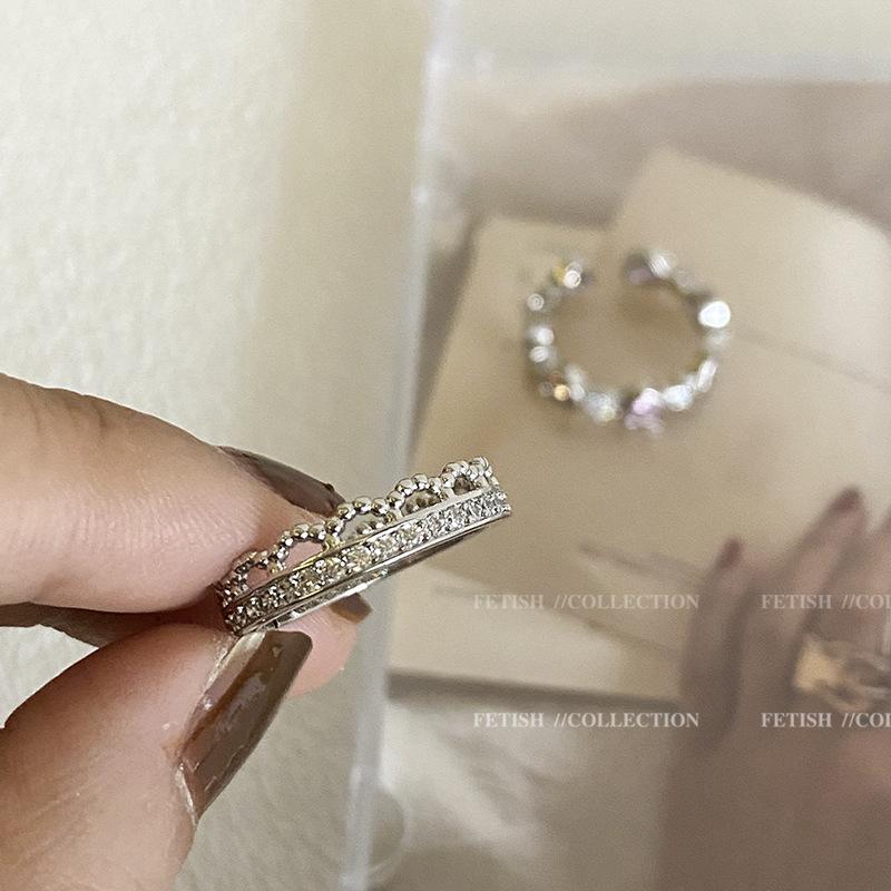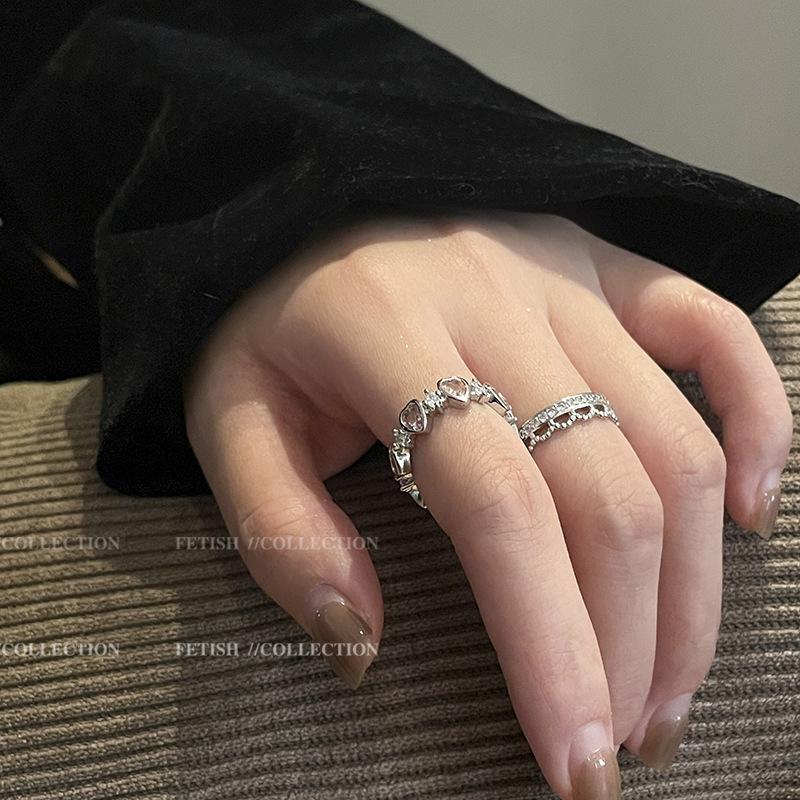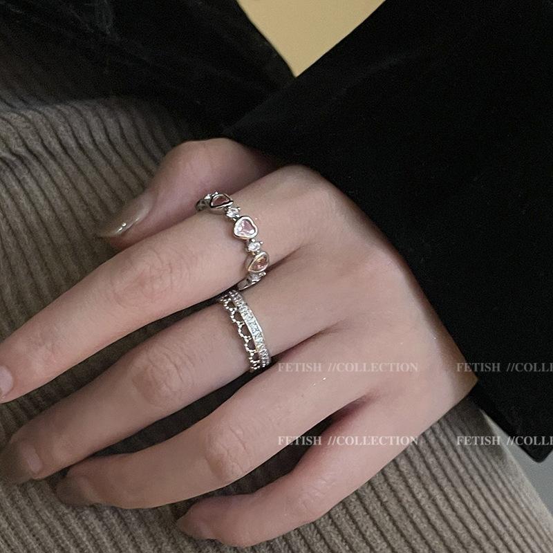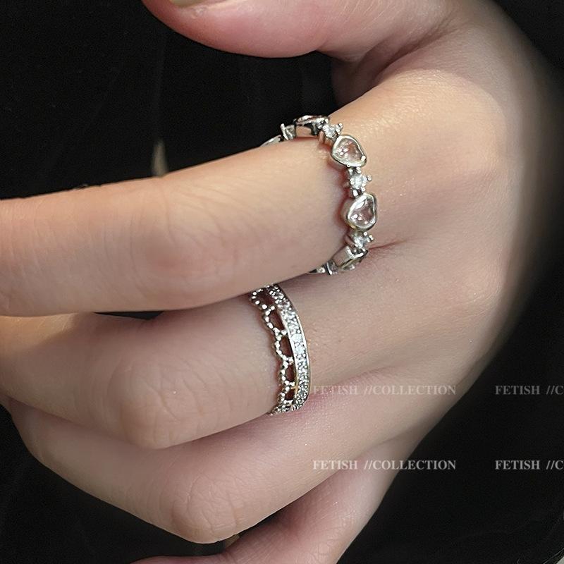 Anillo Dulce Cool Corona Hueca Encaje Temperamento para Mujer Corazón de Amor Rosa Plata S925 Anillo de Dedo Abierto Anillo de Dedo para Comida Marea