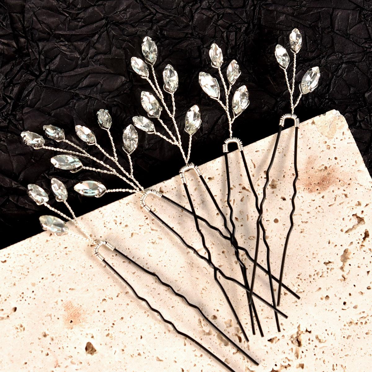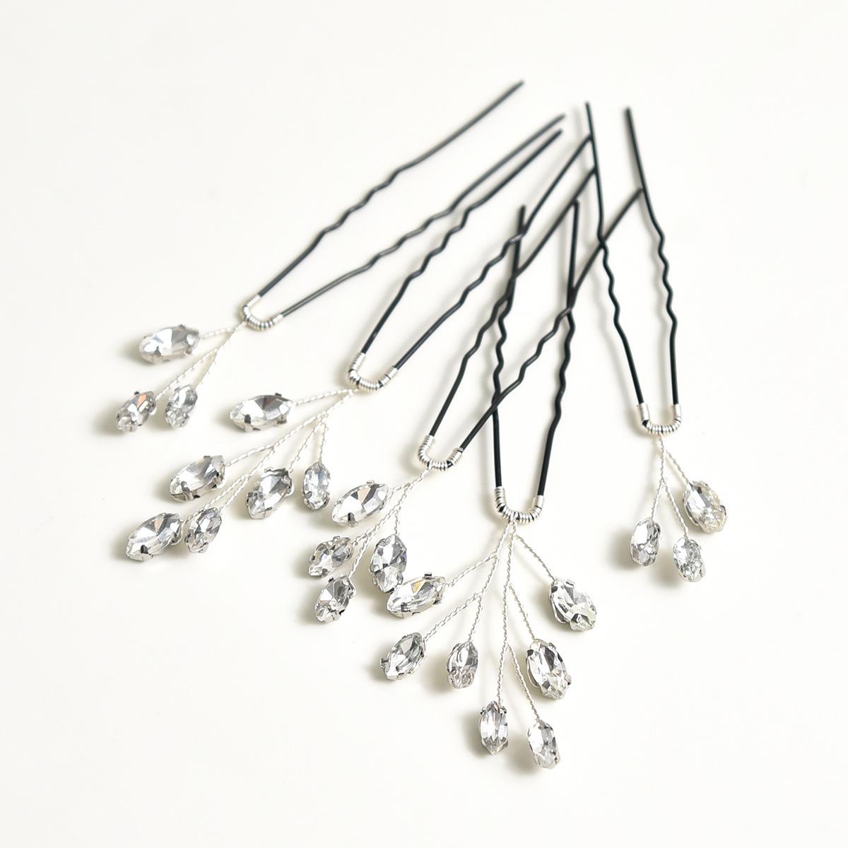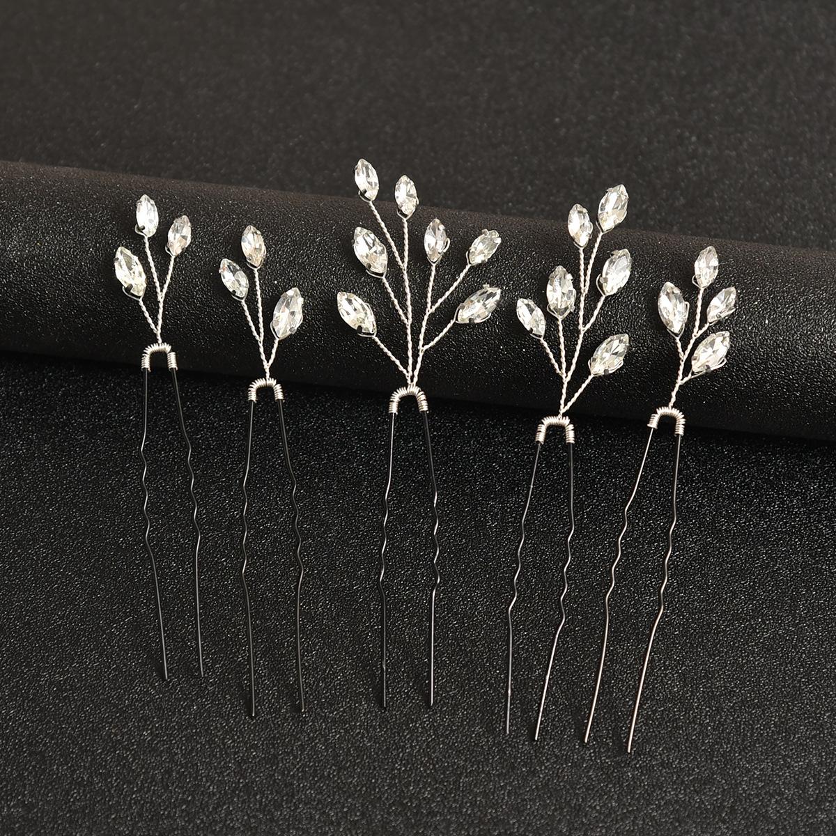 Tocado de novia para boda, 5 unidades, horquilla negra con diamantes transparentes en forma de U, accesorios para el cabello, venta al por mayor