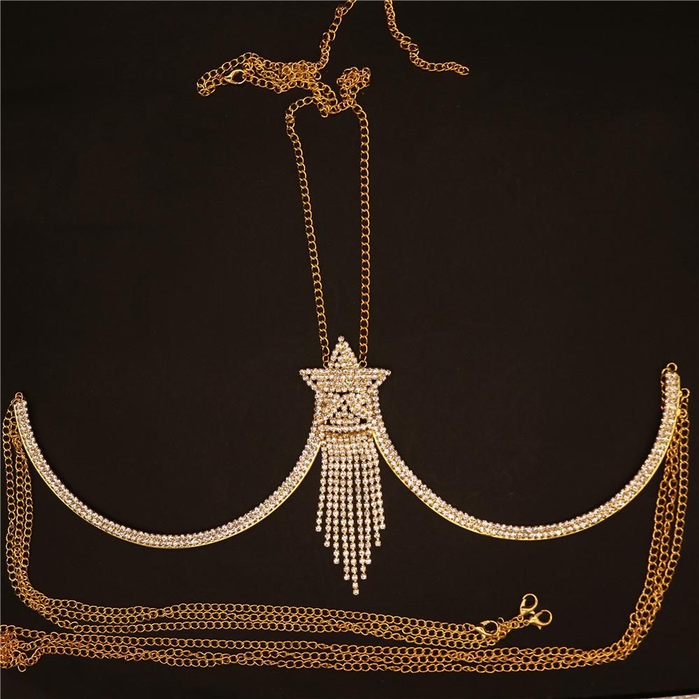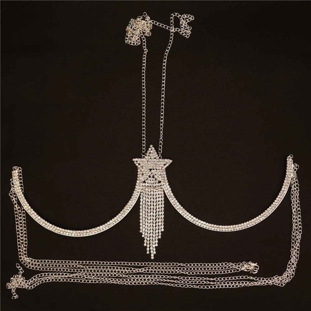 Accesorios de moda europeos y americanos transfronterizos sexy estrella borla pecho bikini cadena corporal de diamantes de imitación