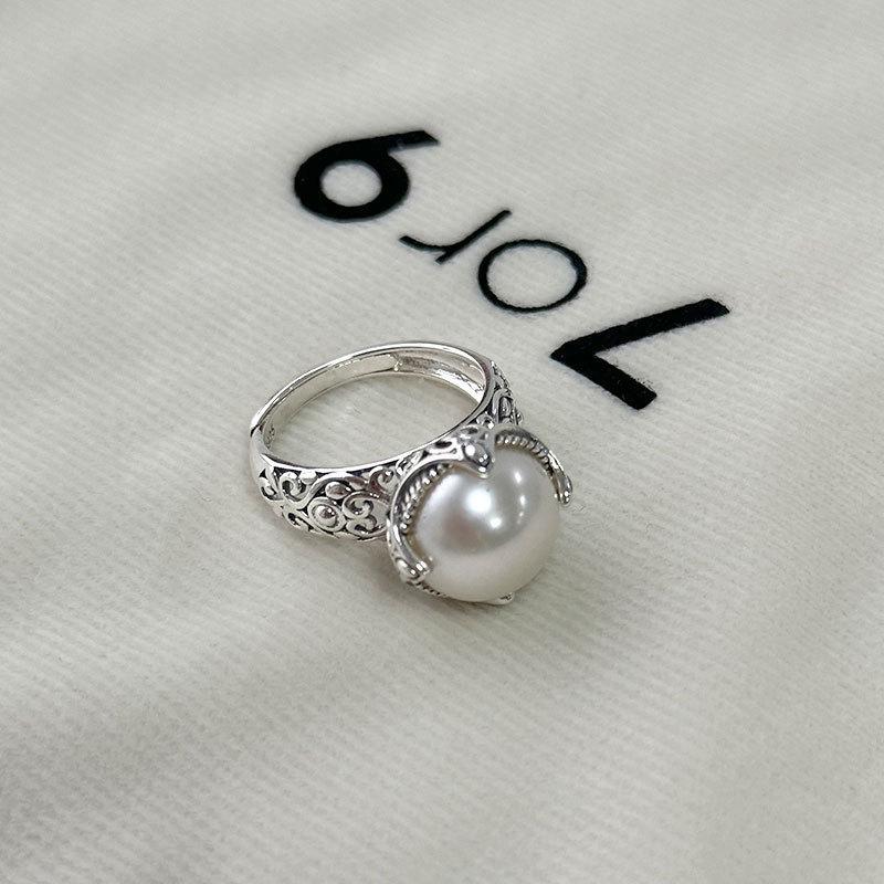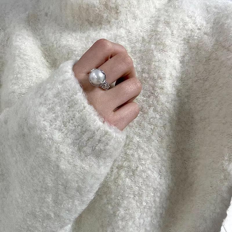 Anillo de perla desgastada retro para mujer, ligero, de lujo, de moda, combinable con todo, diseño de nicho, de alta calidad, abierto, ajustable, nueva moda