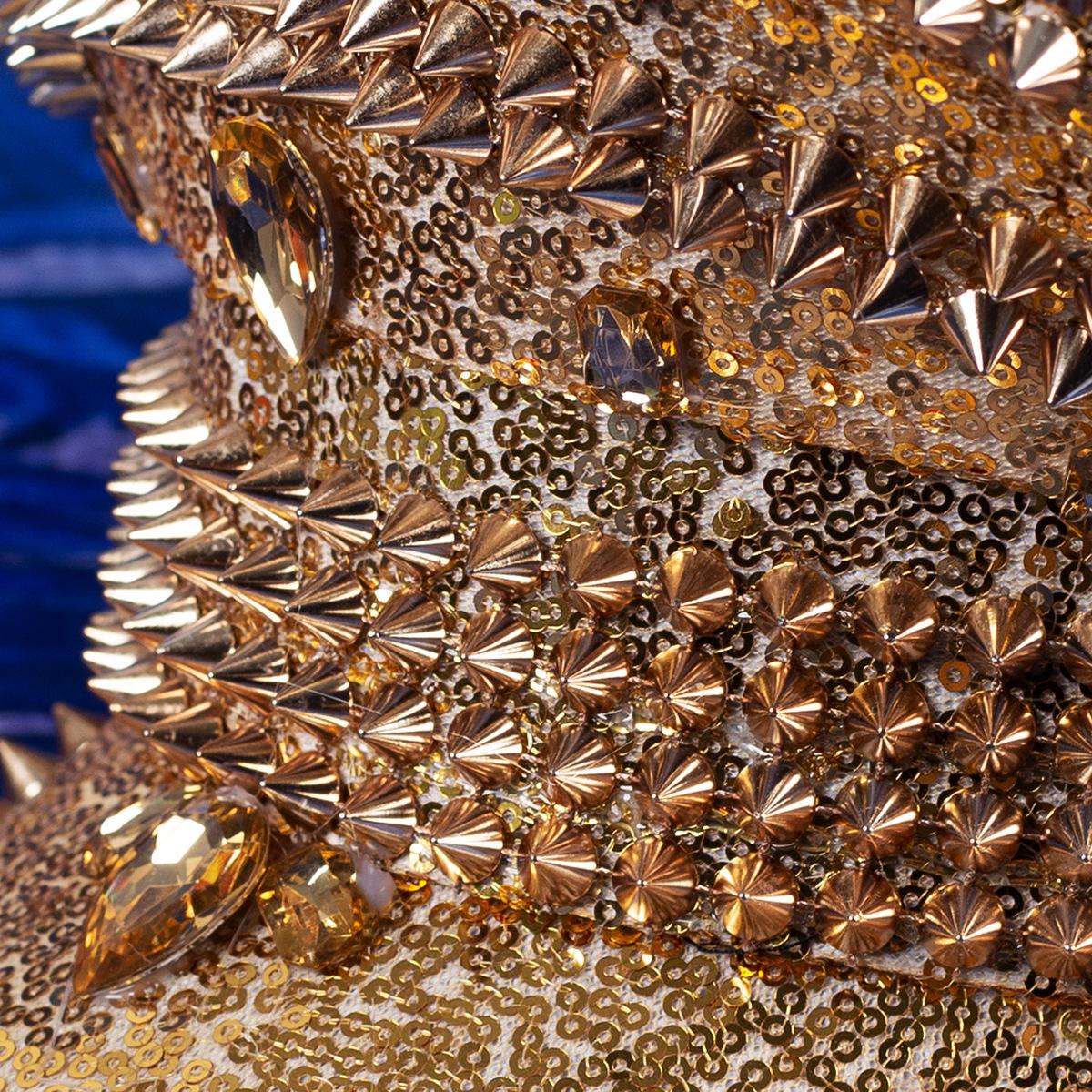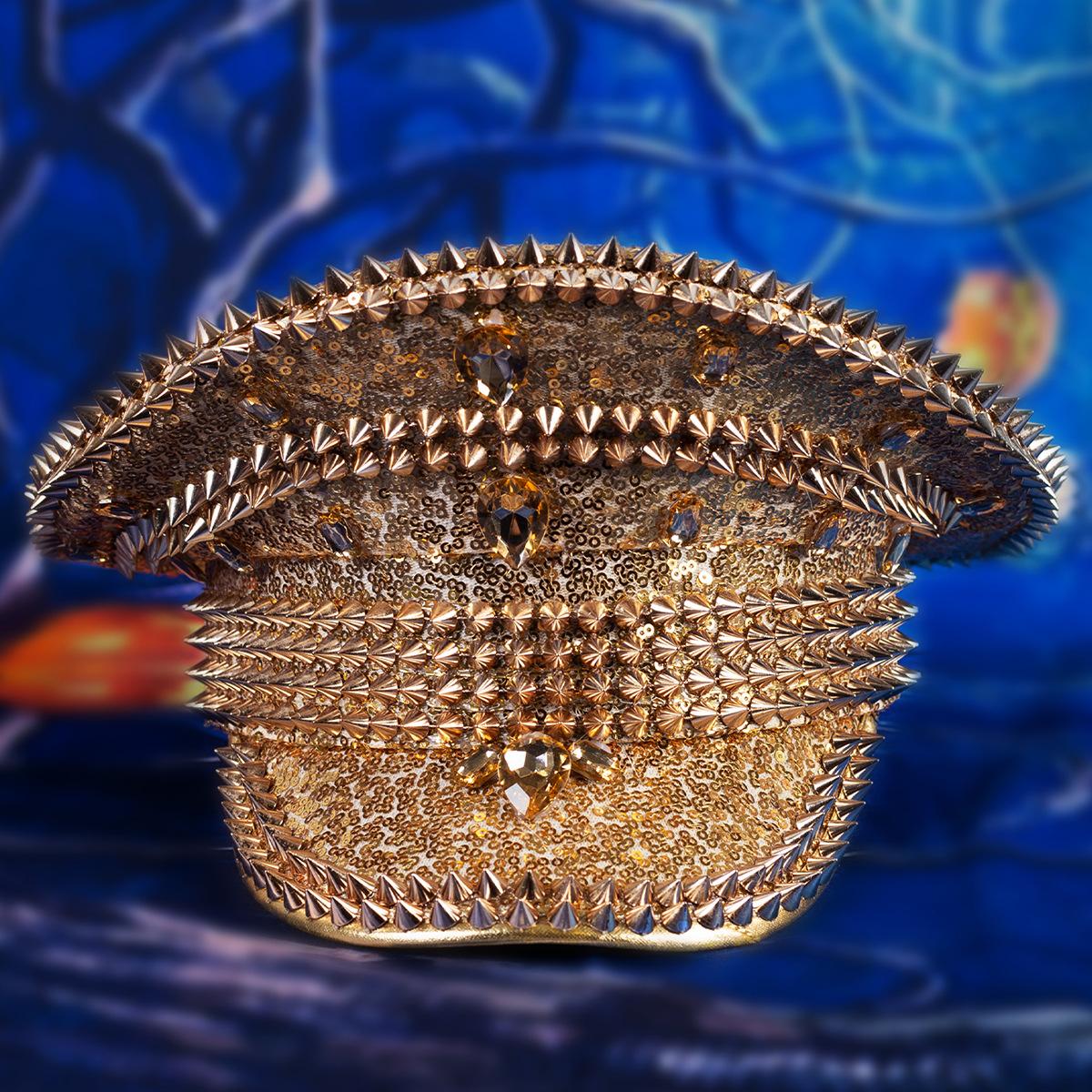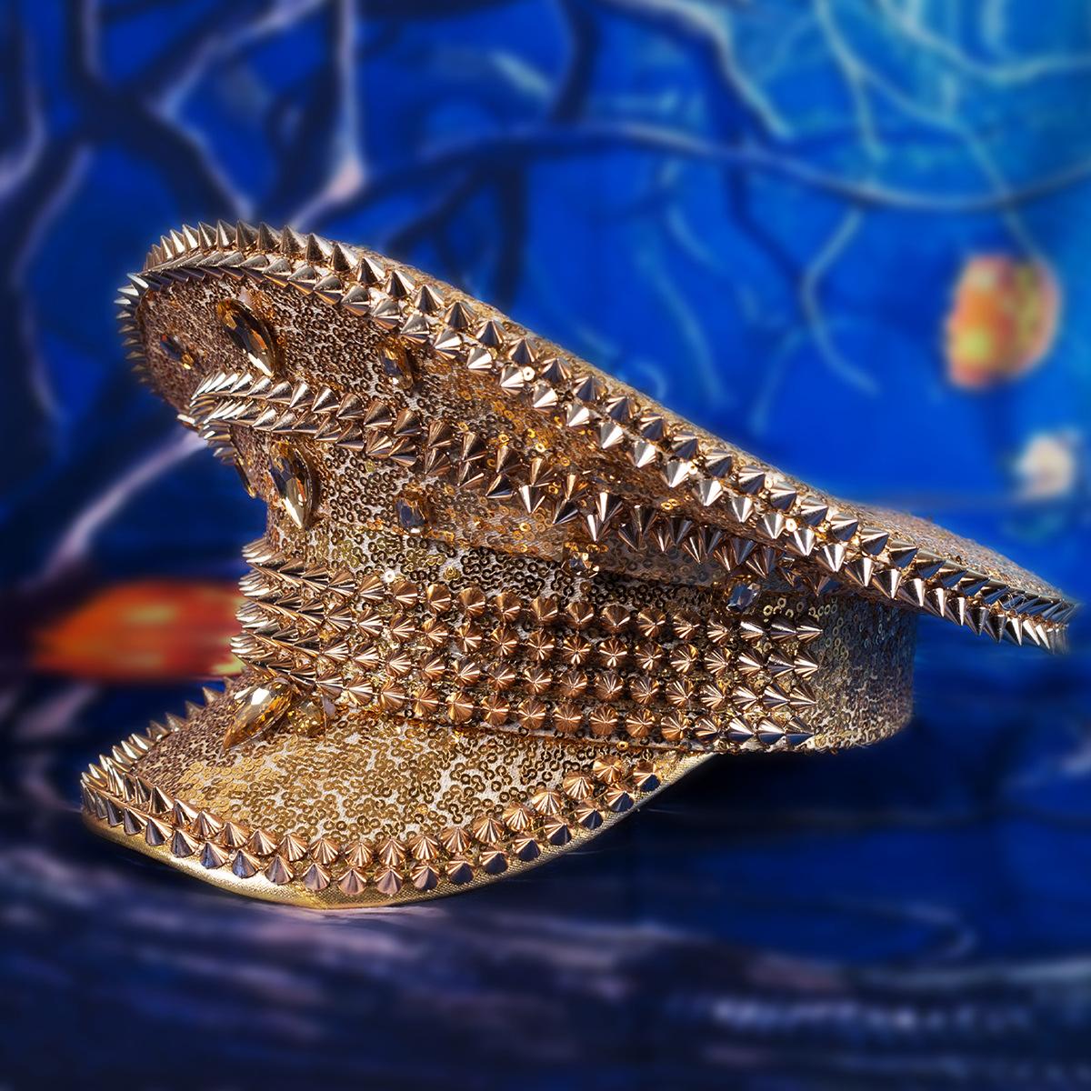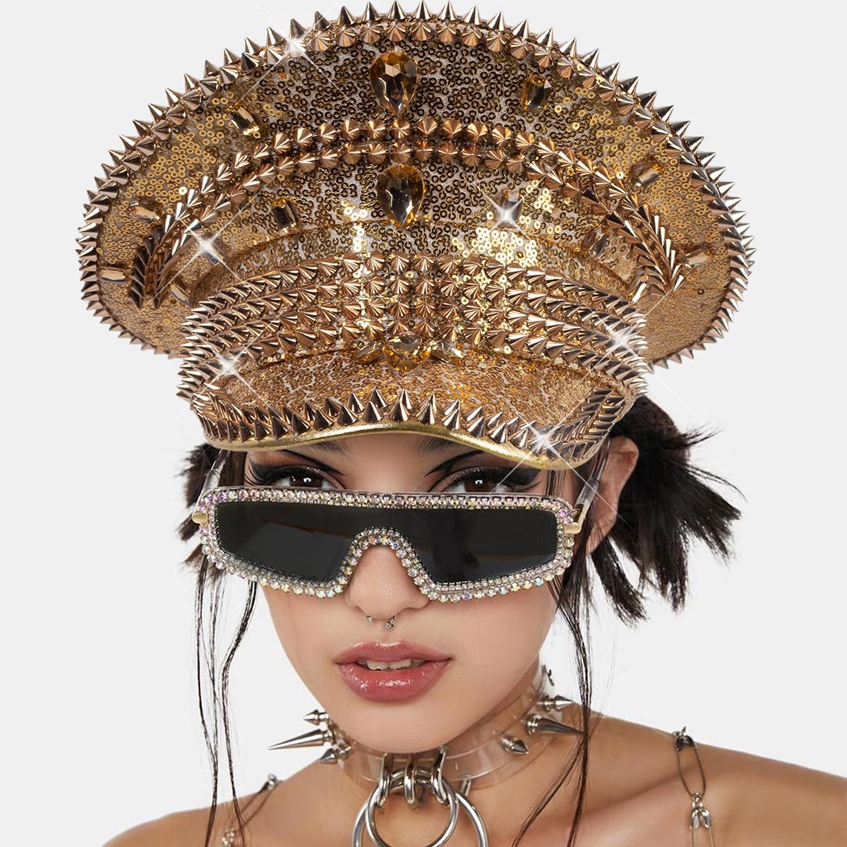 Sombrero de boda para mujer con lentejuelas plateadas, sombrero de fotografía con incrustaciones de diamantes, gorra con visera para fiesta, carnaval, sombrero de rendimiento dorado con parte superior plana.