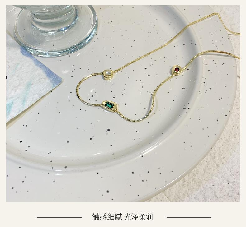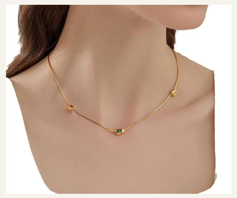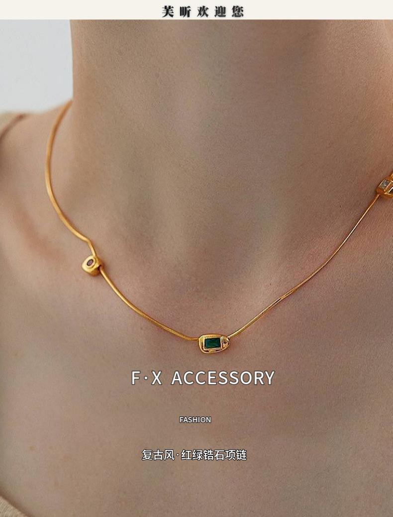 Collar retro de circonitas rojas y verdes con diseño de nicho, cadena de clavícula de lujo ligera de alta calidad, estilo simple, elegante y frío.
