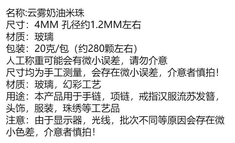 Cuentas de arroz de nube de color crema mágico de 4 mm, hechas a mano, para collar y pulsera, accesorios de joyería, material con cuentas.