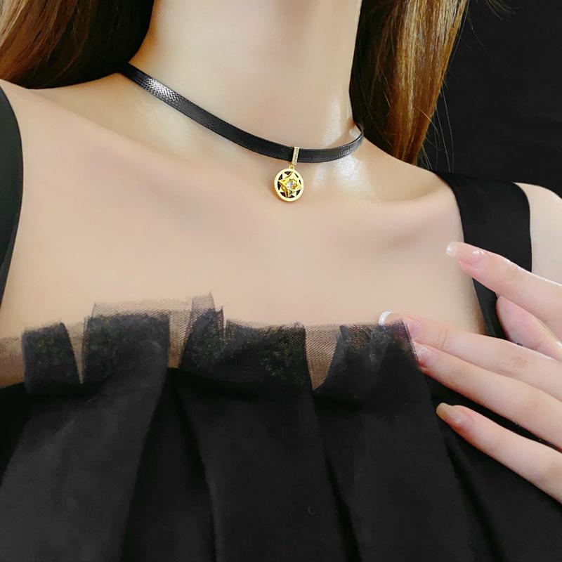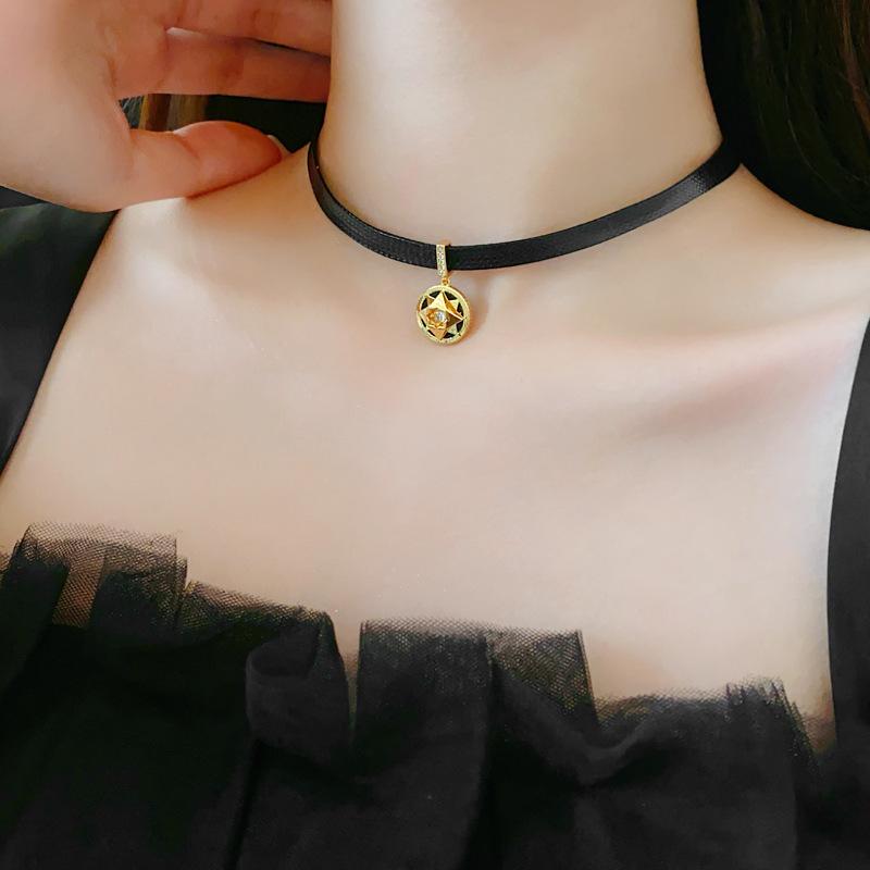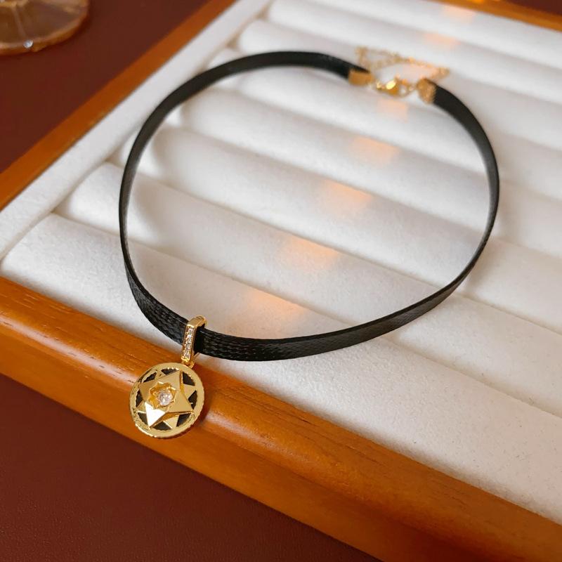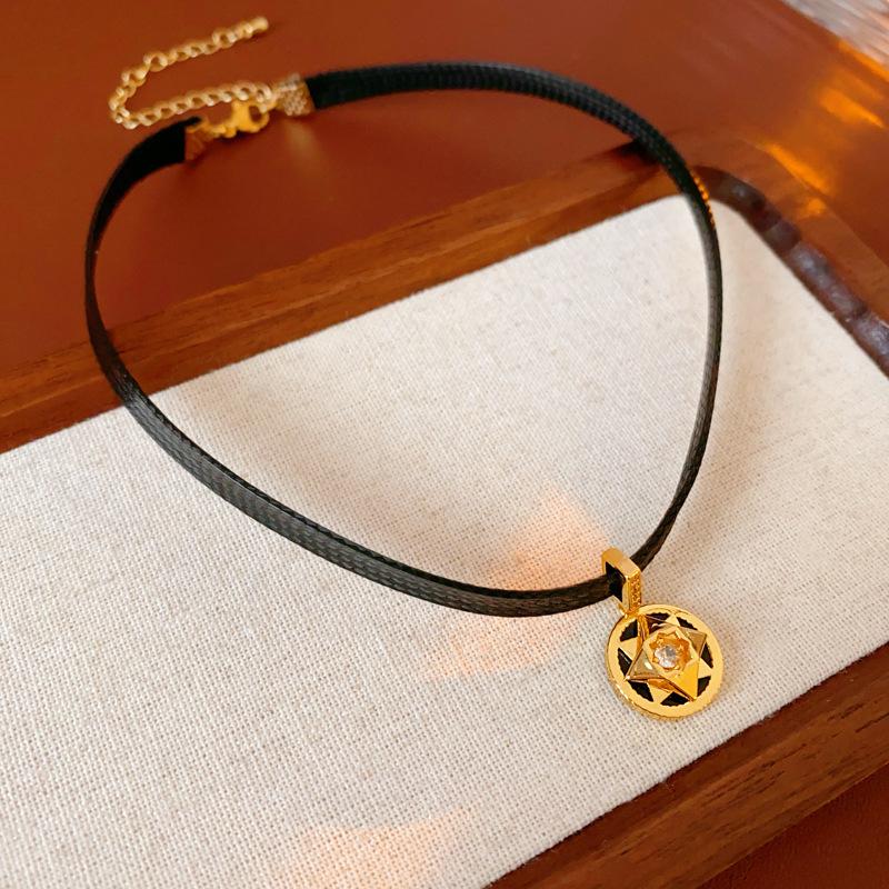 Collar de circonita redonda con diseño retro, cadena de clavícula ligera y lujosa, collar francés de alta gama, venta al por mayor para mujeres.