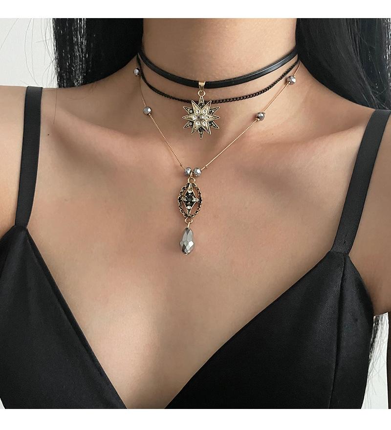 Collar Vintage con Colgante de Estrella de Cristal Multicapa para Mujer Nicho Lujo Ligero Y2K Spice Gargantilla Collar Joyería para el Cuello