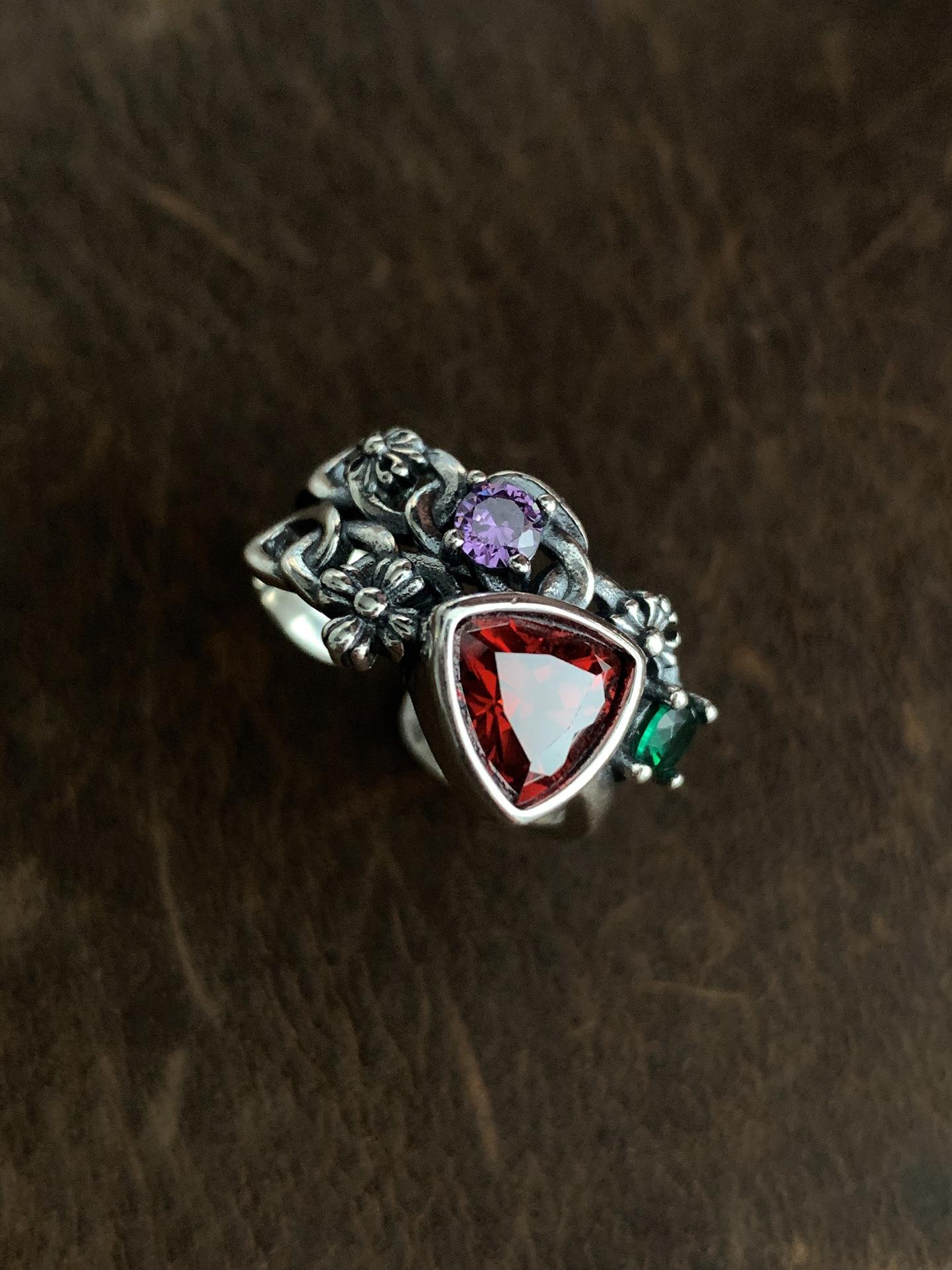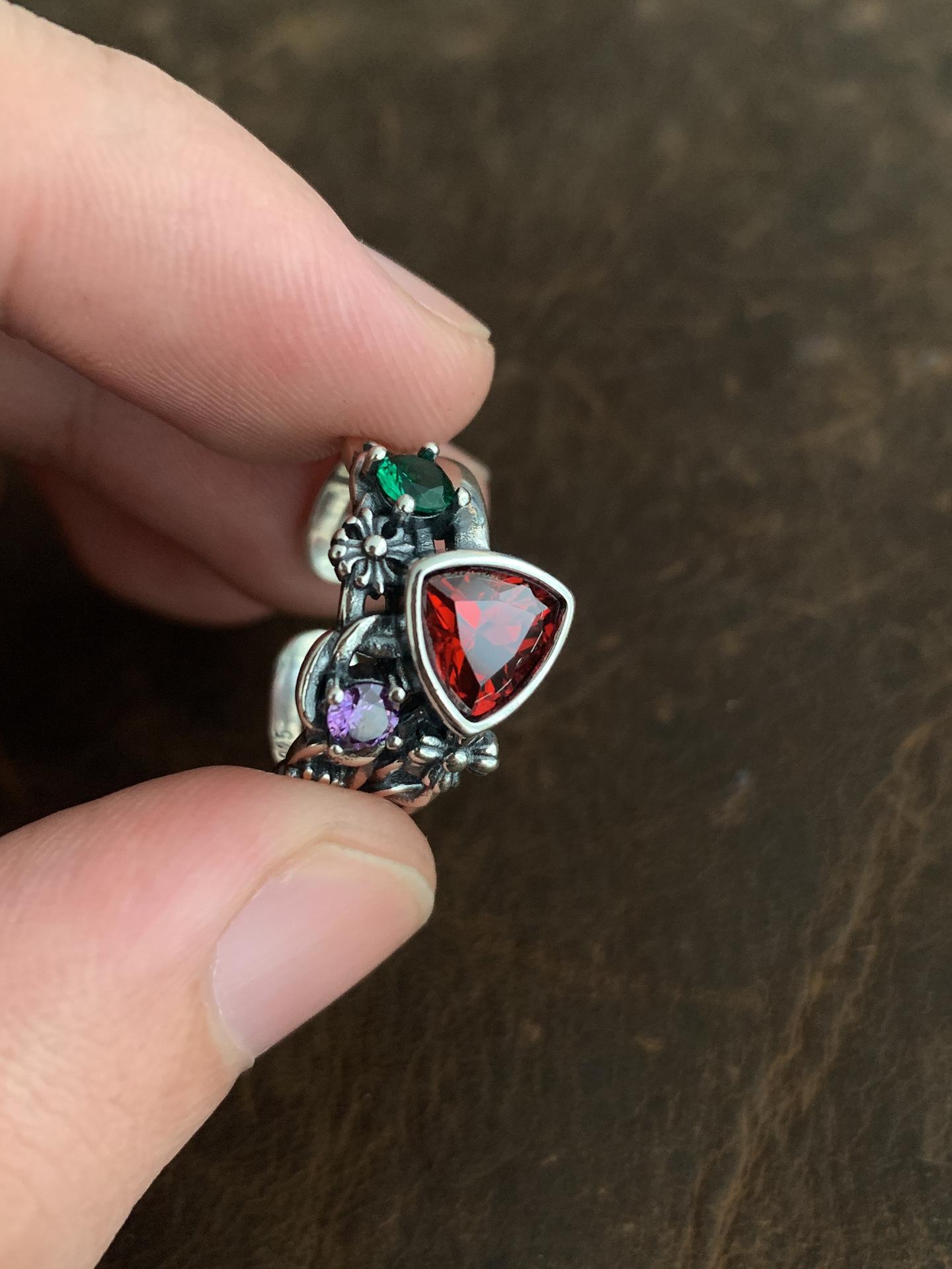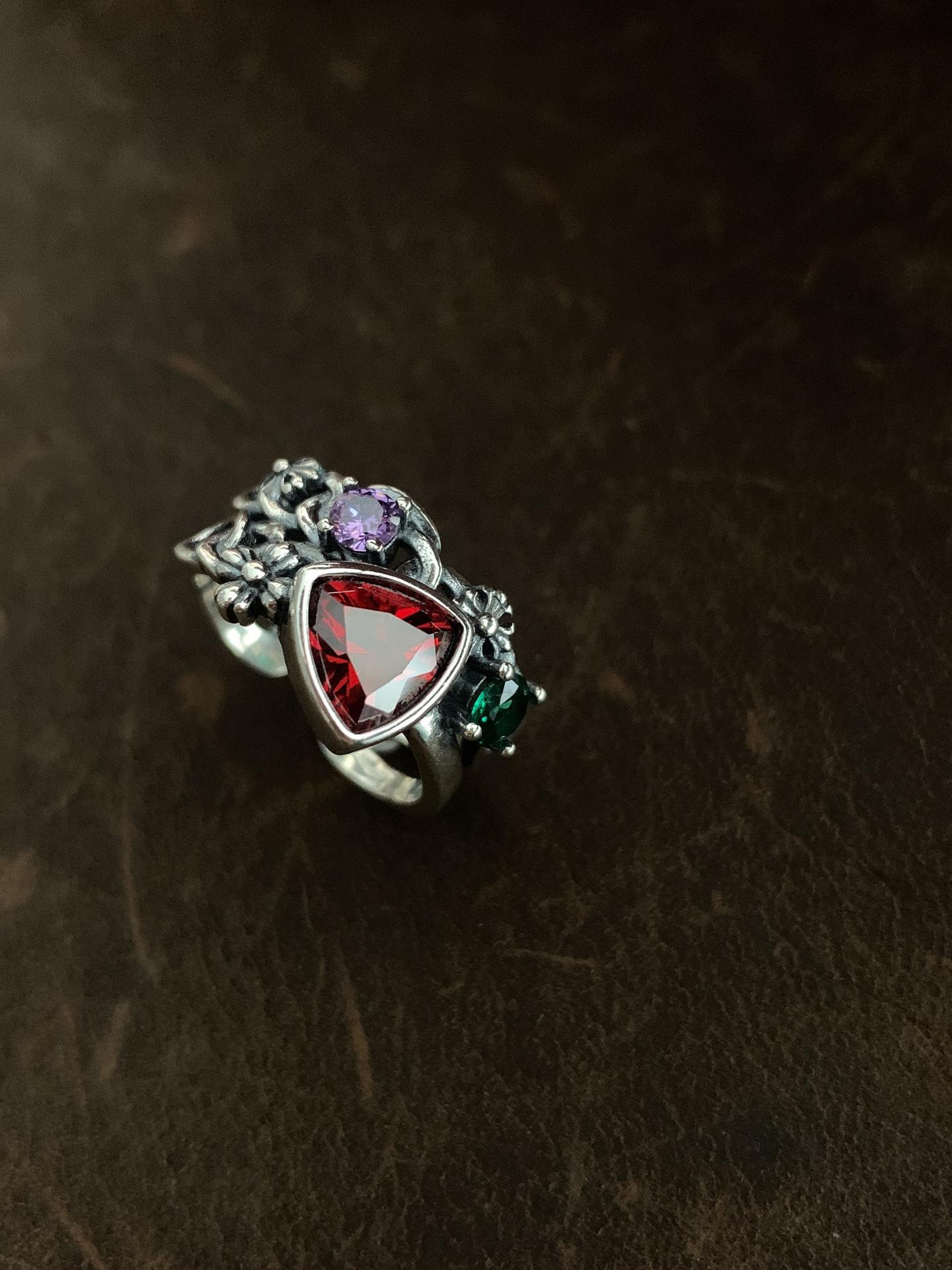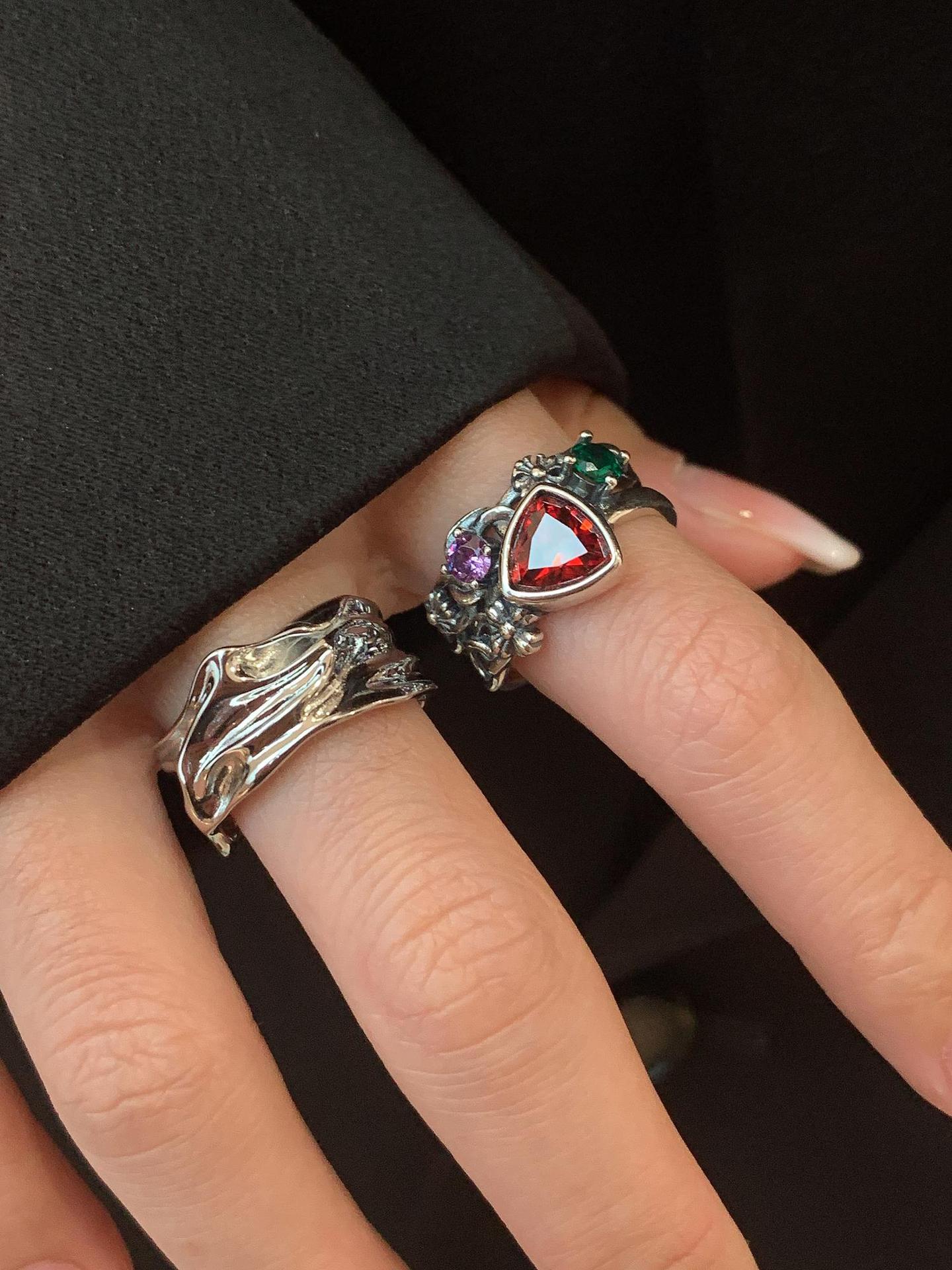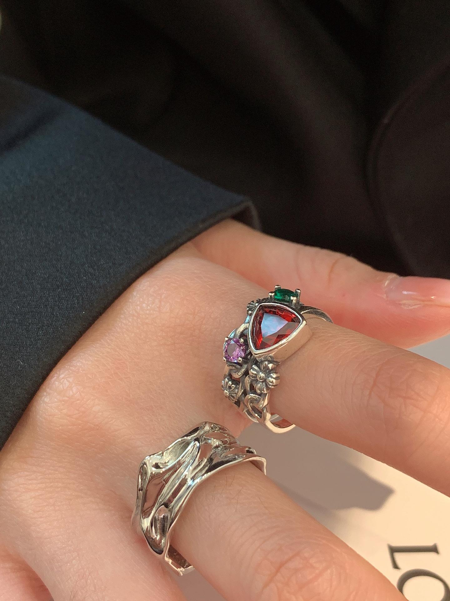 Anillo de Plata S925 Estilo Coreano Circonita Colorida Micro-incrustada para Mujer Moda Retro Geométrico Irregular Plisado Abierto para Dedo