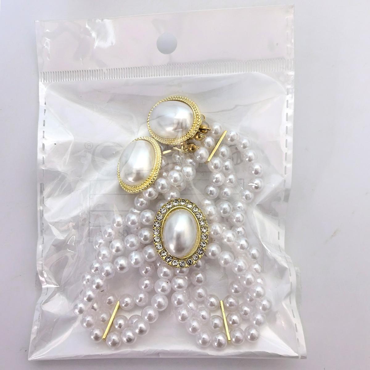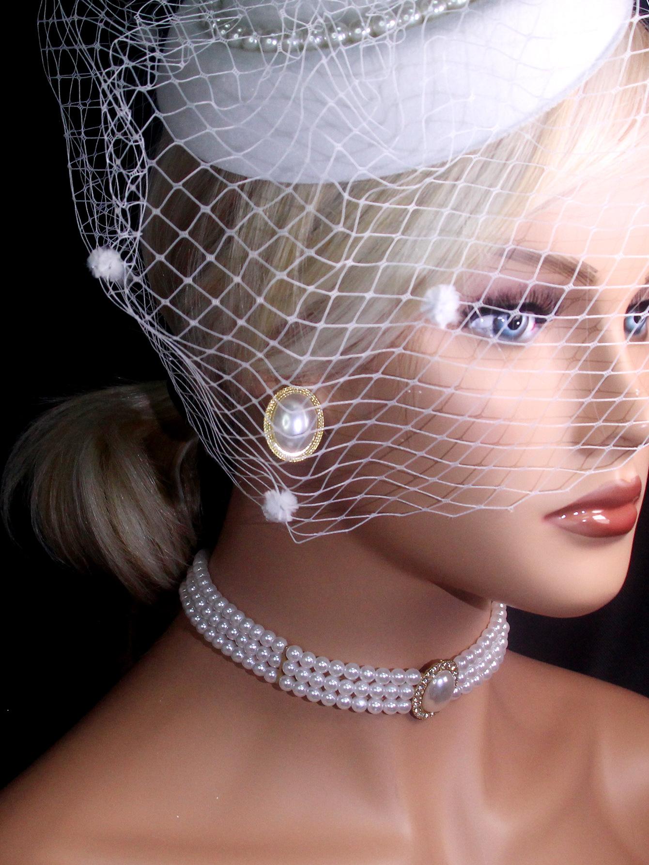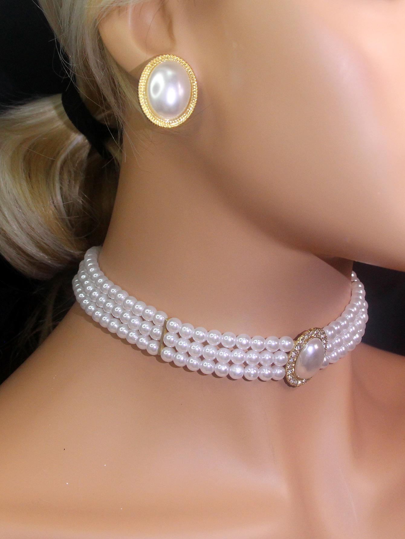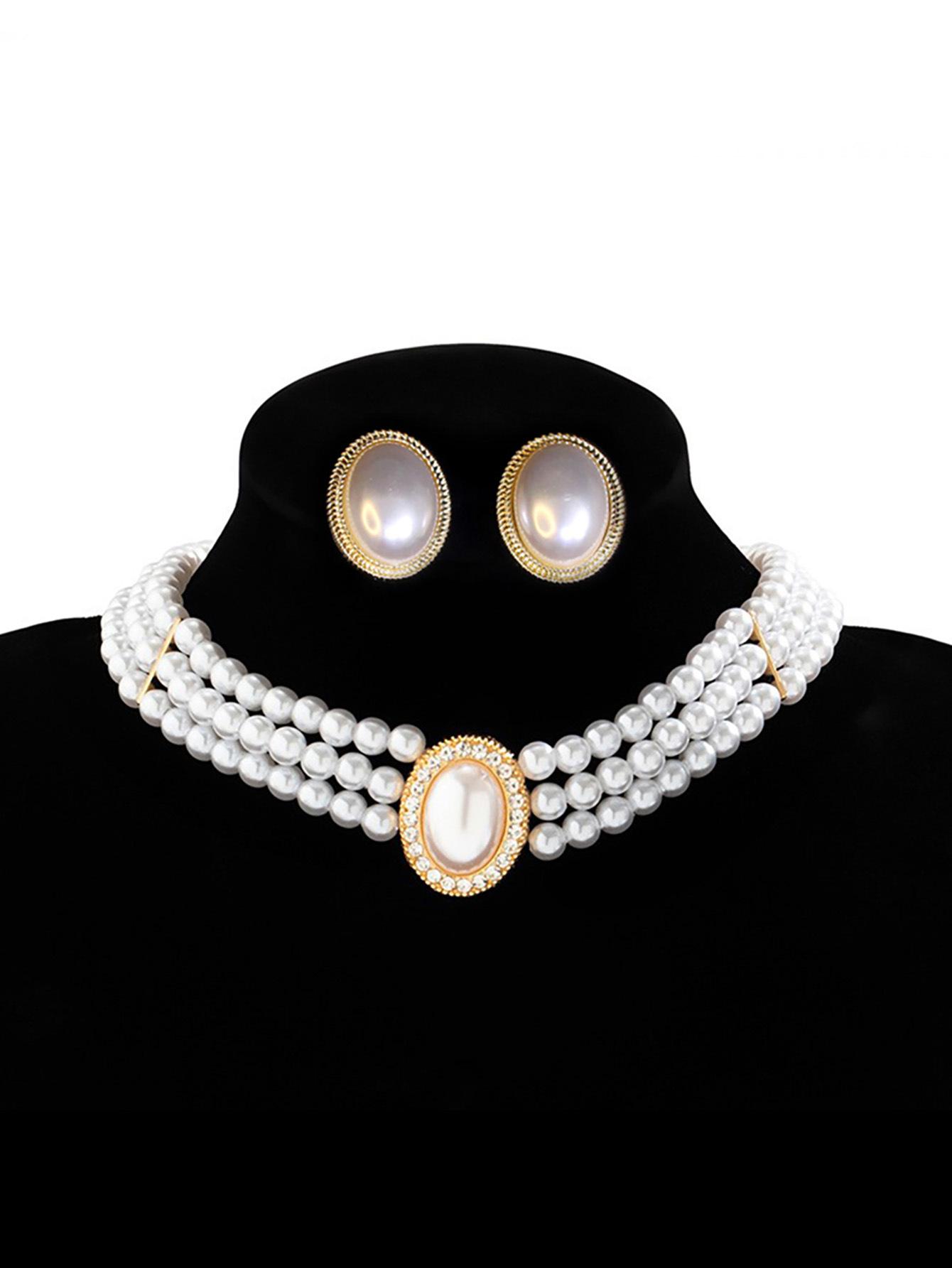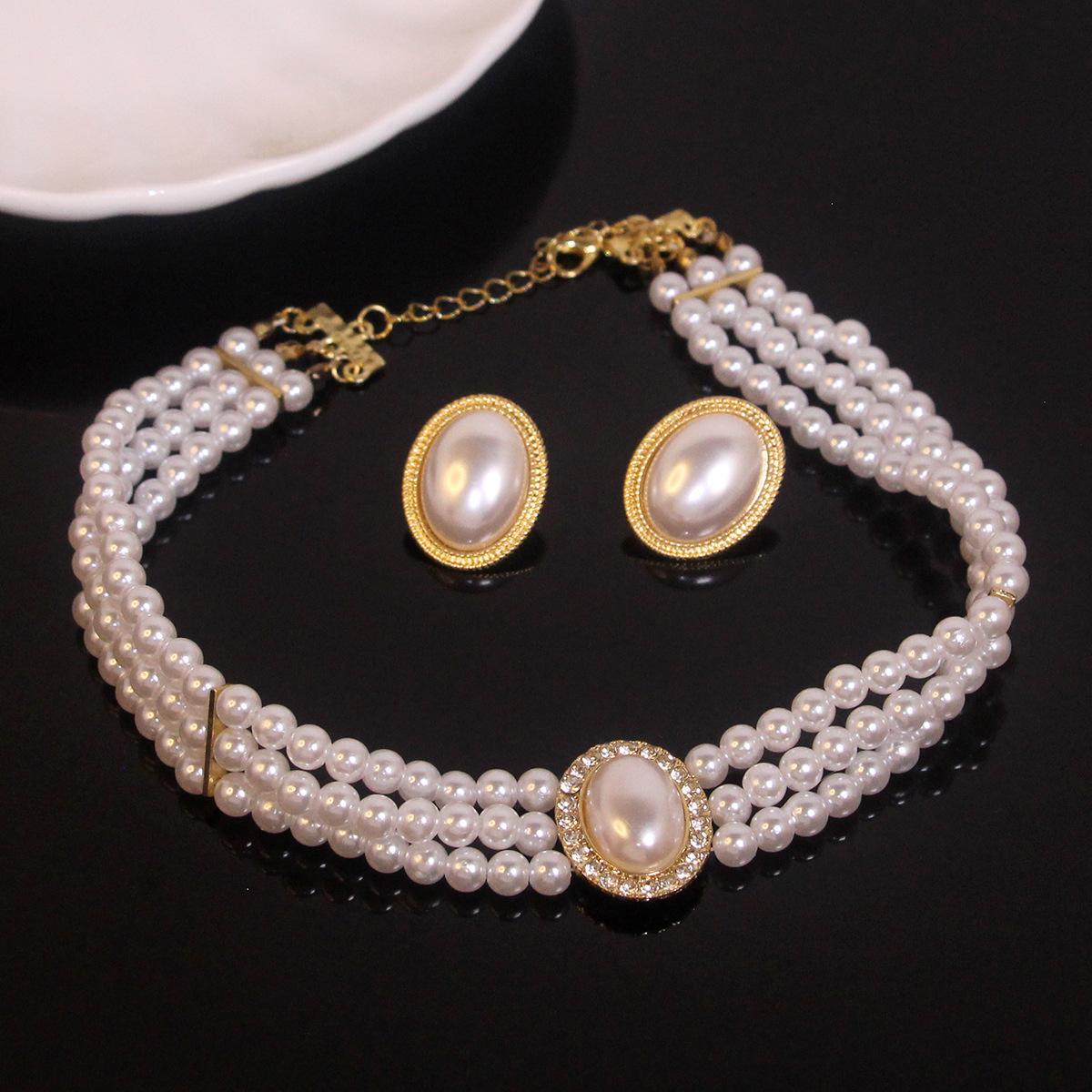 Nuevo Collar de Perlas Nupciales de Diamantes Flash Ovalados Vintage de Lujo Ligero para Mujer Estilo Francés Vestido Vestido de Novia Cadena para Actuación Aretes