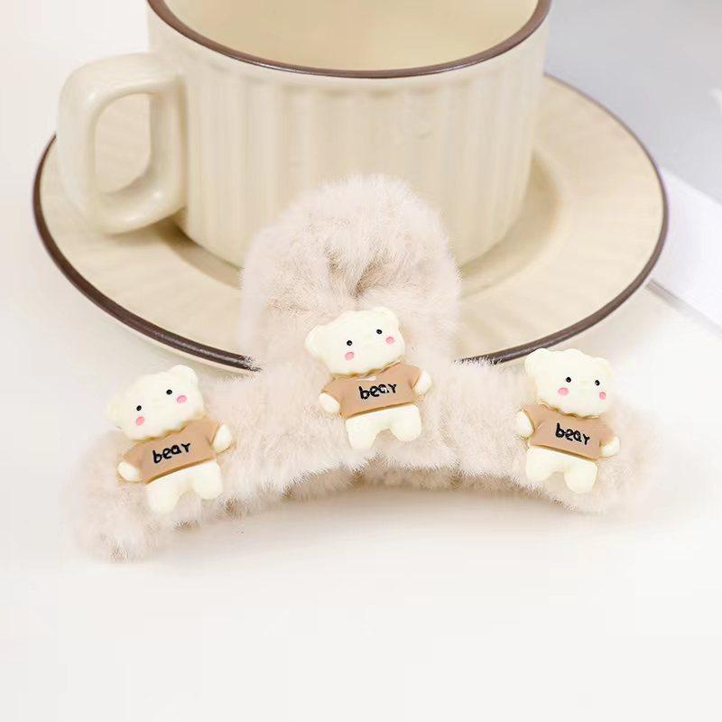 Nueva horquilla de pelo de oso de peluche para otoño e invierno, linda horquilla de dibujos animados con forma de tiburón, accesorios para el cabello para niñas.