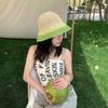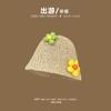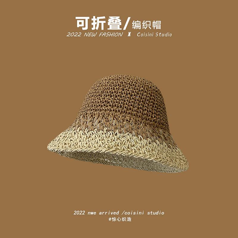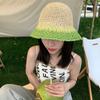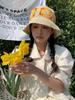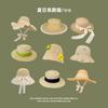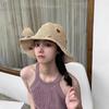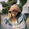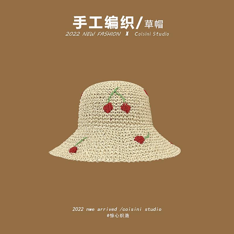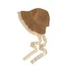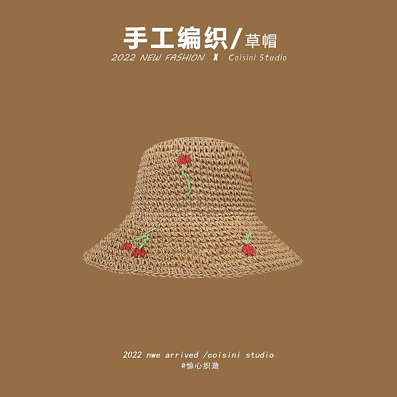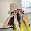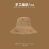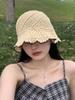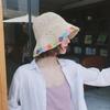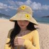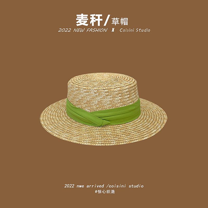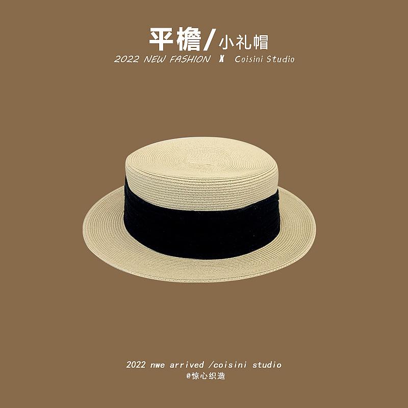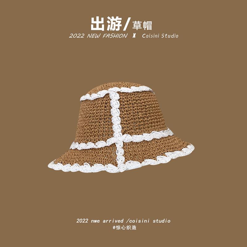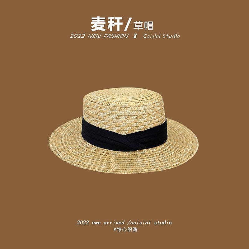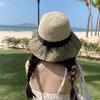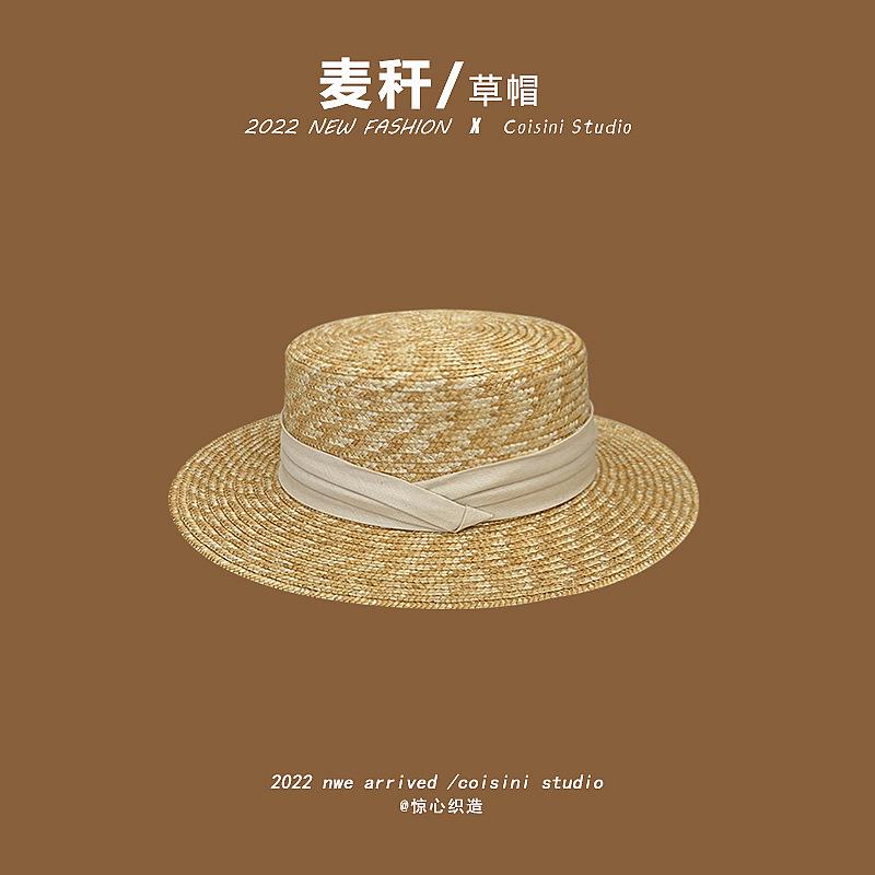 Sombrero de paja con encaje de flores y perlas estilo japonés para mujer, sombrero de copa plana para viaje de primavera y verano.