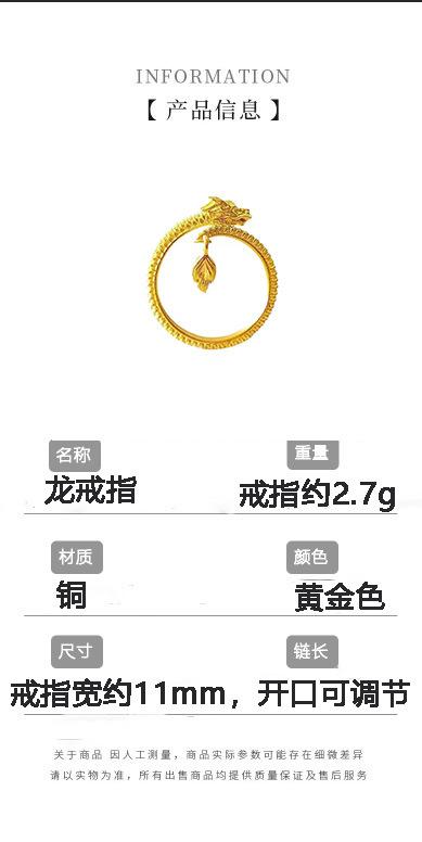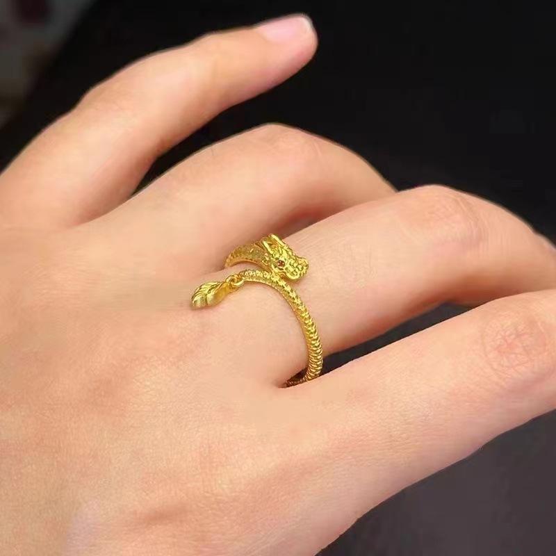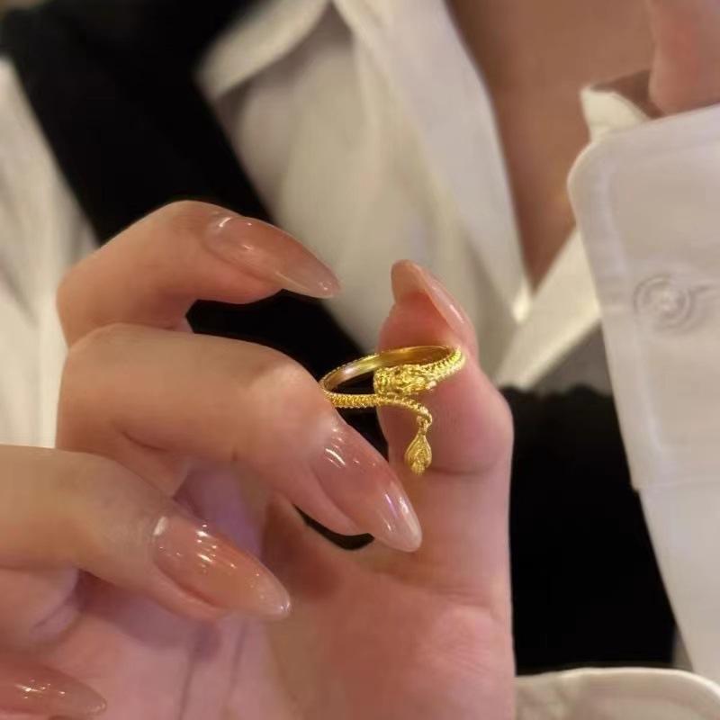 Anillo de cola de dragón con diseño de animal del año del dragón, estilo nacional femenino, de nicho de moda, anillo ajustable abierto que no se decolora en oro