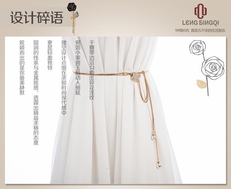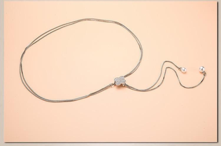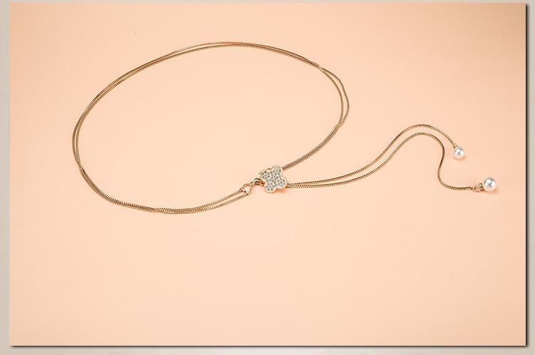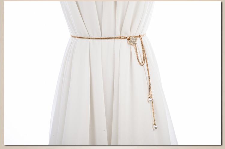 Cadena de Cintura Fina de Metal Dulce y Versátil para Mujer Cinturón Decorativo de Trébol de Cuatro Hojas con Pedrería Cadena Punk