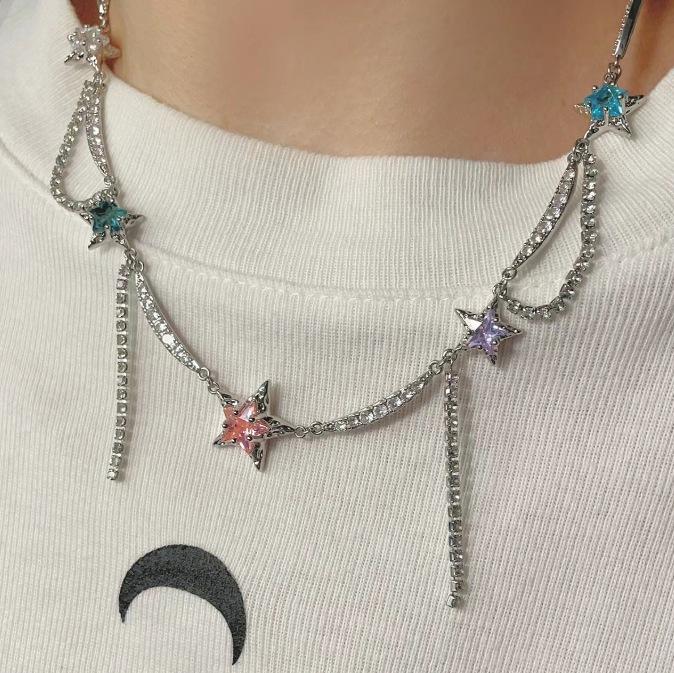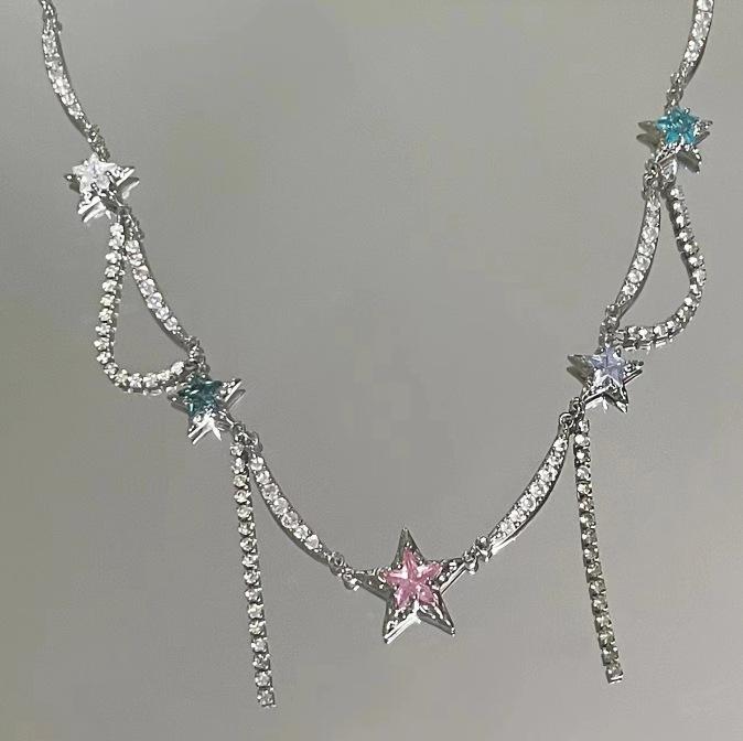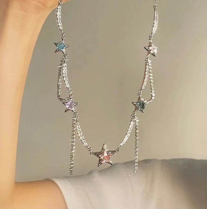 Collar de borla de estrella de circón de borla de dopamina femenino Joker moda Joker cadena de clavícula collar joyería al por mayor