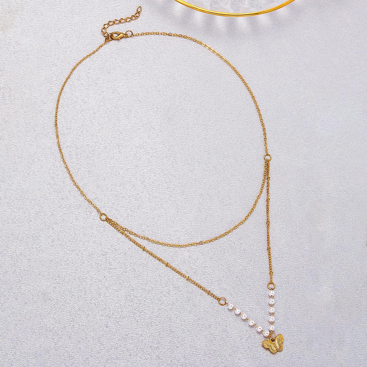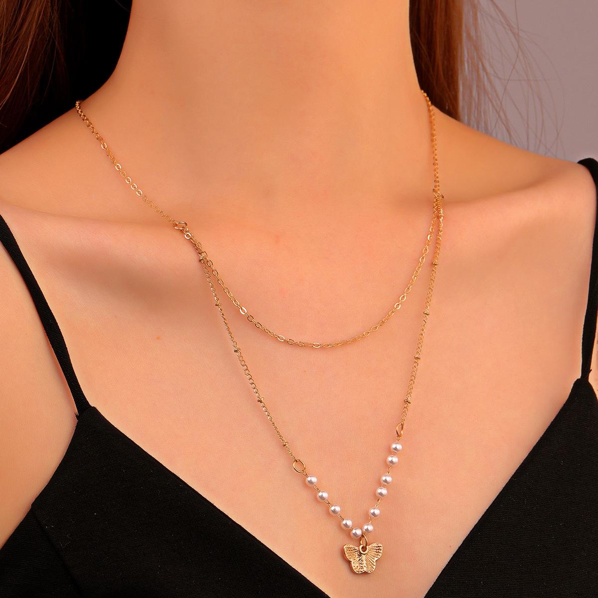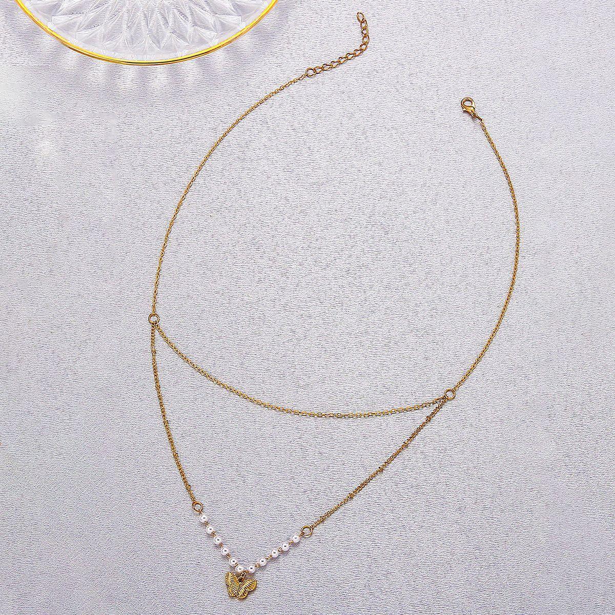 Anillo de mariposa pequeño y fresco con temperamento para chica de moda europea y americana, cadena de clavícula, collar versátil para mujer, cadena de cuello coreana simple