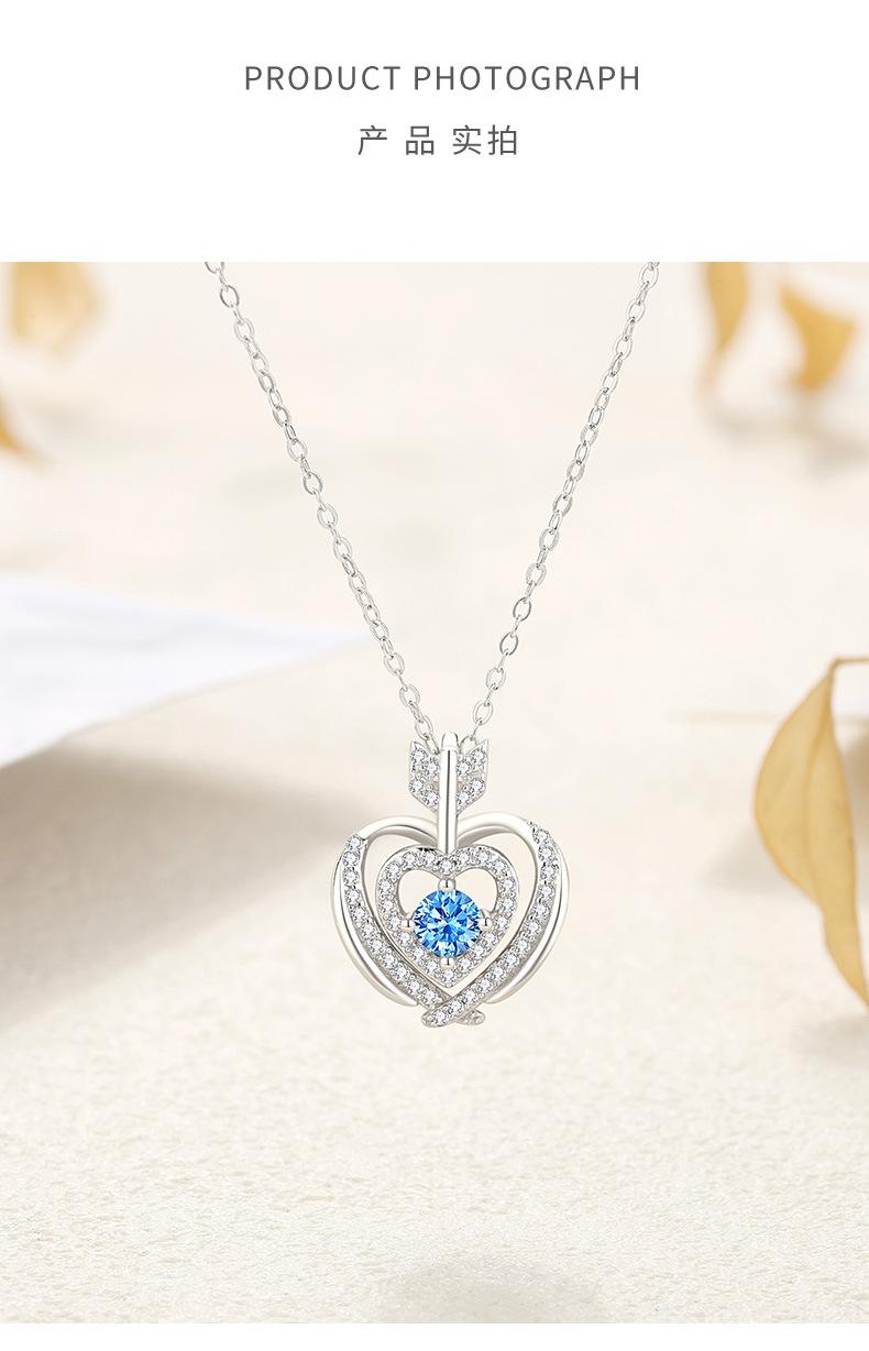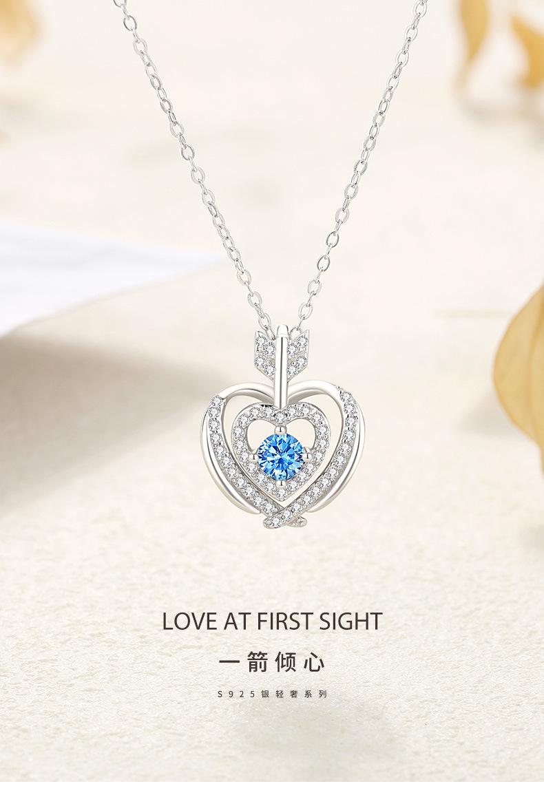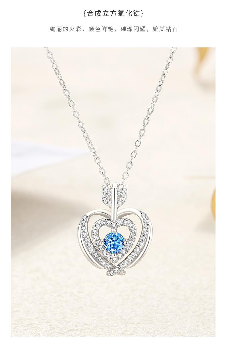 Compra Nuevo collar original con colgante de piedra azul de una flecha, corazón a corazón, estilo simple, doble capa con microincrustaciones de circonita, collar de plata en forma de corazón para mujer. al por mayor en Joom.pro