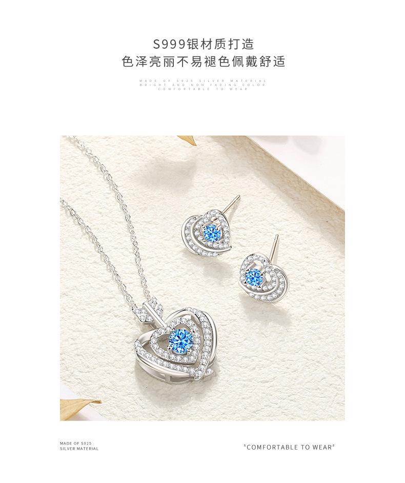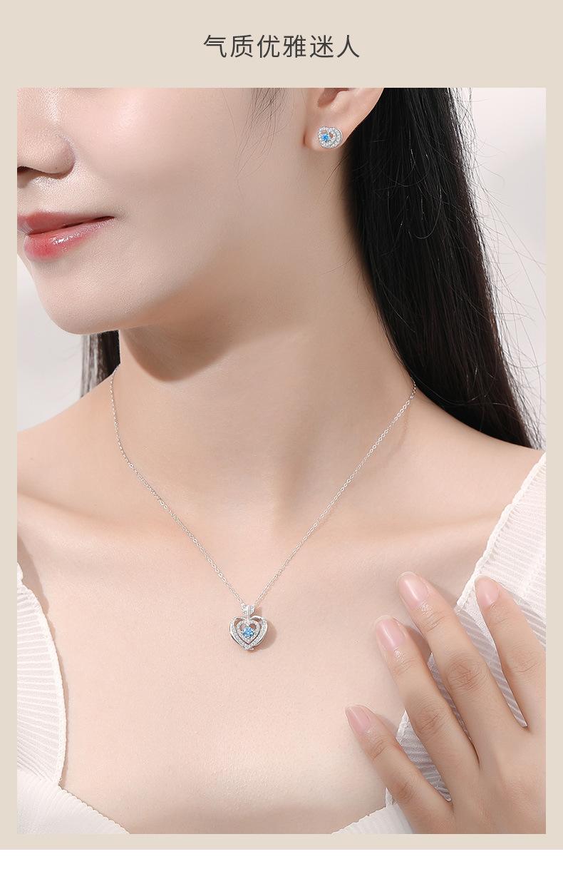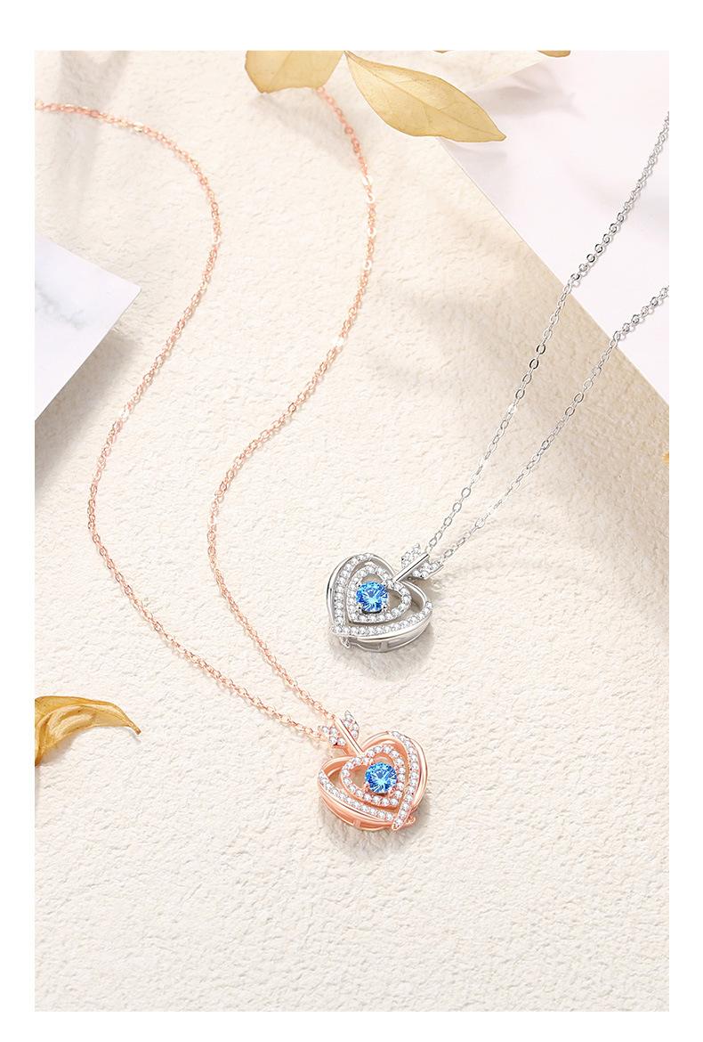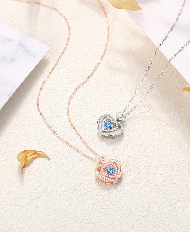 Compra Nuevo collar original con colgante de piedra azul de una flecha, corazón a corazón, estilo simple, doble capa con microincrustaciones de circonita, collar de plata en forma de corazón para mujer. al por mayor en Joom.pro