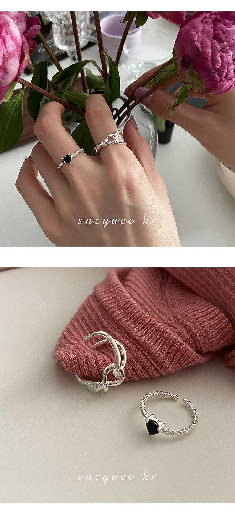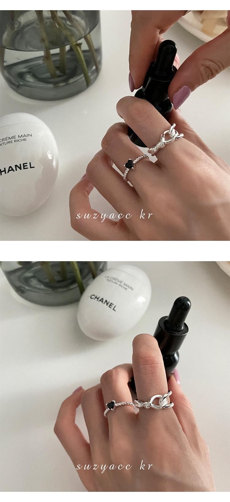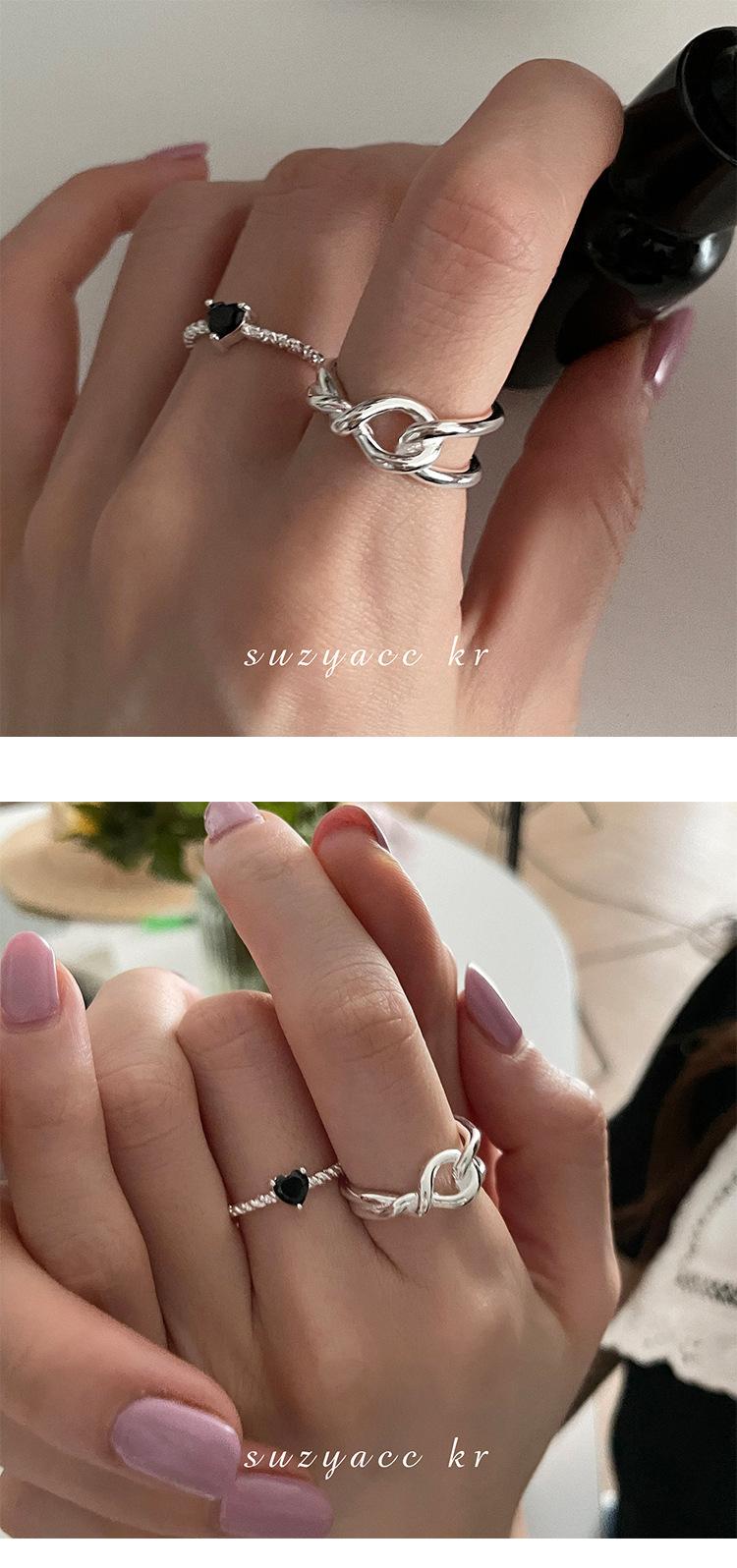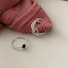 Anillo de amor negro para mujer, moda simple y elegante, anillo de dedo abierto giratorio de plata S925, anillo de dedo artístico de comida de hip hop, moderno