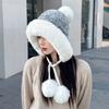 Sombrero de Lana de Otoño e Invierno Cálido de Terciopelo con Etiquetado de Letra B Coreana de Gato Hermano, Sombrero Tejido, Grueso, Moda para Mujer, Sombrero con Bola de Pelo, Moderno