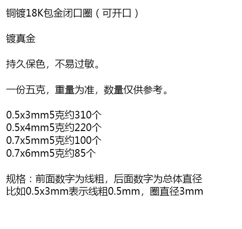 0.5x 3mm 5 grams about 310, 0.5x 4mm 5 grams about 220, 0.7x 5mm 5G about 100, 0.7x 6mm 5 grams about 85