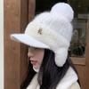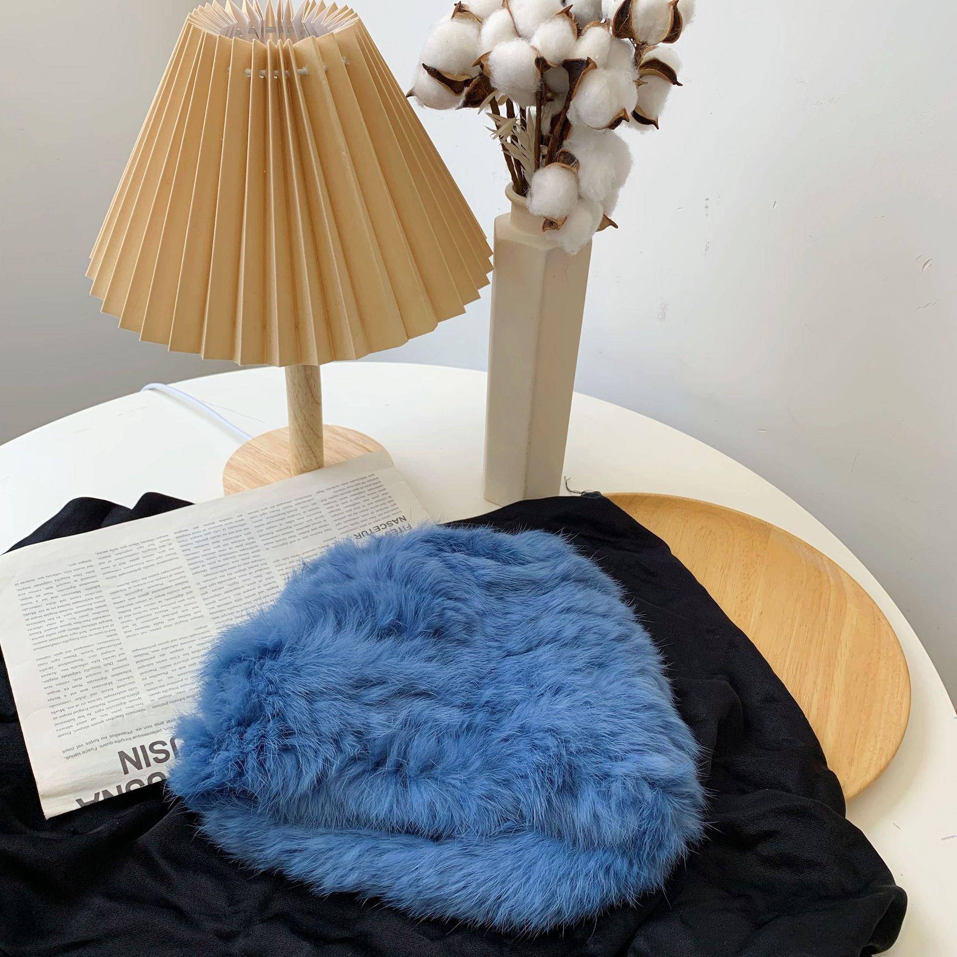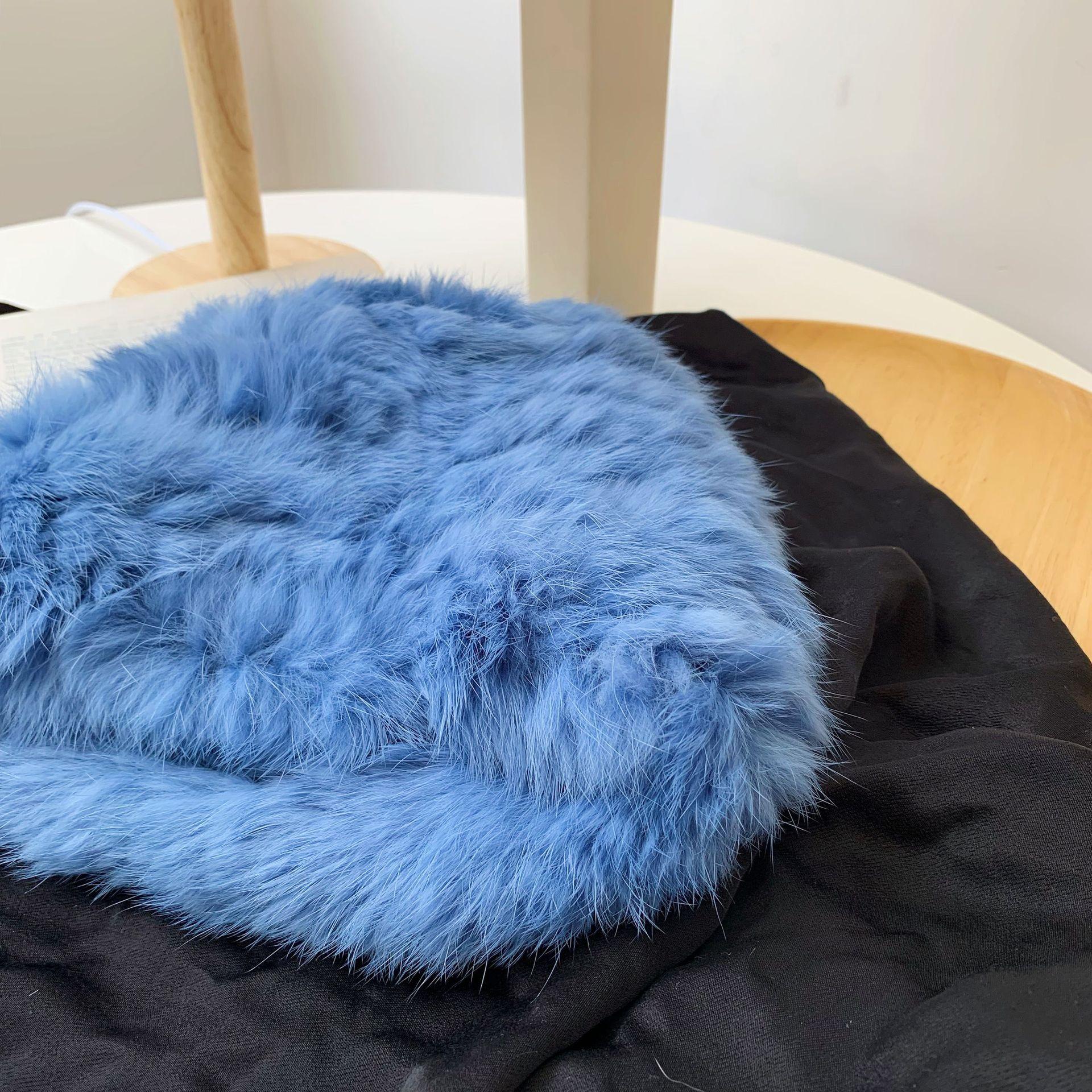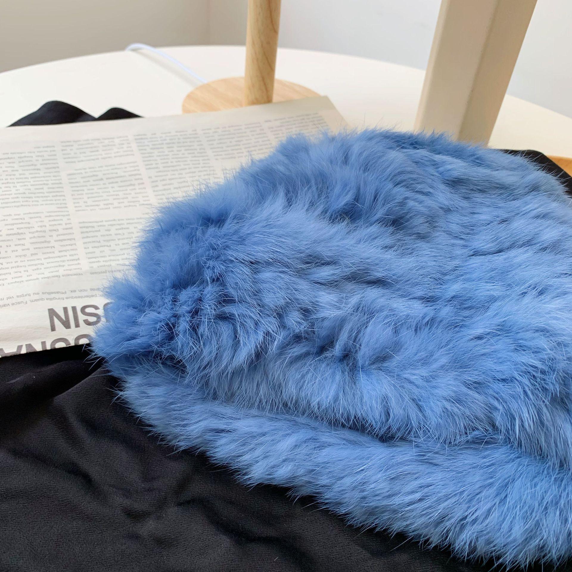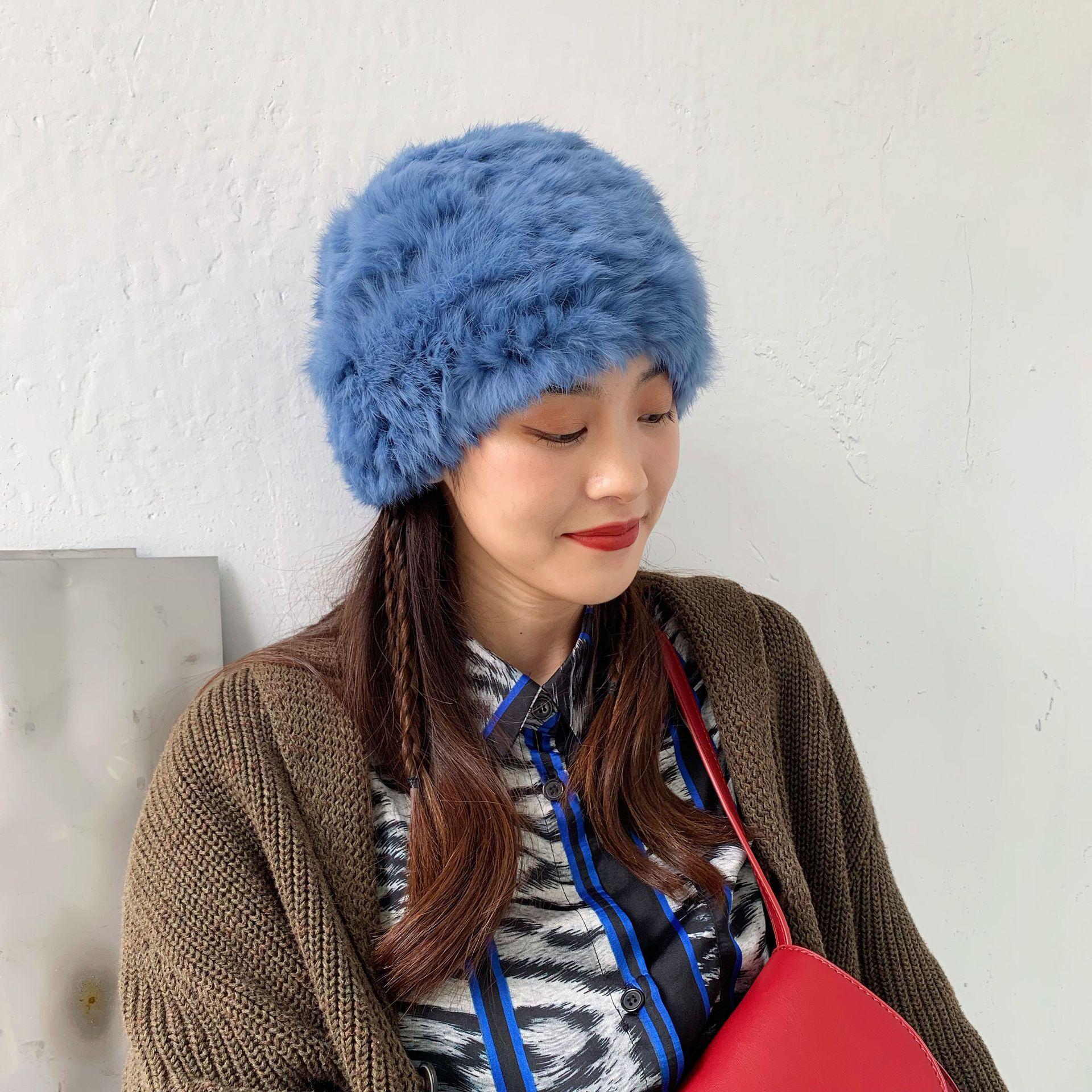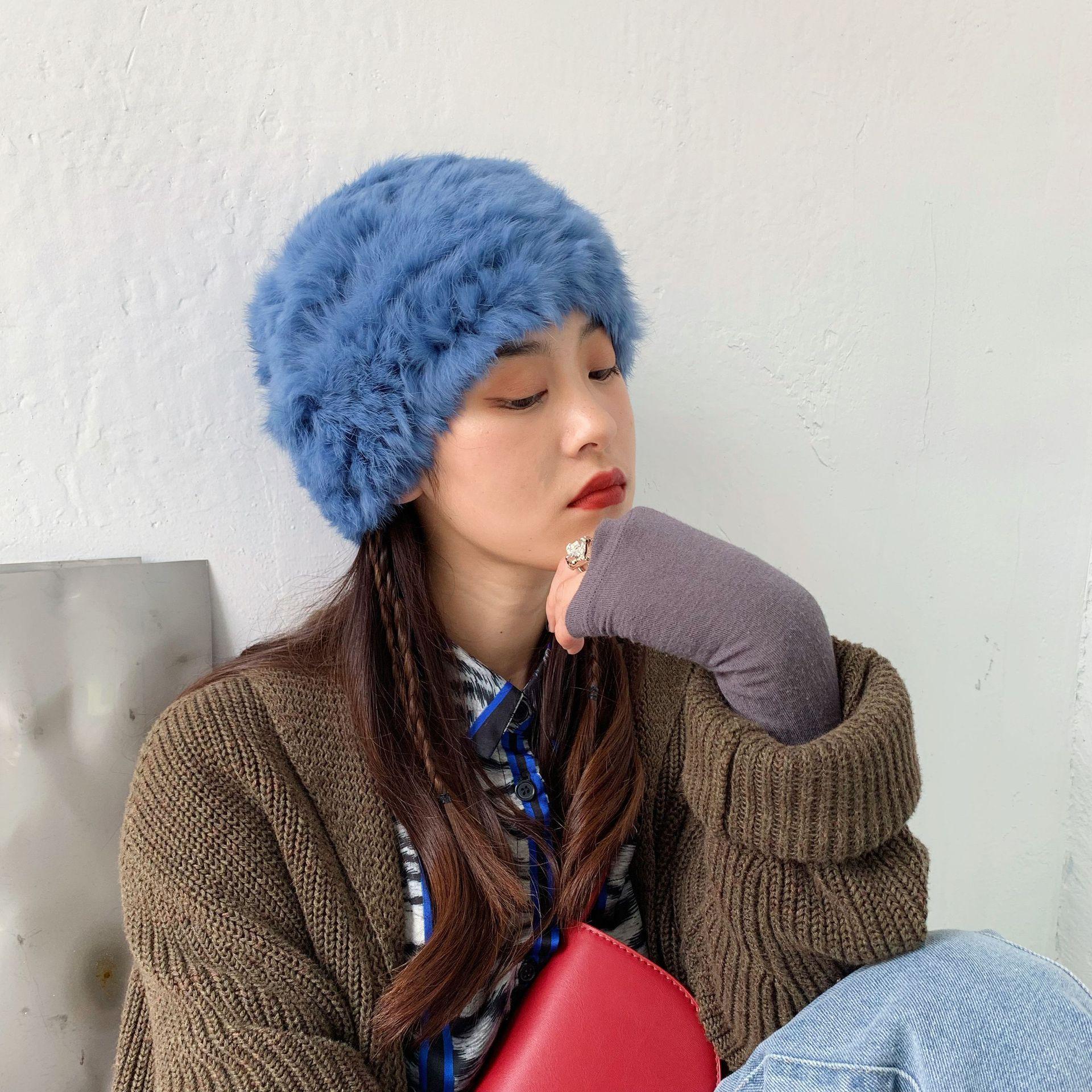 Gorro de piel de conejo auténtico antiguo tejido a mano para mujer, gorro de lana cálido con orejas, gorro de punto, moda de otoño e invierno.