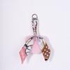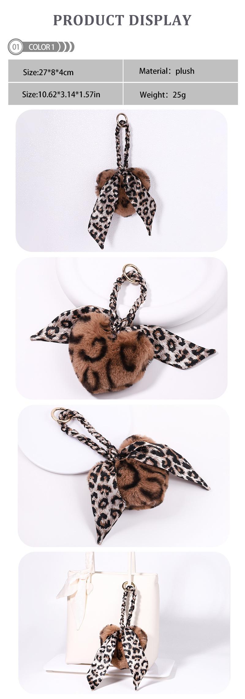Nuevo llavero con lazo de cinta con estampado de leopardo y corazón de melocotón, colgante para bolso de amor, accesorios de adorno para coche