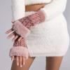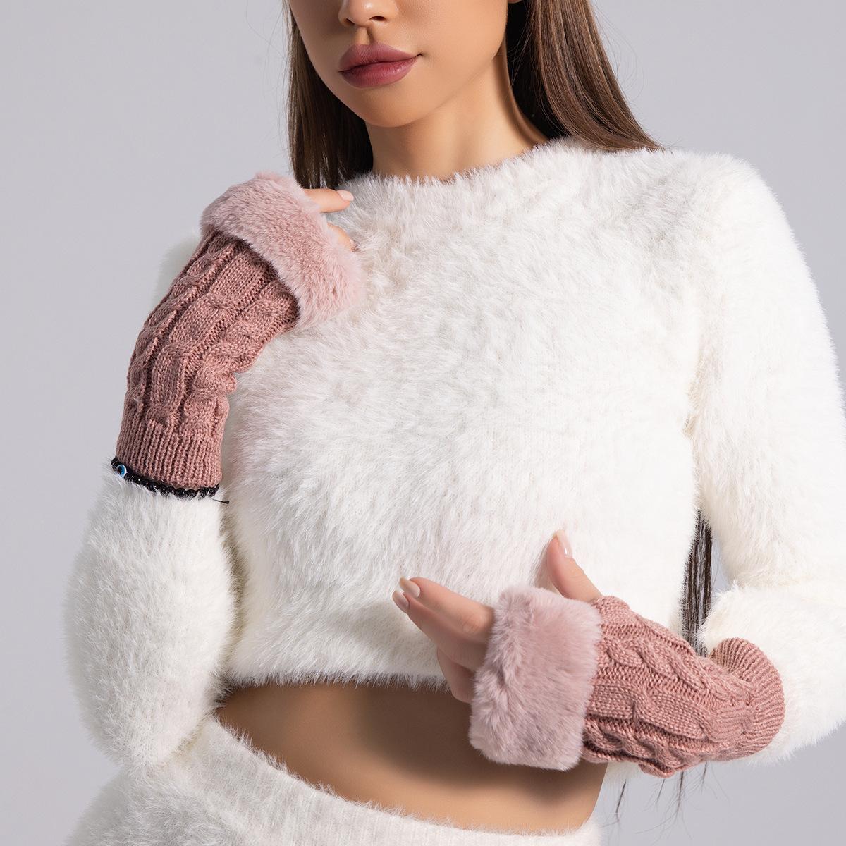 Guantes de otoño e invierno para bicicleta transfronterizos peludos tejidos cortos a prueba de frío con pantalla táctil cálidos de lana trenzada sin dedos sobremanga