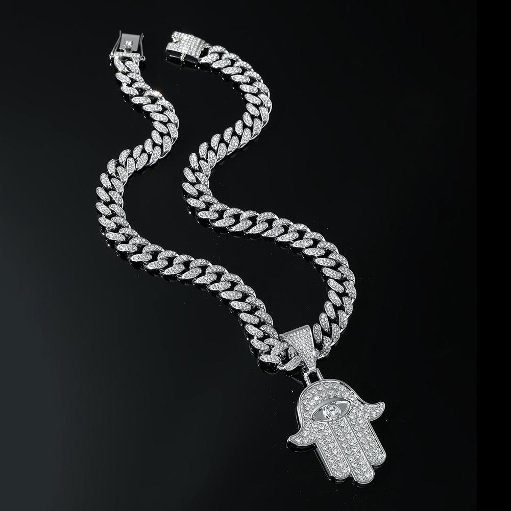 Collar de cadena cubana con colgante de 1000 puntas de diamante completo para hombre, estilo hip-hop europeo y americano, estilo dominante digital, accesorios de calle de moda