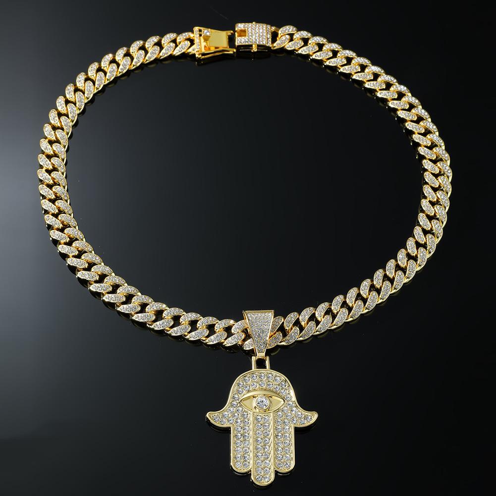 Collar cubano con colgante de letra de diamante completo y empalme creativo, estilo hip-hop europeo y americano, vestido de baile callejero de moda, collar largo para hombre