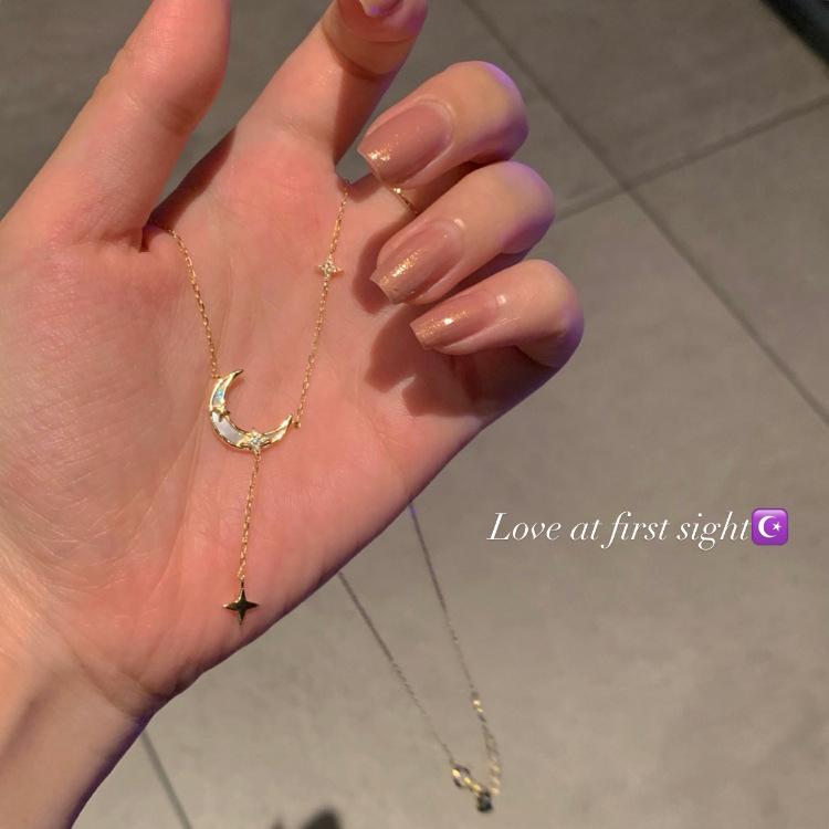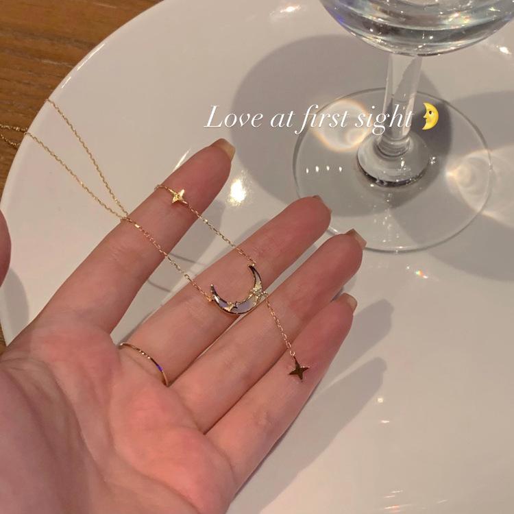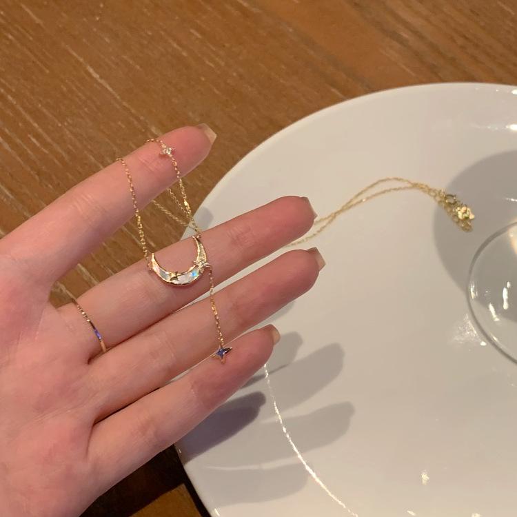 Collar de luna y estrella para mujer, cadena de cuello con diseño de nicho de lujo, chapada en oro, combina con todo, accesorios de cadena para clavícula, venta al por mayor