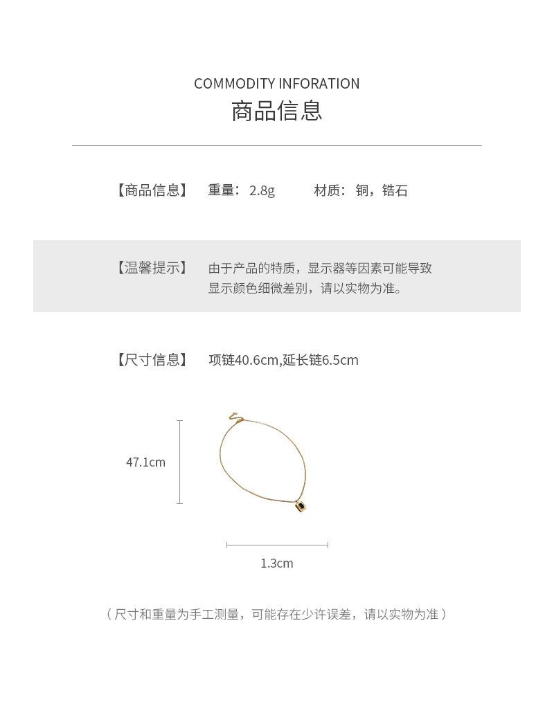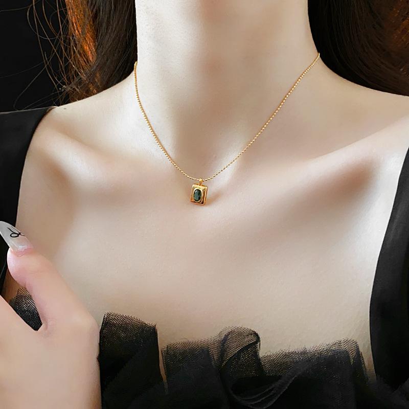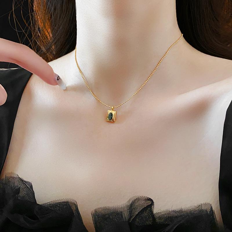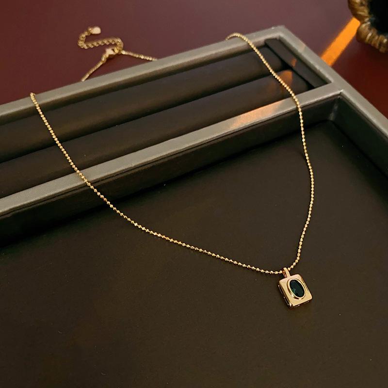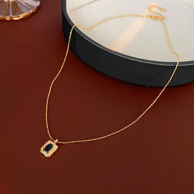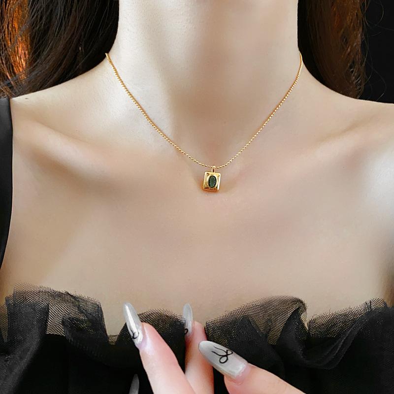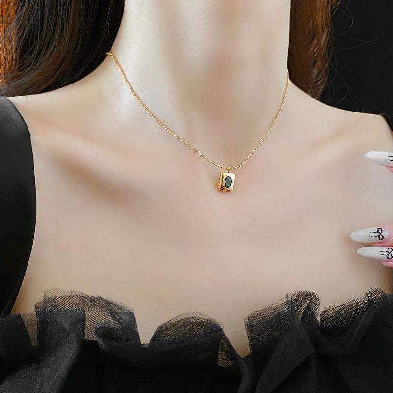 Collar de circonita cuadrada galvanizada en oro auténtico, estilo elegante, cadena de clavícula de moda, collar francés sencillo y ligero de lujo al por mayor.