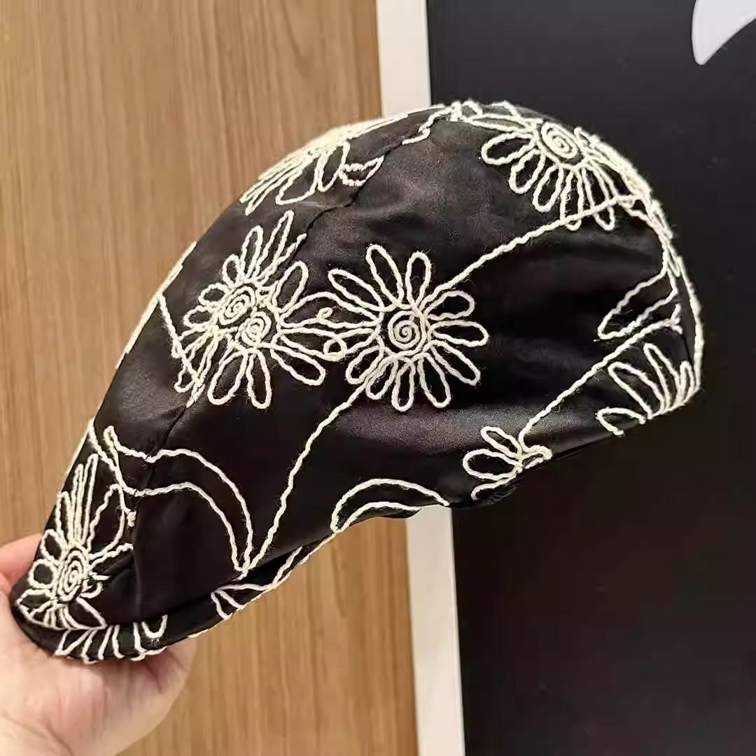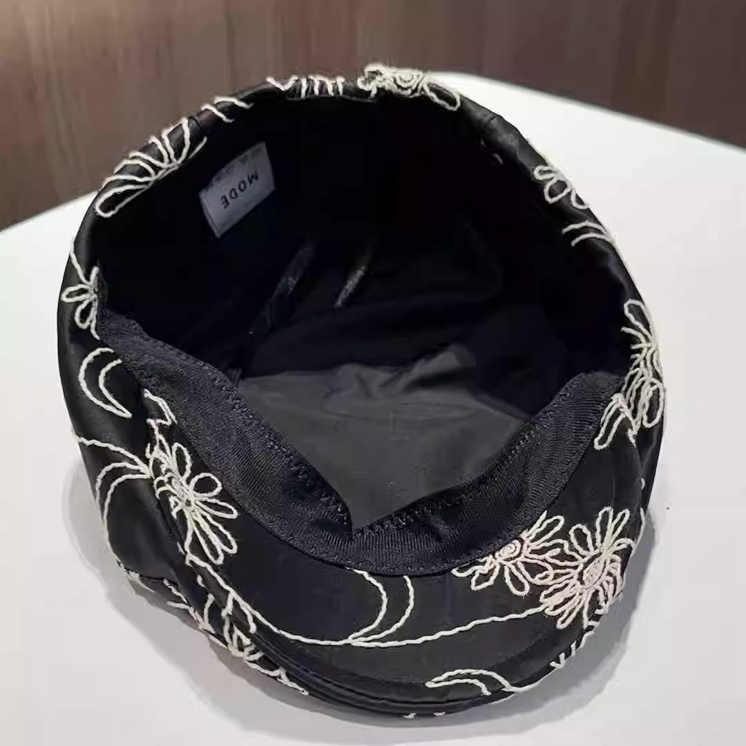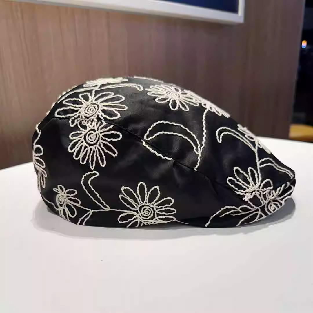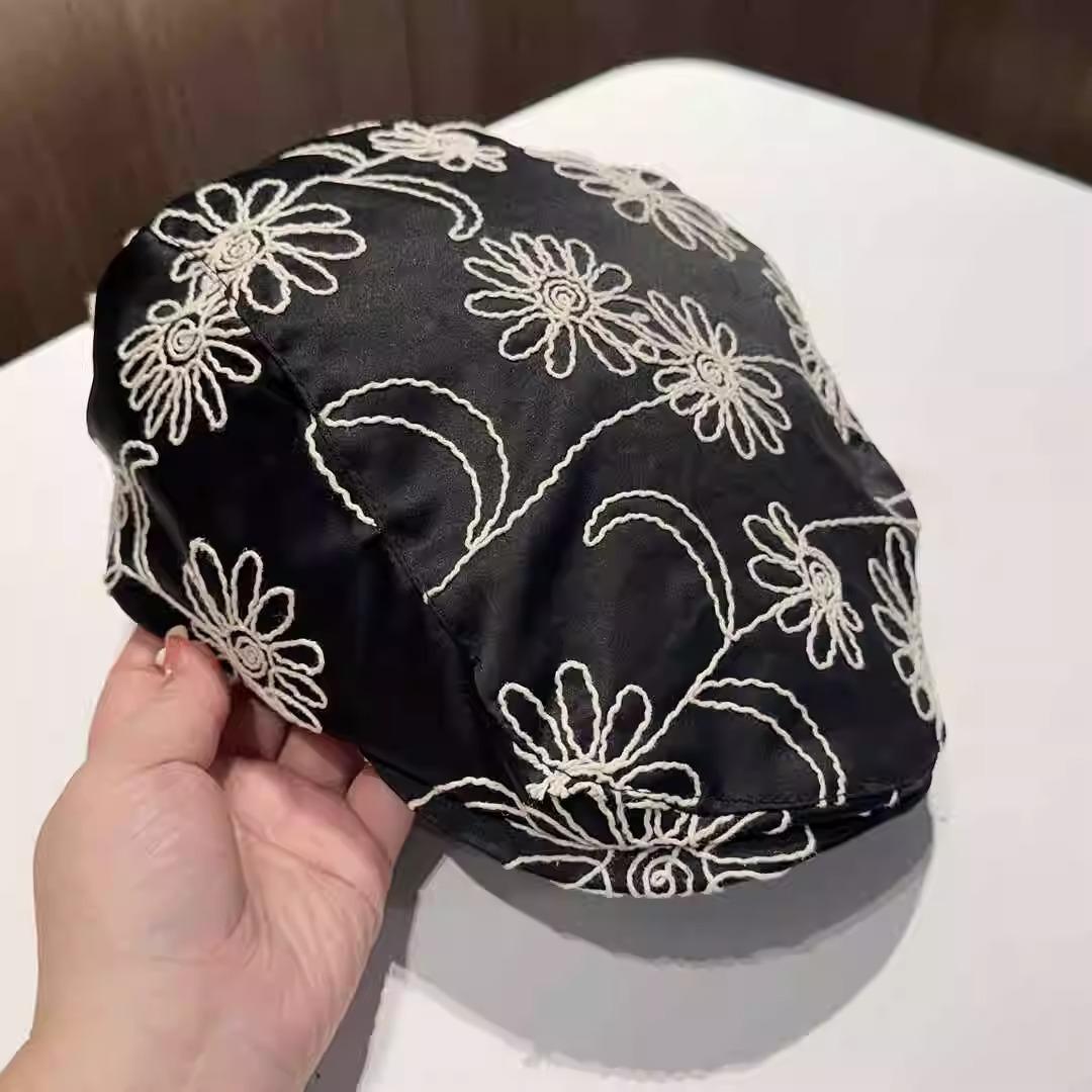 Boina de flores bordadas vintage de Corea del Sur, estilo bloguero, gorro de vendedor de periódicos de moda, gorro de verano para mujer, gorro de moda para chicas.