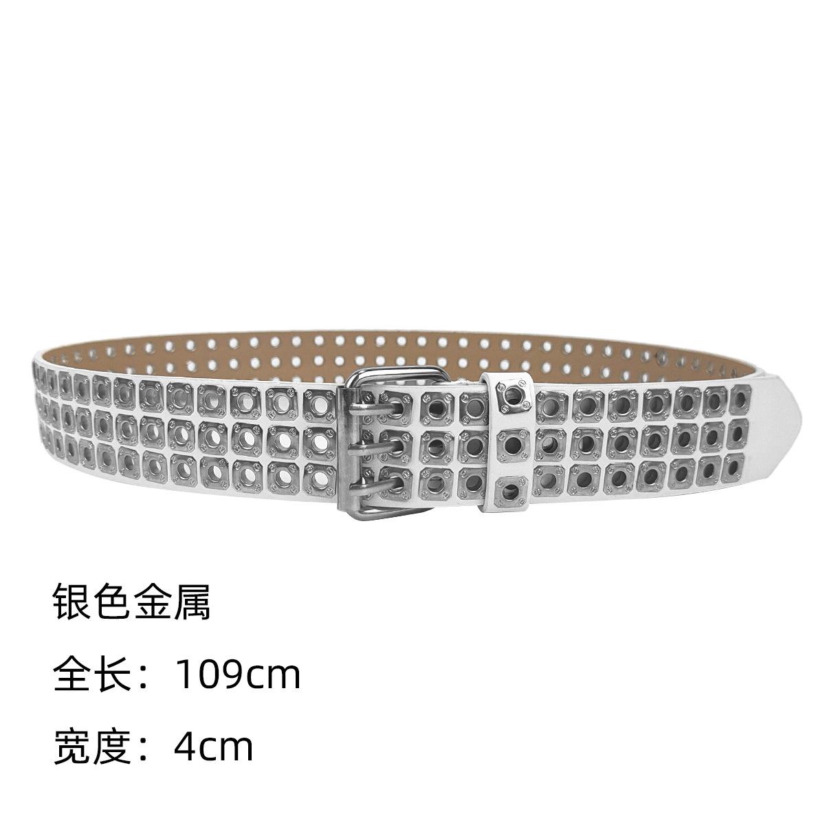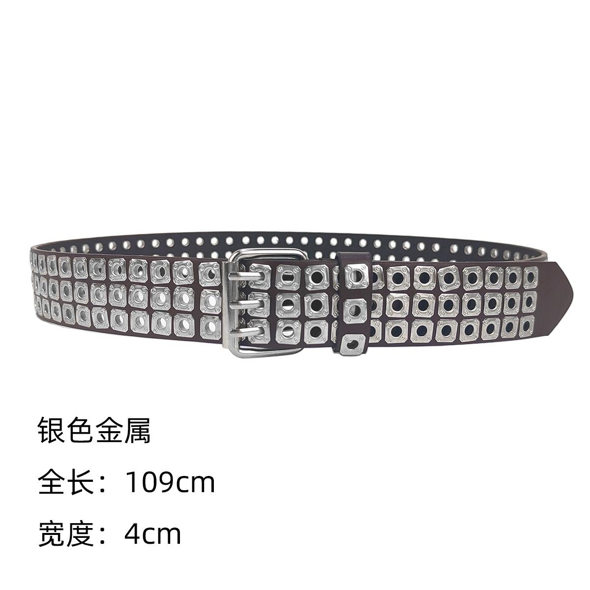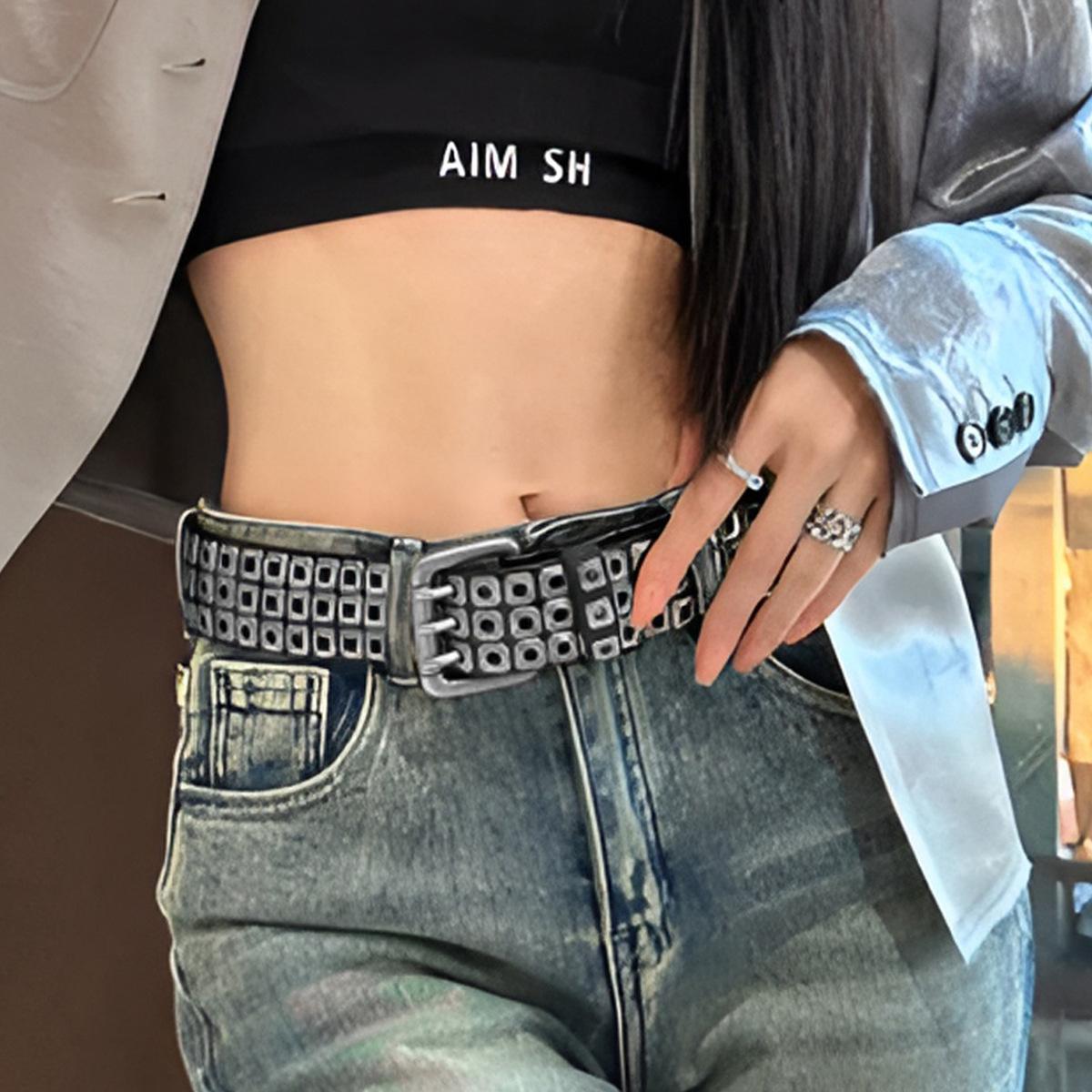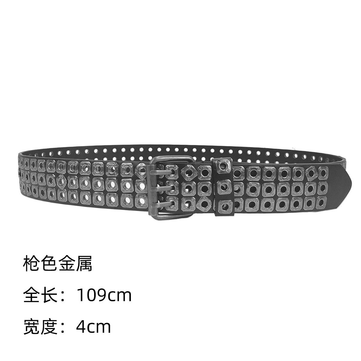 2025 nuevo cinturón de PU estilo punk con remaches y ojalillos huecos, estilo europeo y americano, cinturón de personalidad y2k para hombres y mujeres