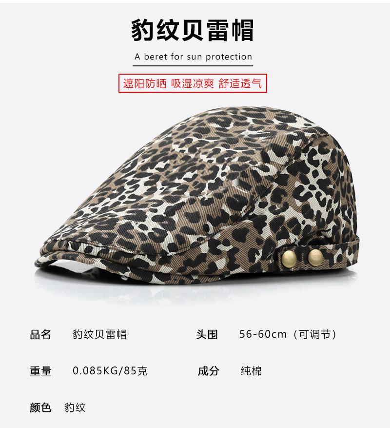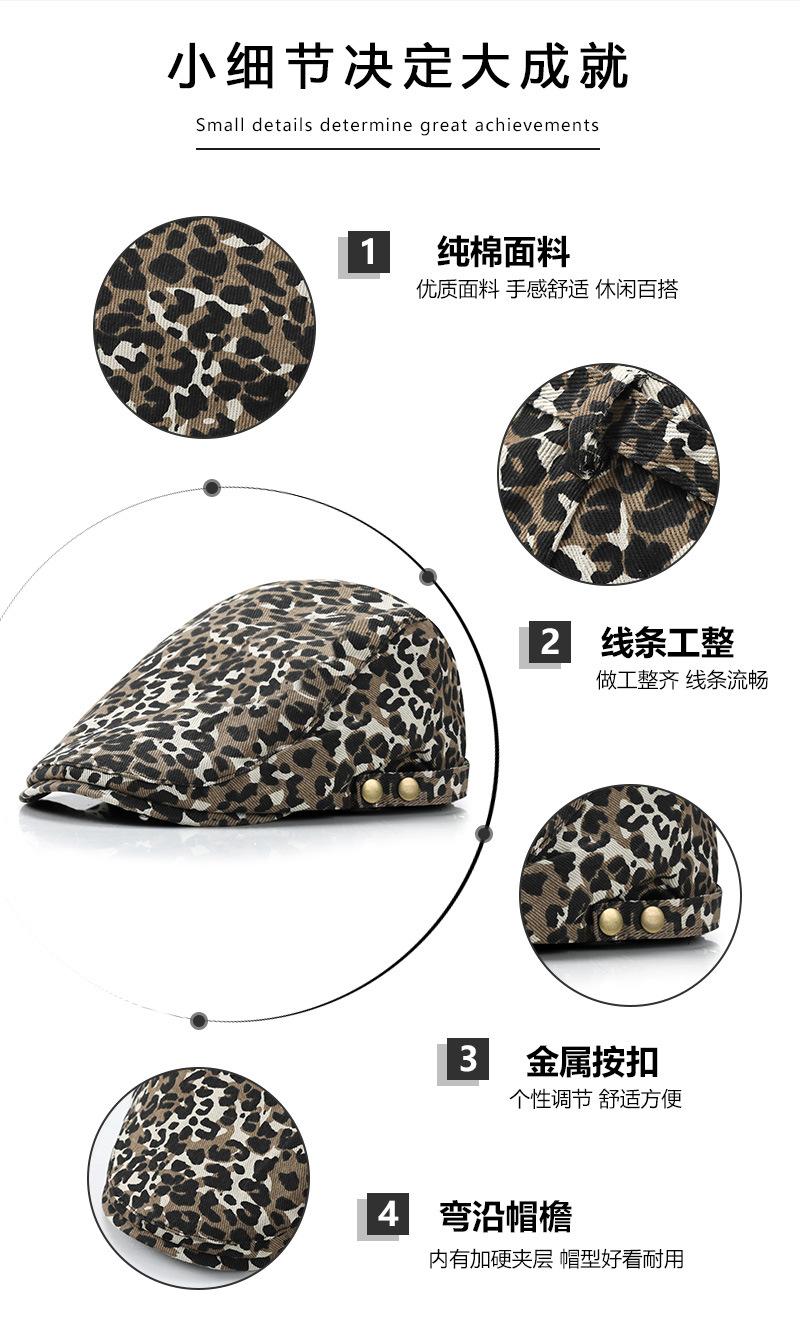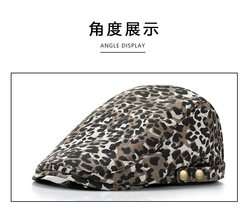 Boina Vintage Personalizada Estilo Spice Girl Estampado Leopardo Sombrero Adelante Sombrero sin Pintar Moda Femenina Boina de Pareja Versátil Gorra Moderna y Cool