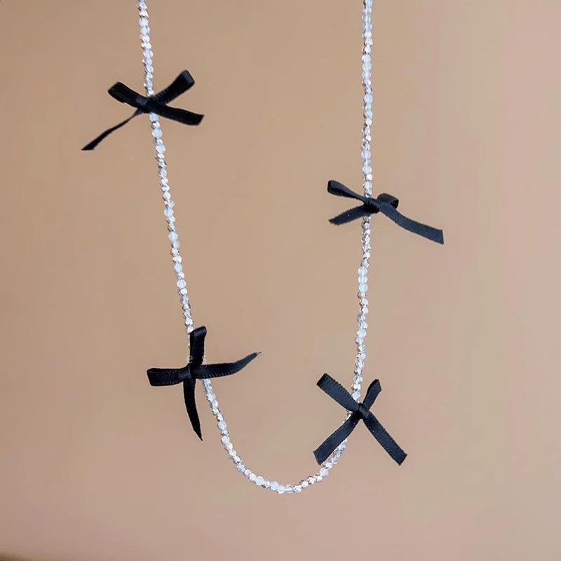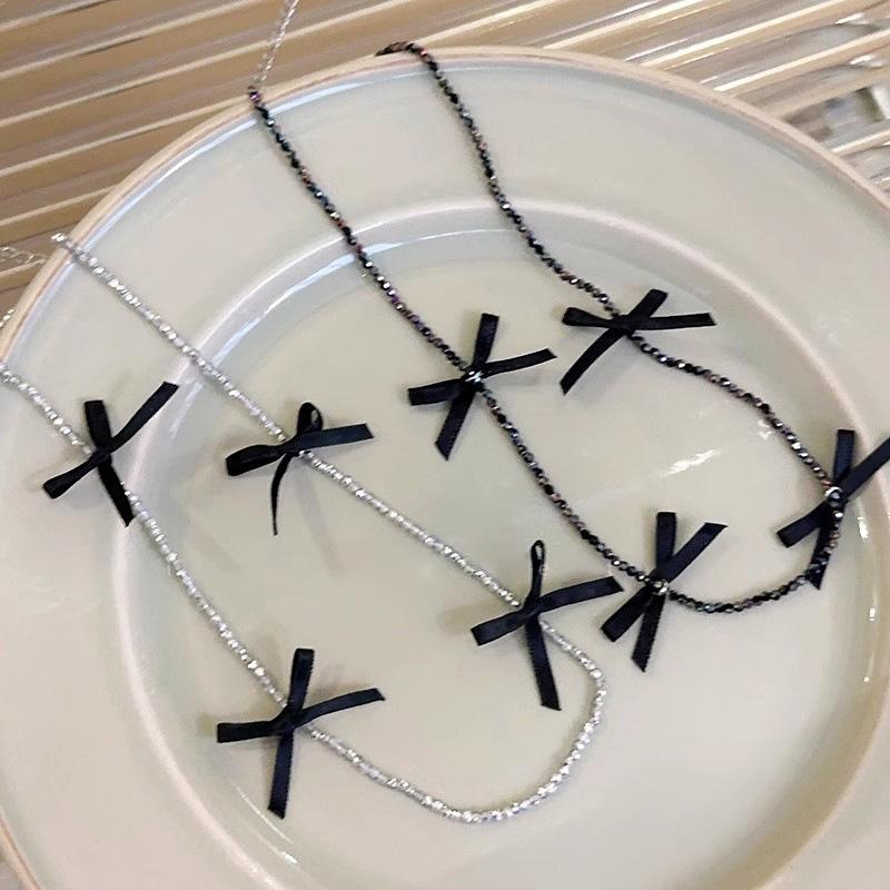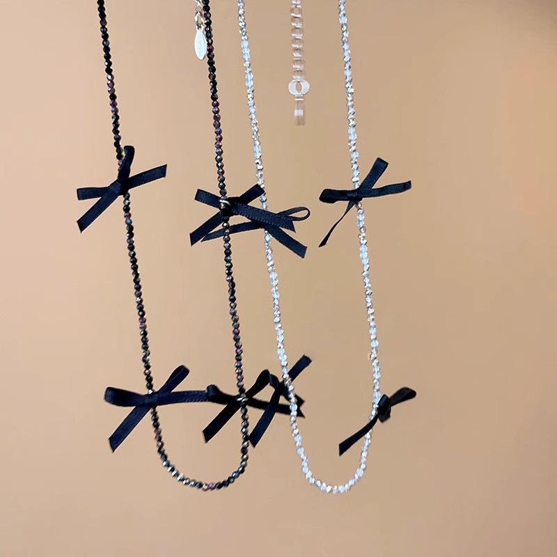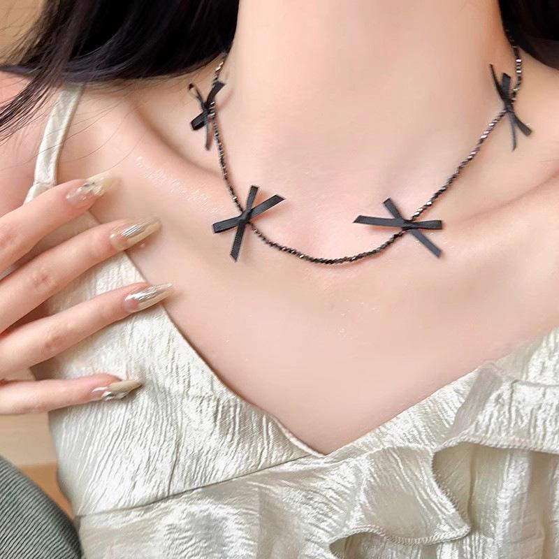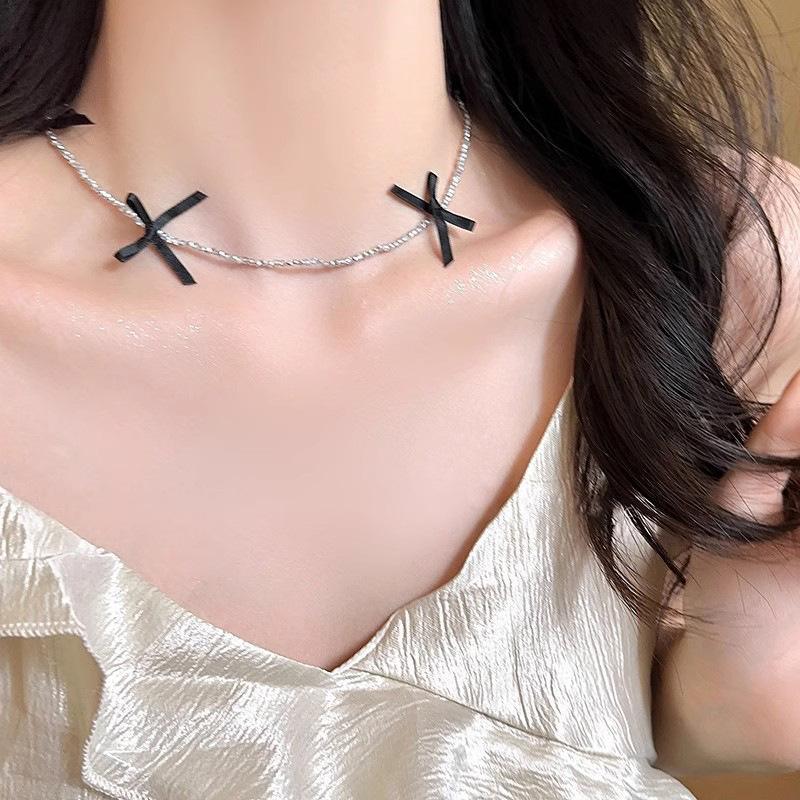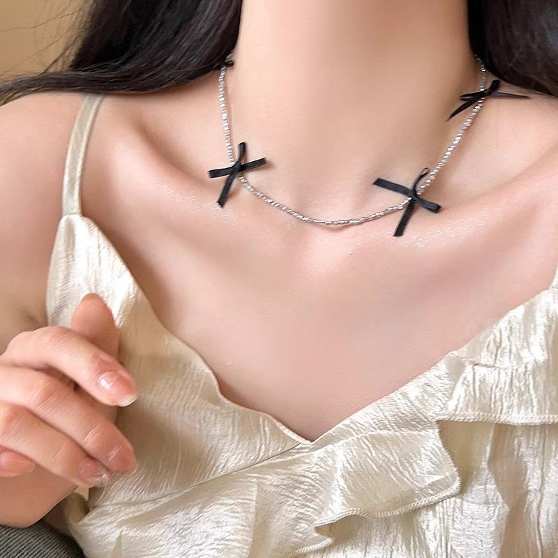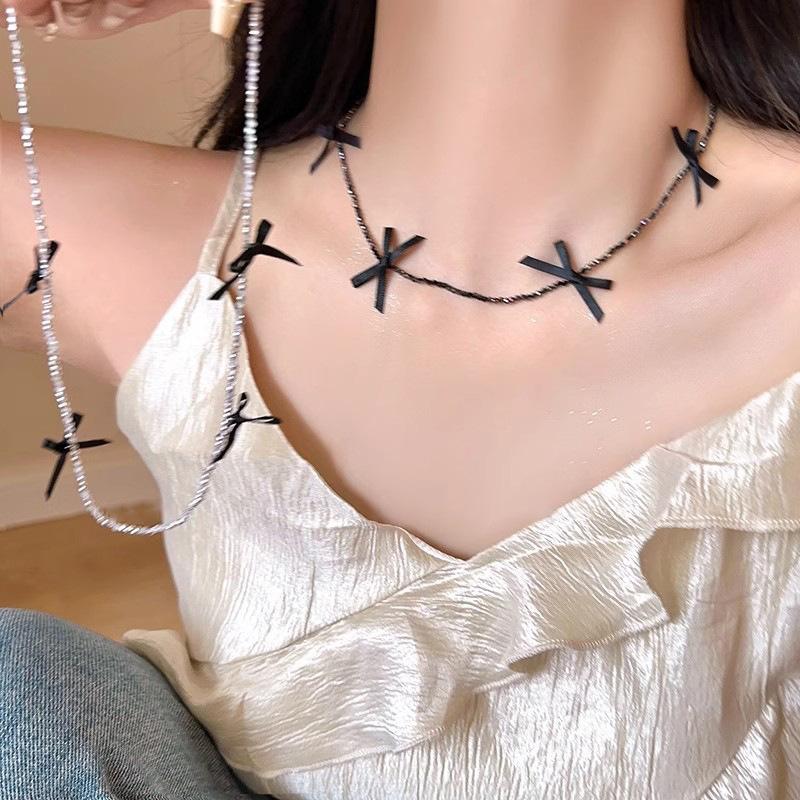 Collar Apilado de Lazo Negro para Mujer Collar Choker Estilo Pure Spice Cadena de Clavícula Nicho de Lujo Ligero Accesorios